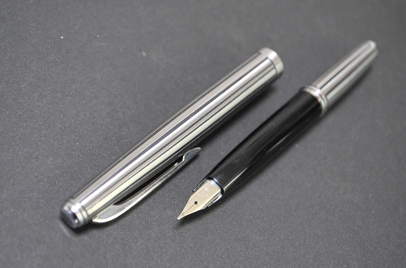 中古品(未使用品) オーバーホール済み ペン先調整済み 字幅:ペン先表記「中字」 インク:カートリッジ式 軸の使用感:新品同様 付属品:カートリッジ1本(ブルーブラック) 万年筆診断書 ========== 1970年代製造 生産終了品 ペン先14金