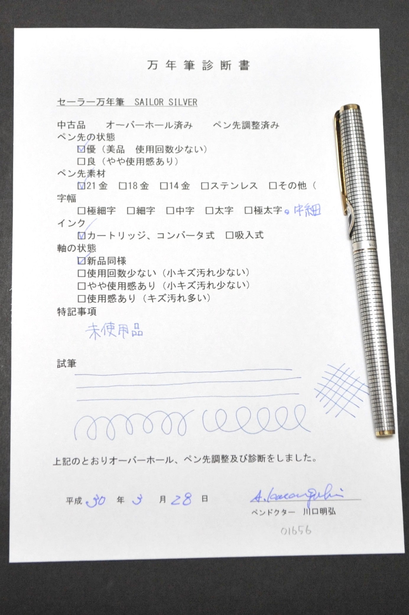 中古品(未使用品) オーバーホール済み ペン先調整済み 字幅:ペン先表記「3」 中細字 インク:吸入式 軸の使用感:新品同様 付属品:カートリッジ1本(ブルーブラック) 万年筆診断書 ========== 1970年代製造 生産終了品 ペン先21金 軸:ステンレス