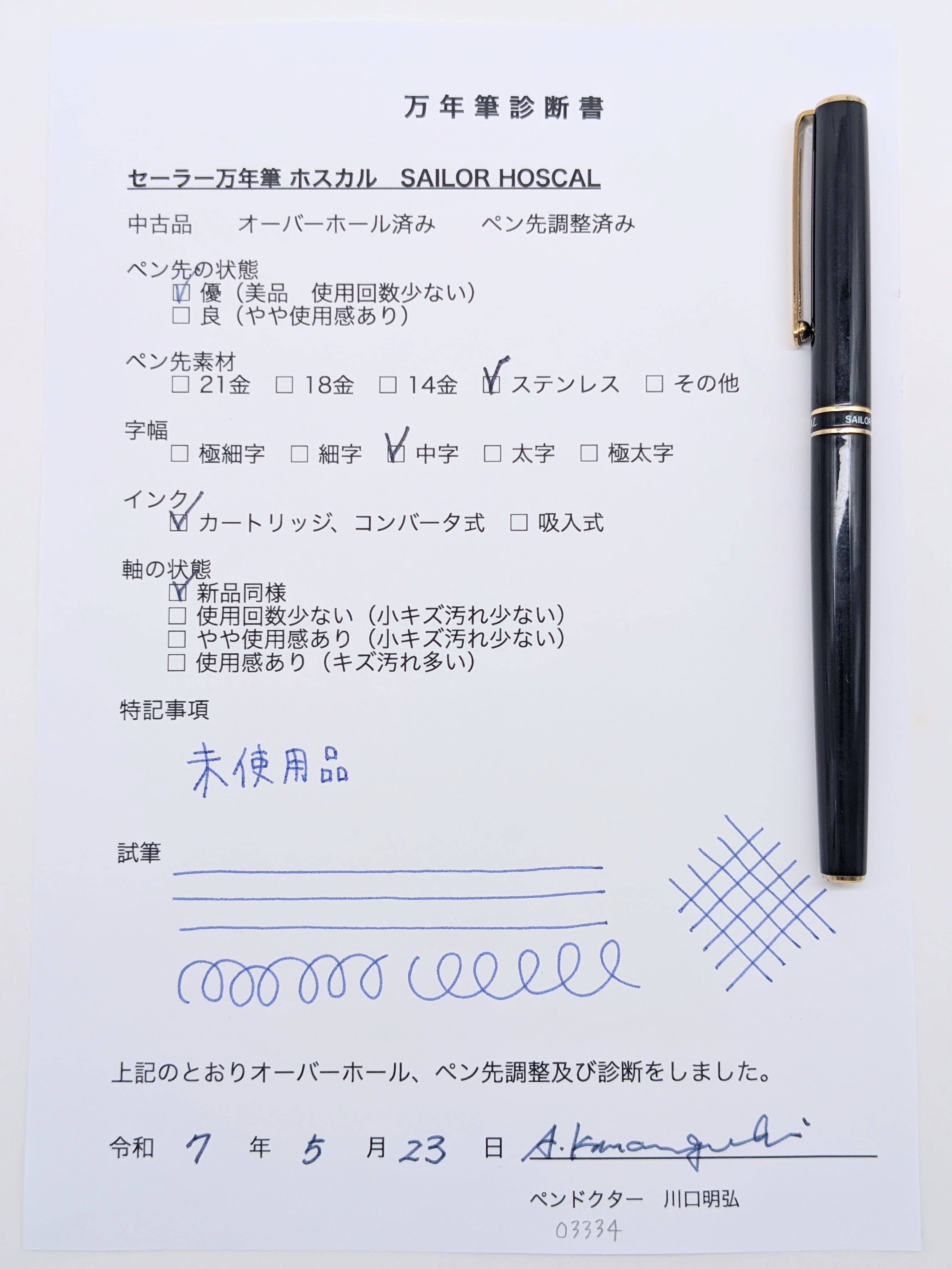 中古品(未使用品) オーバーホール済み ペン先調整済み 字幅:ペン先表記「M」 中字 インク:カートリッジ式 コンバータ式 軸の使用感:新品同様 付属品:カートリッジ1本(ブルーブラック) 万年筆診断書 ========== 1970年代製造 生産終了品 当時定価:5,000円 ペン先ステンレス 〄