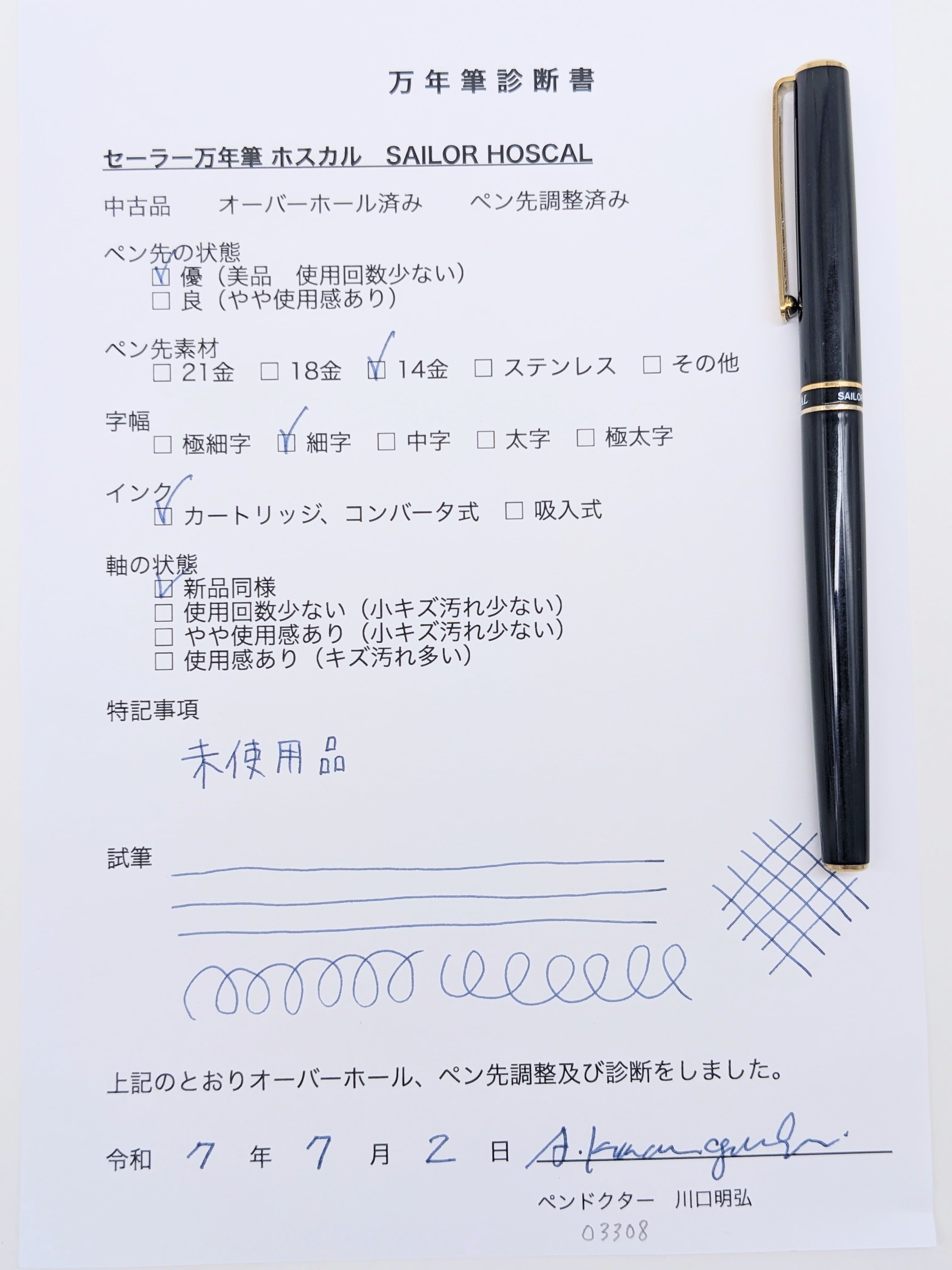 中古品(未使用品) オーバーホール済み ペン先調整済み 字幅:ペン先表記「2」 細字 インク:カートリッジ式 コンバータ式 軸の使用感:新品同様 付属品:カートリッジ1本(ブルーブラック) 万年筆診断書 ========== 1970年代製造 生産終了品 当時定価:5,000円 ペン先14金(ペン先表記「14K」) 〄