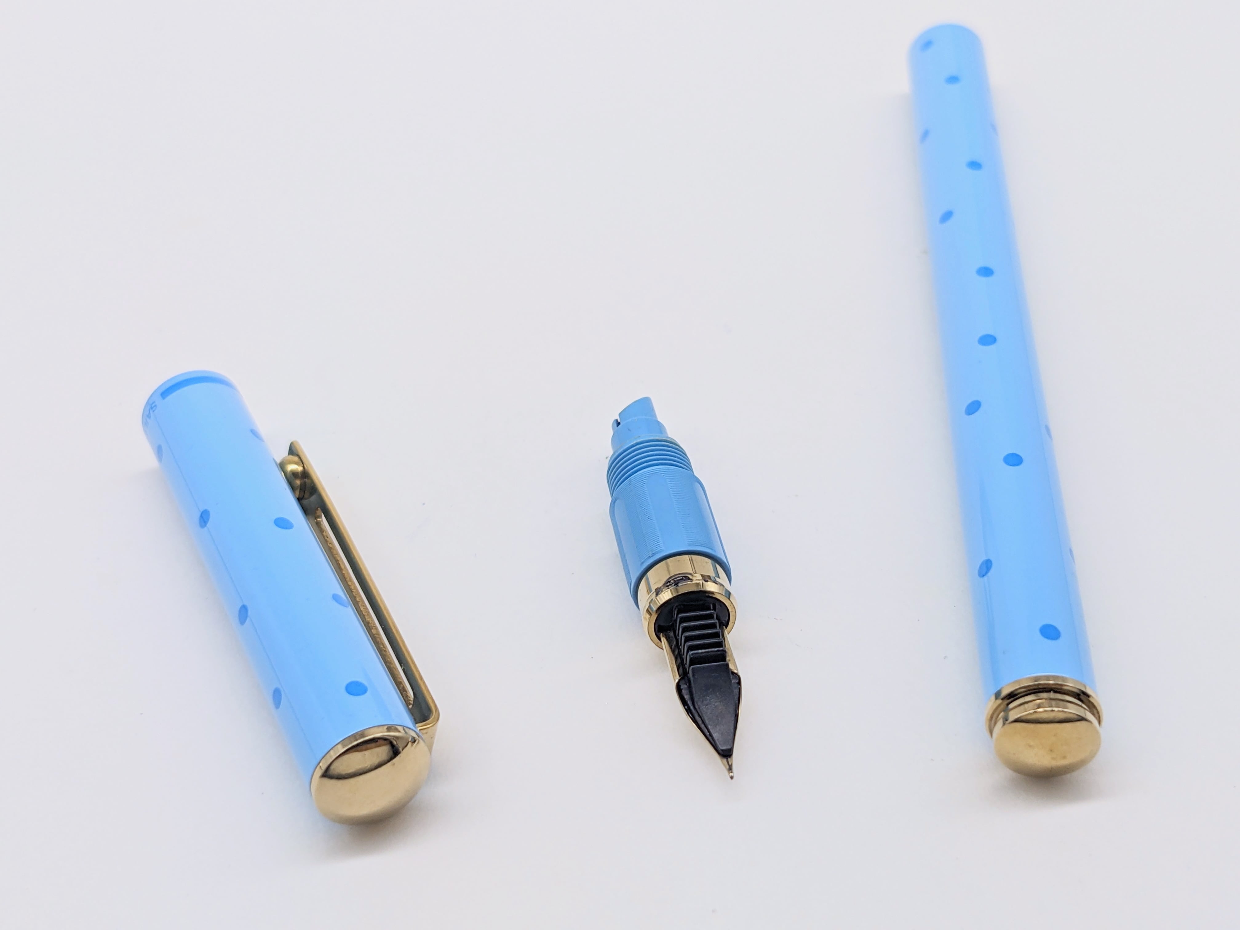 中古品(未使用品) オーバーホール済み ペン先調整済み 字幅:ペン先表記「F」 細字 インク:カートリッジ式 コンバータ式 軸の使用感:新品同様 付属品:カートリッジ1本(ブルーブラック) 万年筆診断書 ========== 1970年代製造 生産終了品 ペン先ステンレス 〄 軸柄:水玉