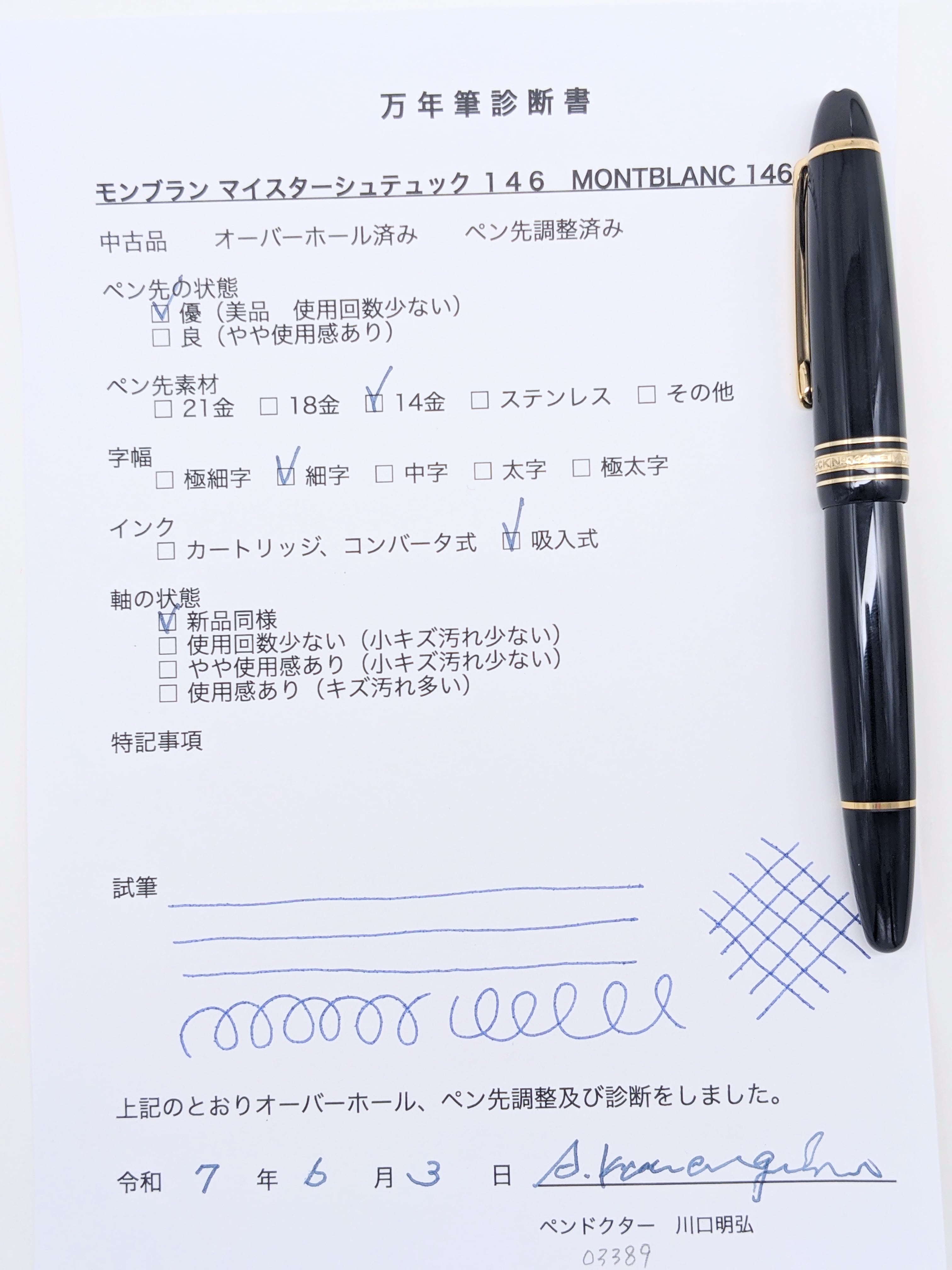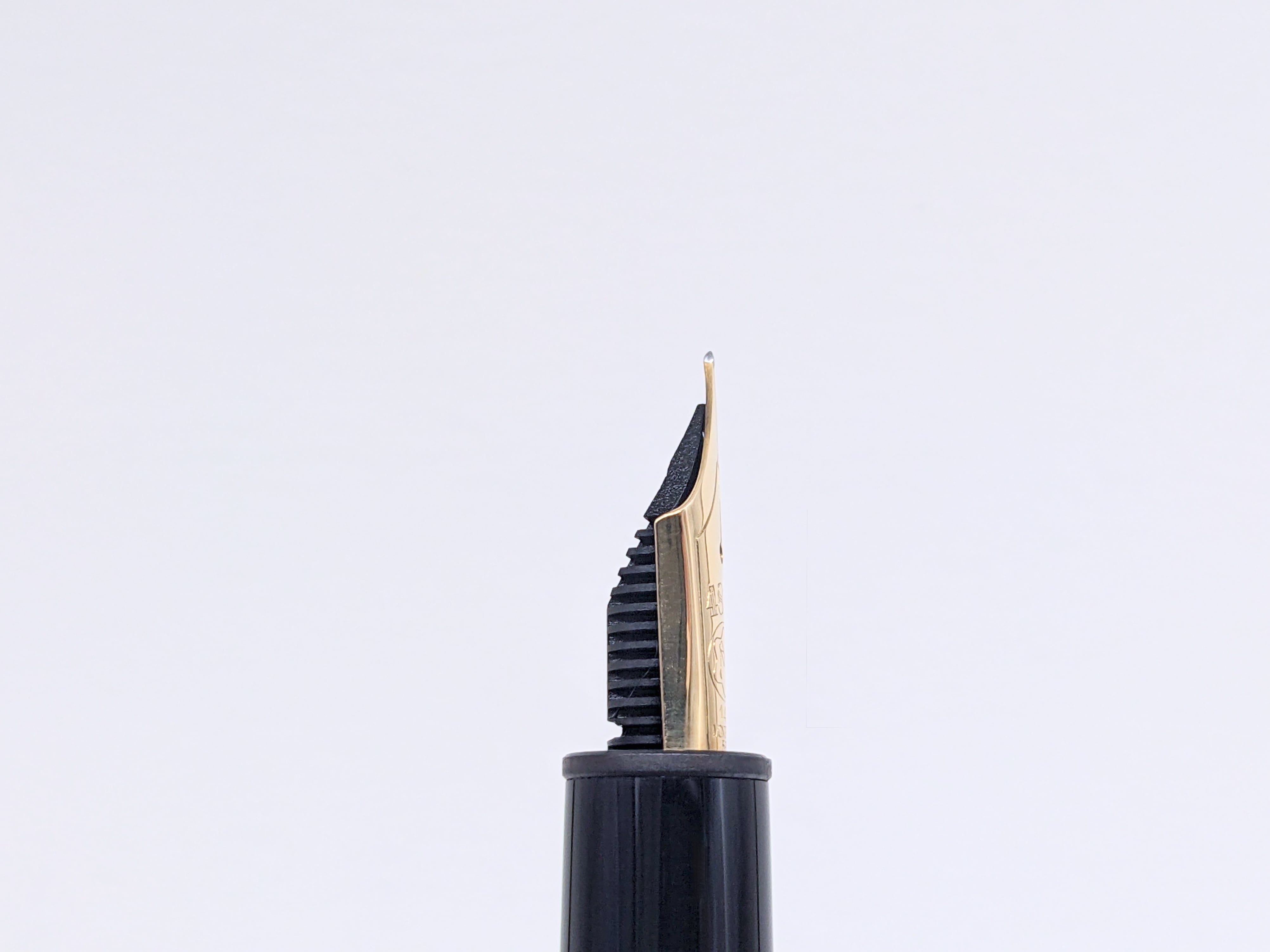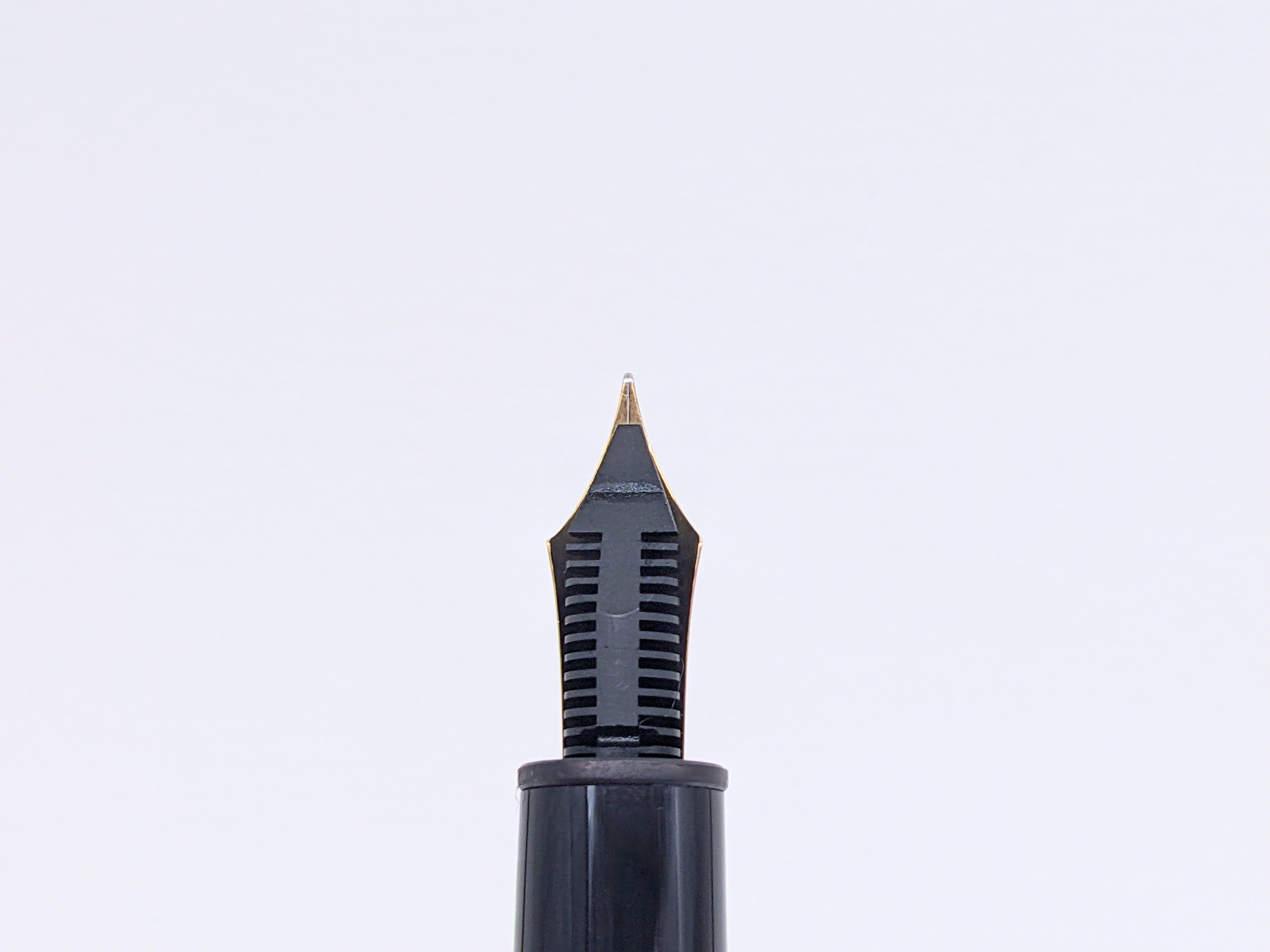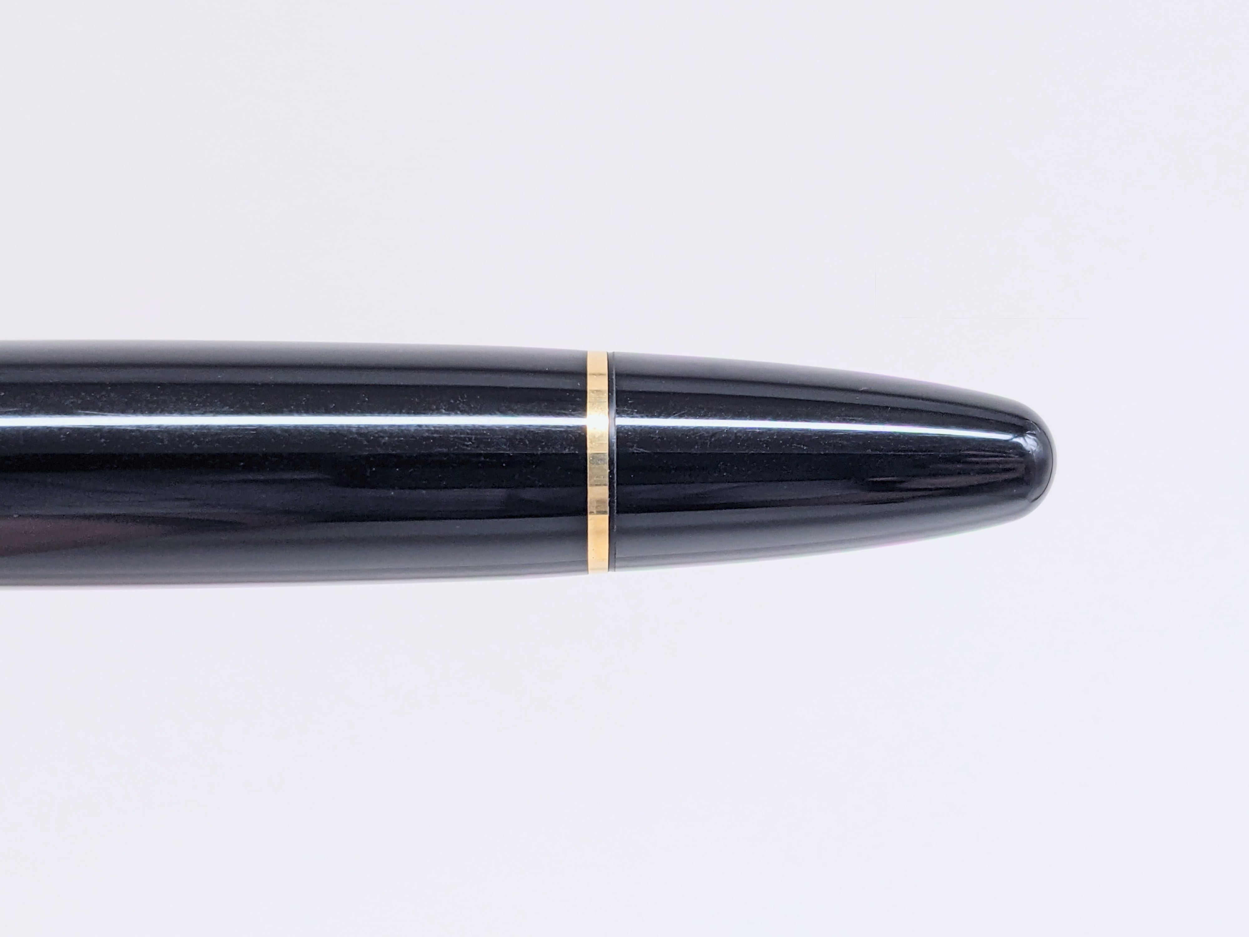 中古品 オーバーホール済み ペン先調整済み 字幅:細字 インク:吸入式 軸の使用感:新品同様 付属品:万年筆診断書 ========== 1980年代製造 ペン先14金(ペン先表記「14K」) ペン芯エボナイト 段差あり 吸入良好
