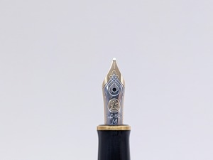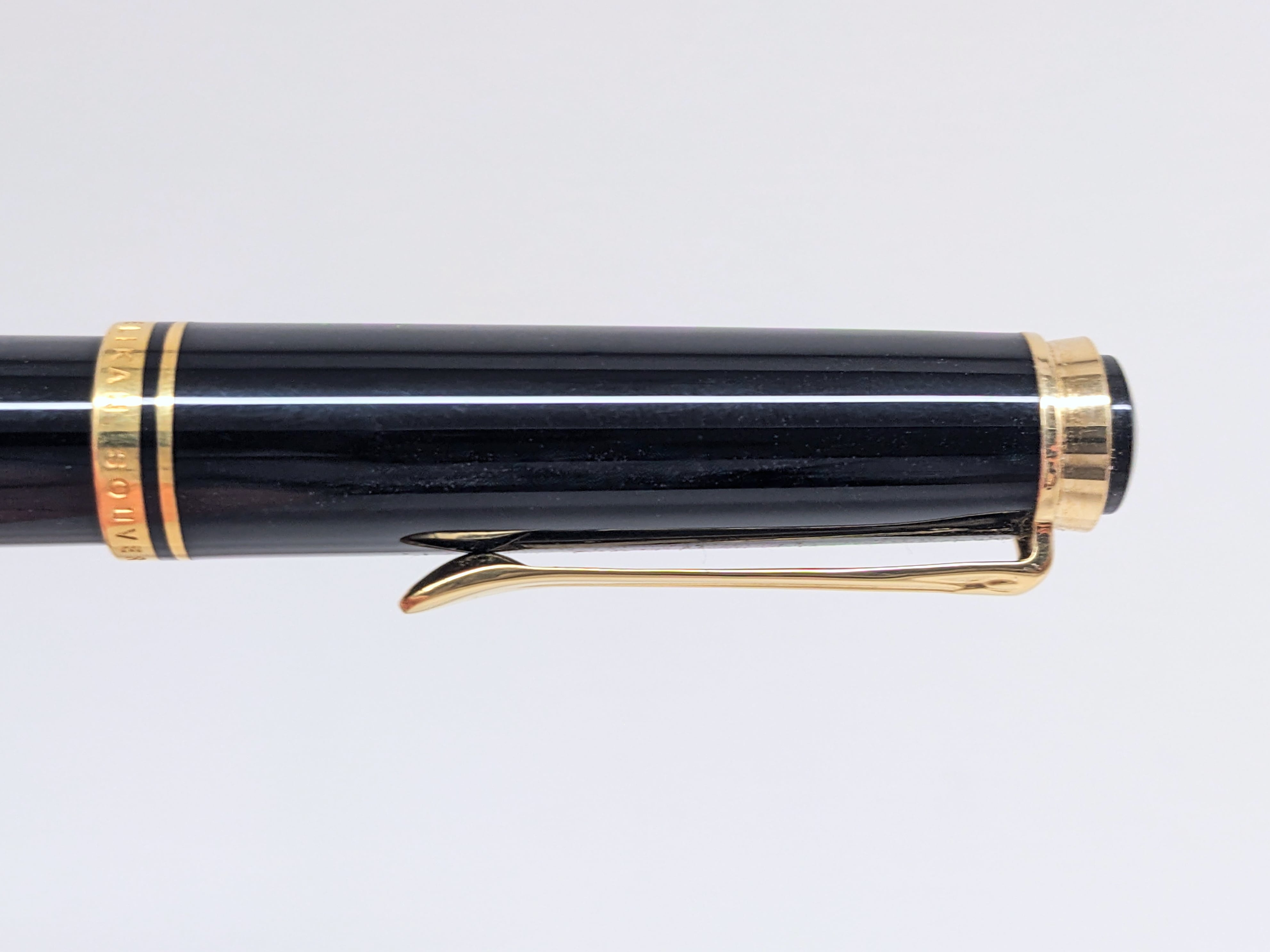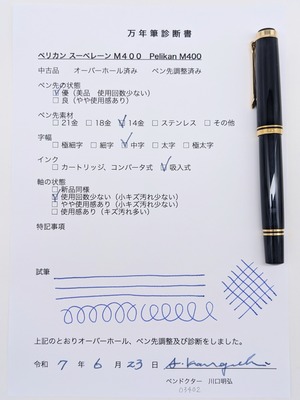中古品 オーバーホール済み ペン先調整済み 字幅:ペン先表記「M」 中字 インク:吸入式 軸の使用感:使用回数少ない 付属品:万年筆診断書 ========== 旧天冠 ペン先14金(ペン先表記「14C」) 吸入良好 軸色:黒