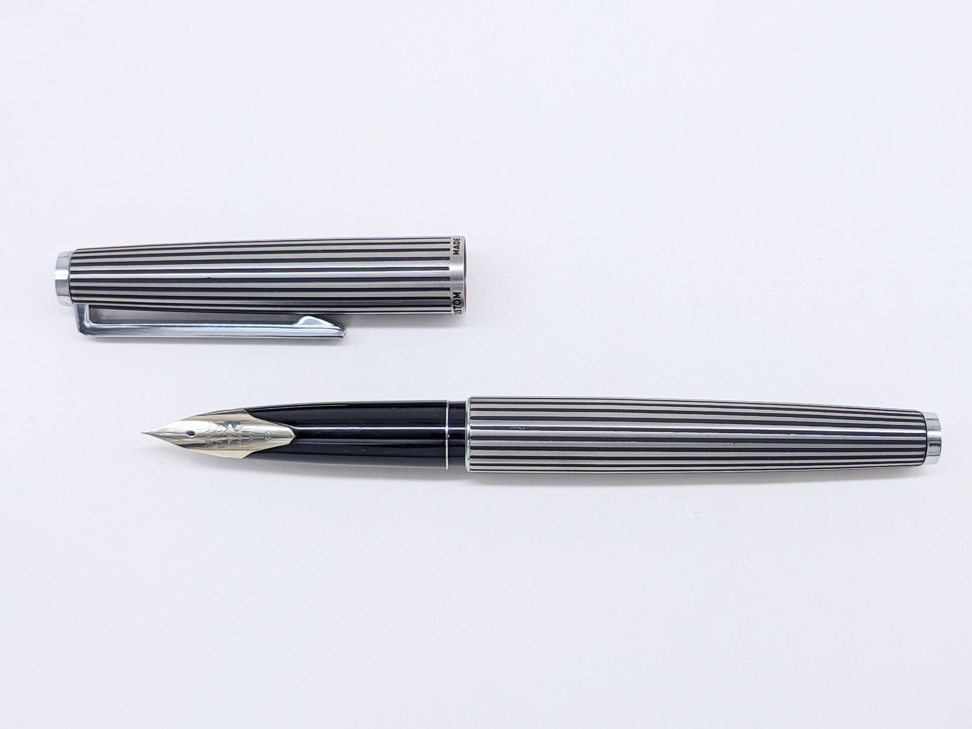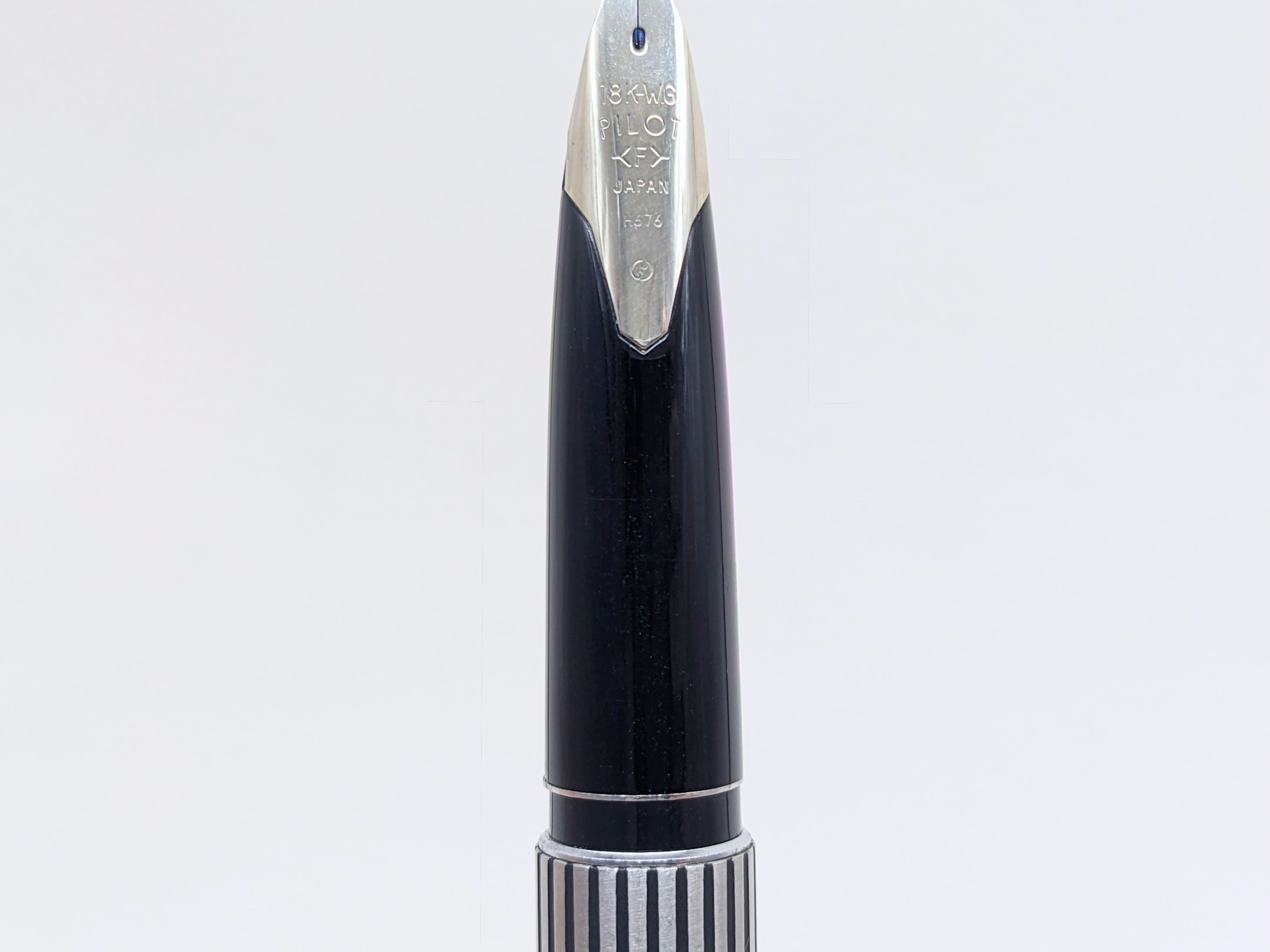 中古品 オーバーホール済み ペン先調整済み 字幅:ペン先表記「F」 細字 インク:カートリッジ式 コンバータ式 軸の使用感:使用回数少ない 付属品:カートリッジ1本(ブルーブラック) 万年筆診断書 ========== 1976年6月製造 「H676」 ペン先18金ホワイトゴールド 〄