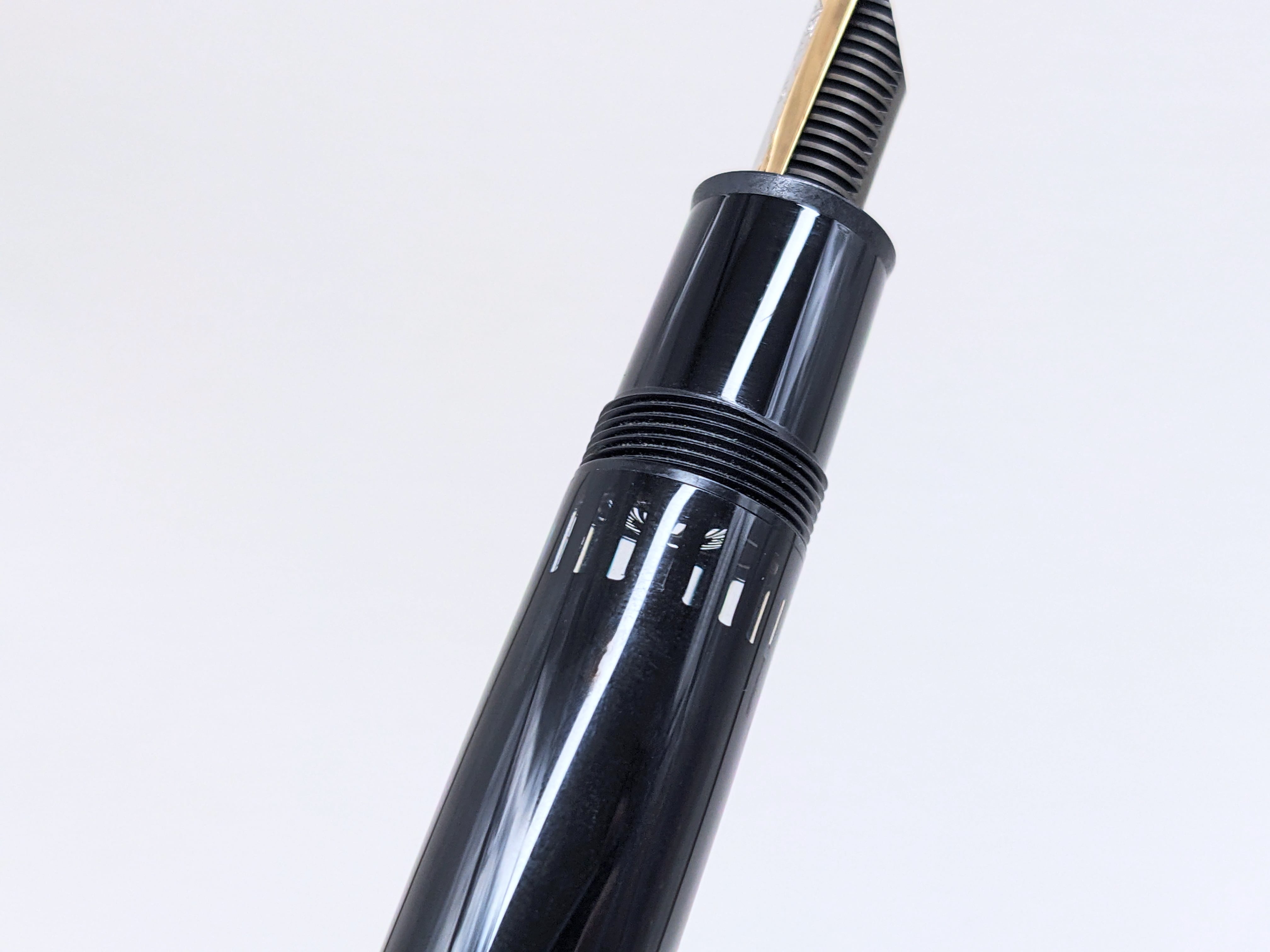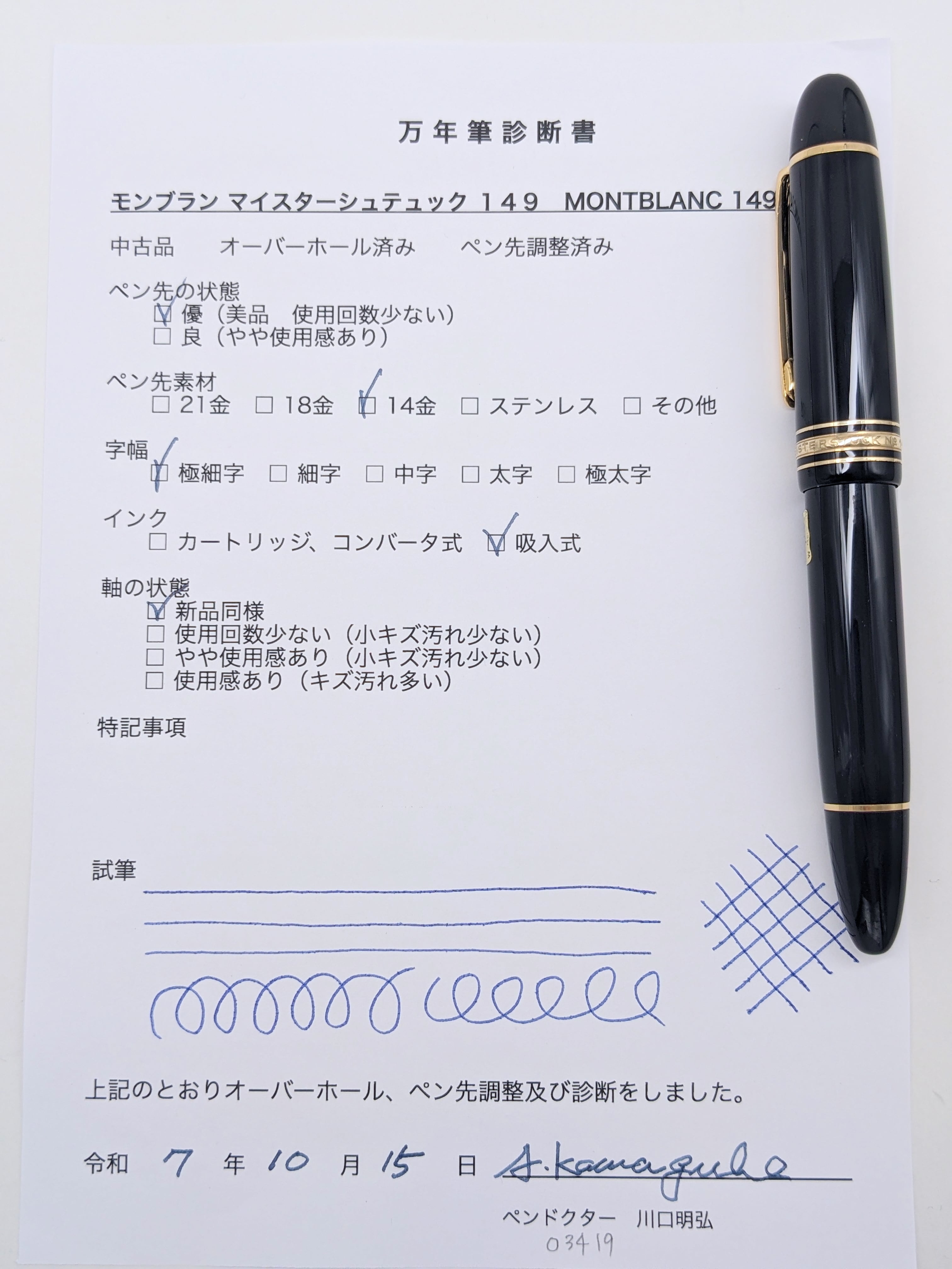 中古品 オーバーホール済み ペン先調整済み 字幅:ペン先表記「EF」 極細字 インク:吸入式 軸の使用感:新品同様 付属品:万年筆診断書 ========== 1980年代製造 ペン先14金(ペン先表記「14K」) ペン芯エボナイト 溝なし、段差あり 吸入良好