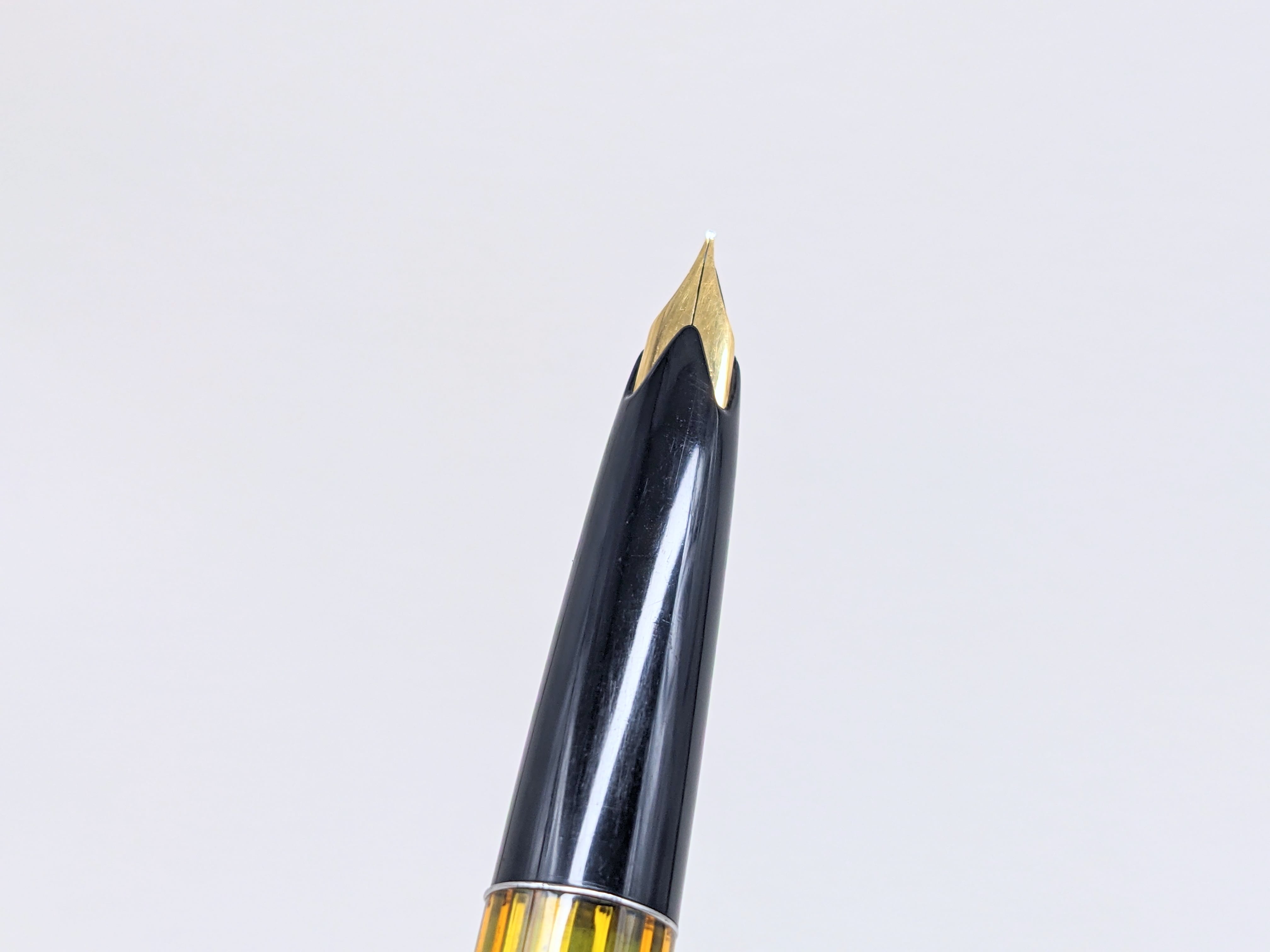 中古品 オーバーホール済み ペン先調整済み 字幅:細字 インク:吸入式 軸の使用感:使用回数少ない 付属品:万年筆診断書 ========== 1960年代製造 生産終了品 「No」表記あり ペン先18金 吸入良好