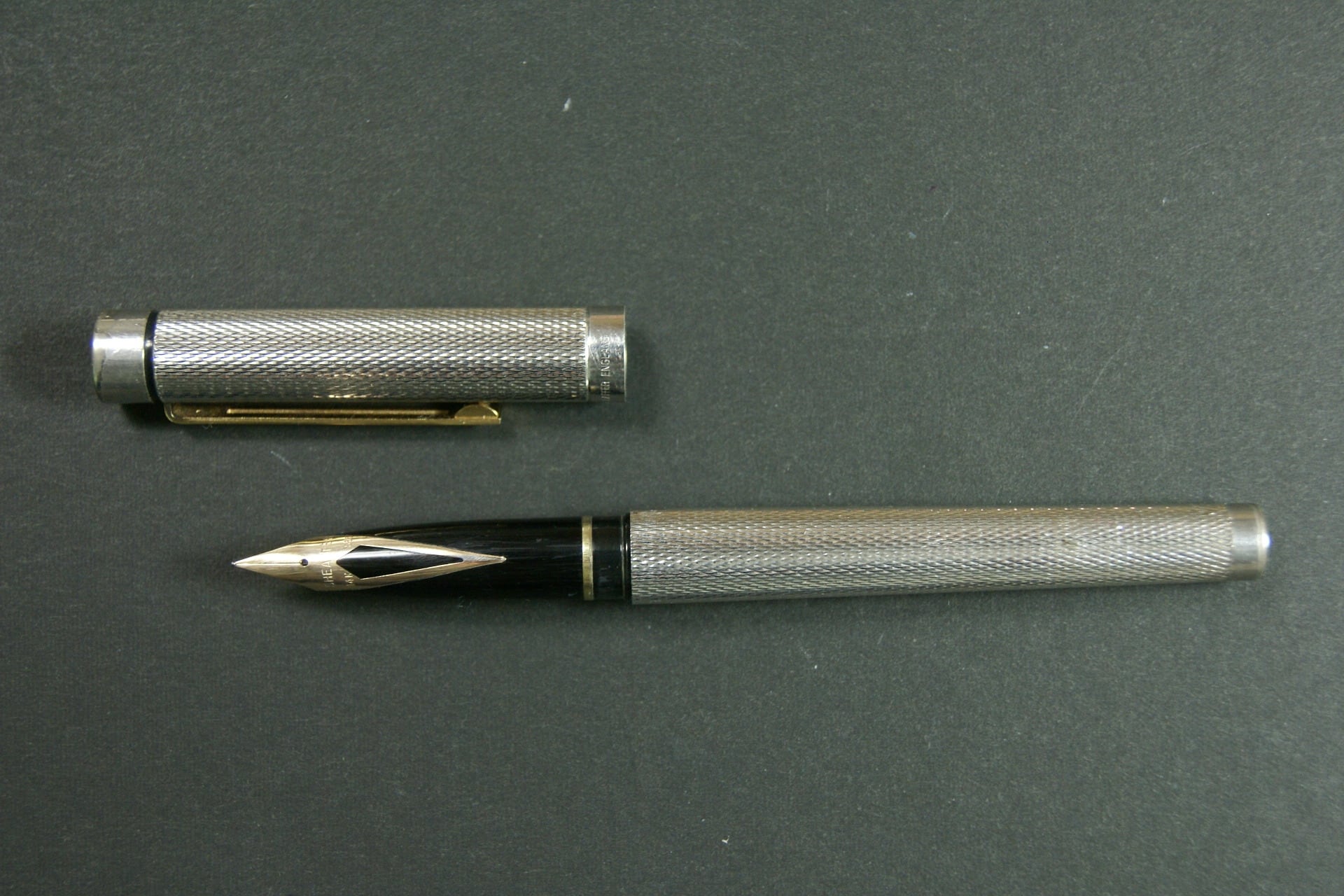 中古品 オーバーホール済み ペン先調整済み 字幅:細字 インク:カートリッジ式 コンバータ式 軸の使用感:使用感あり 付属品:コンバータ1本(装着済み) 万年筆診断書 ========== 1990年代製造 一部メッキ剥がれ有り