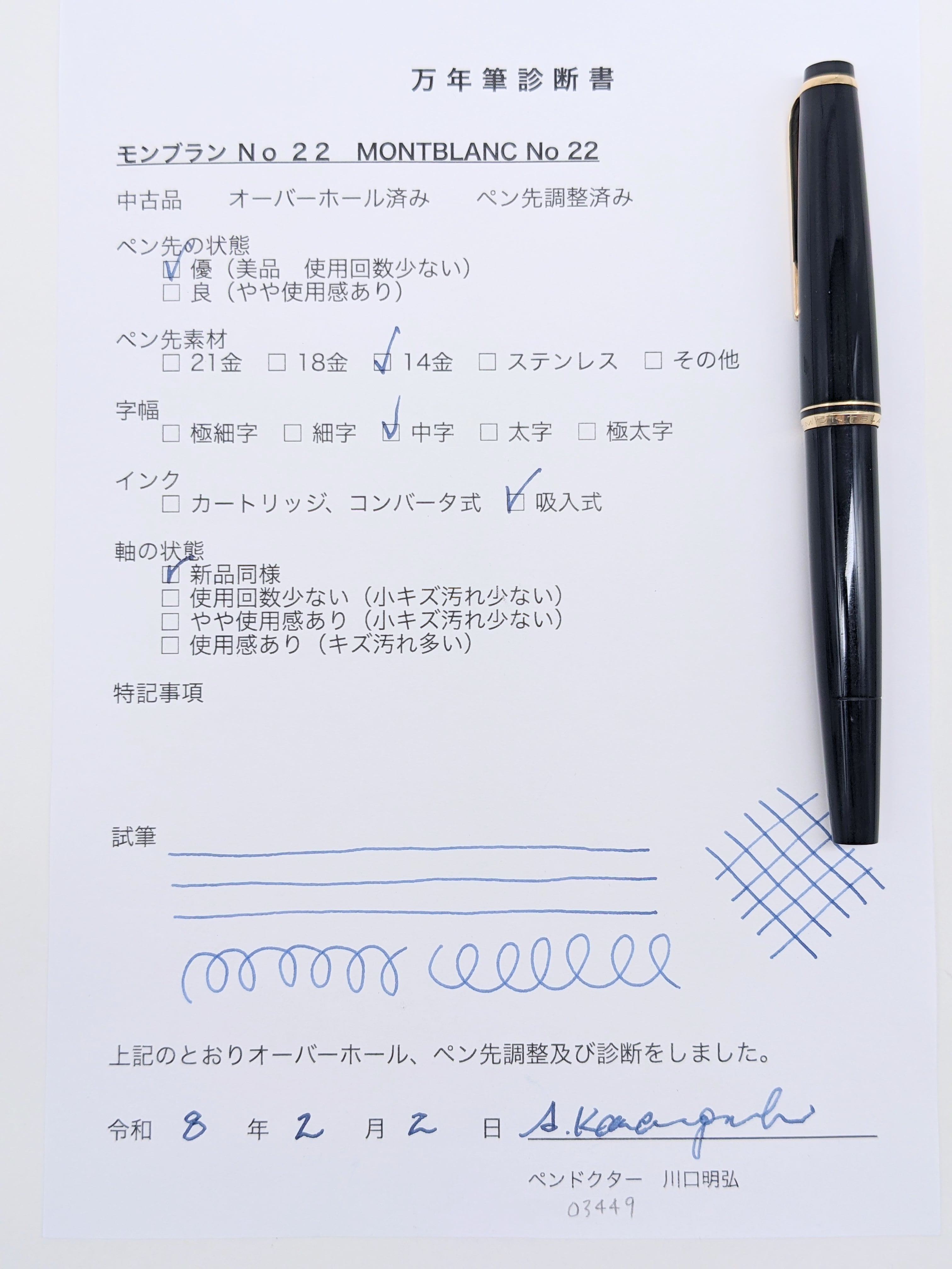 付属品:万年筆診断書