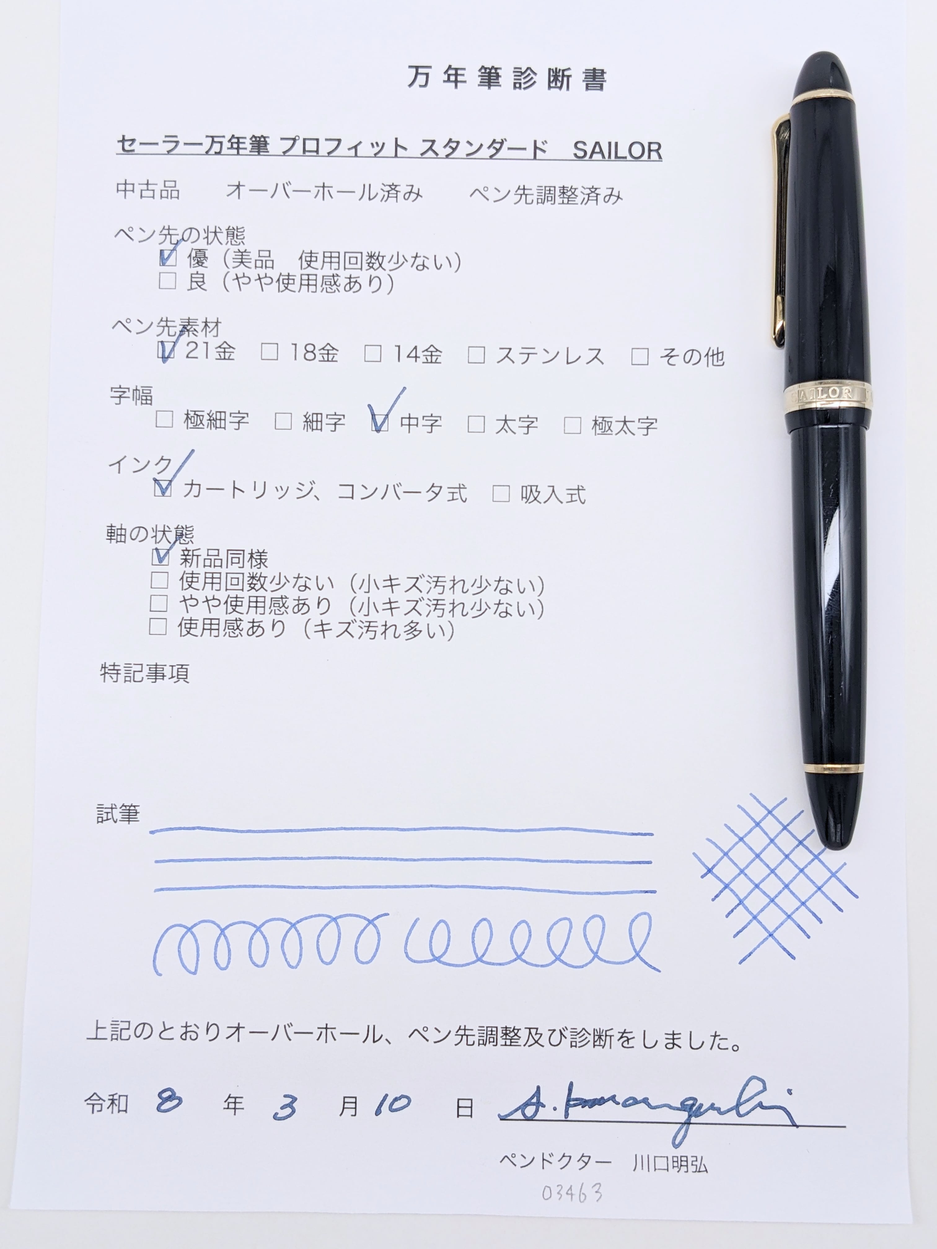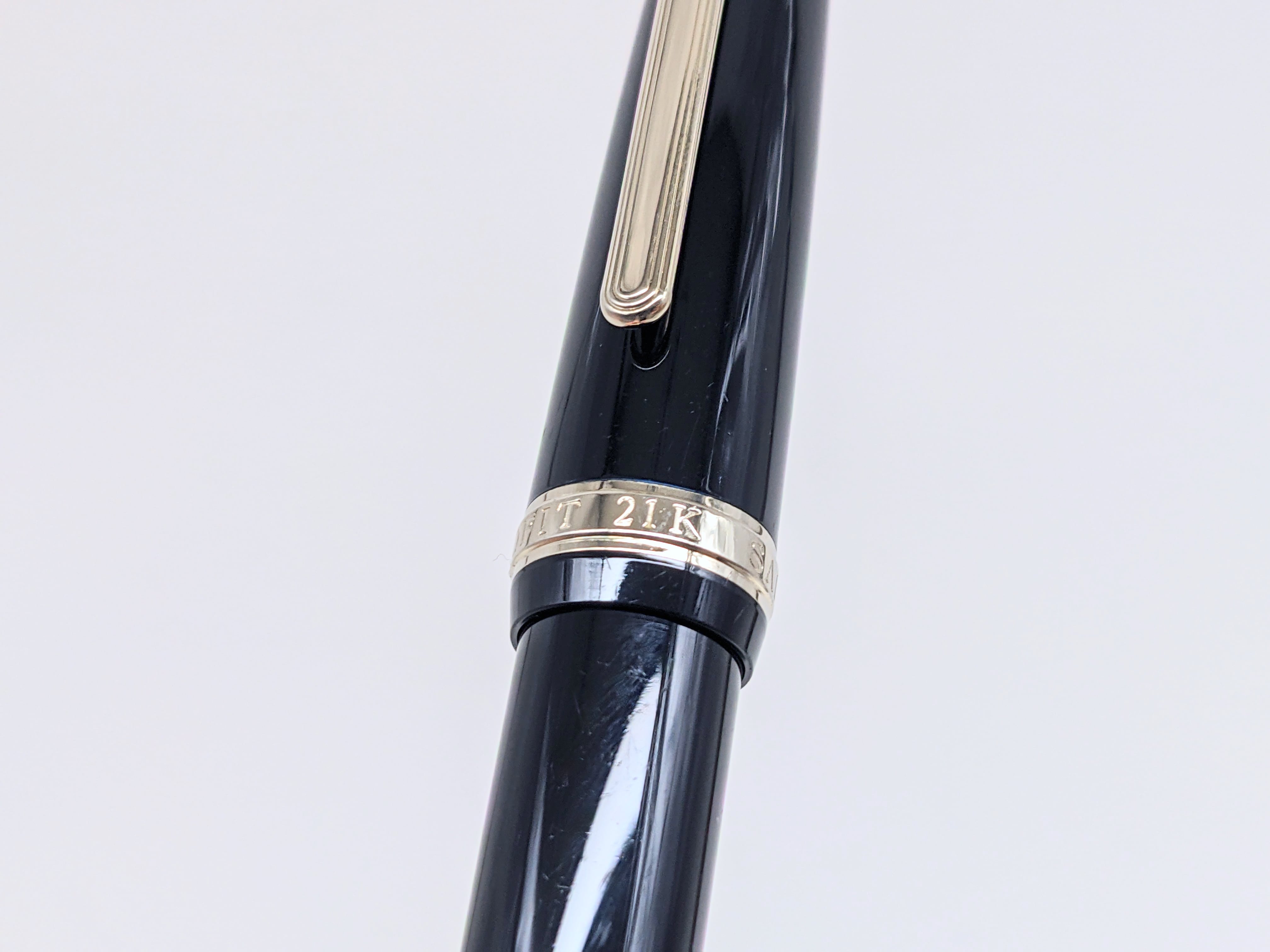 中古品 オーバーホール済み ペン先調整済み 字幅:ペン先表記「HーM」 インク:カートリッジ式 コンバータ式 軸の使用感:新品同様 付属品:カートリッジ1本(ブルーブラック) 万年筆診断書 ========== 1990年代製造 生産終了品 ペン先21金(ペン先表記「21K」) 本体サイズ:φ17×135mm 旧軸デザイン