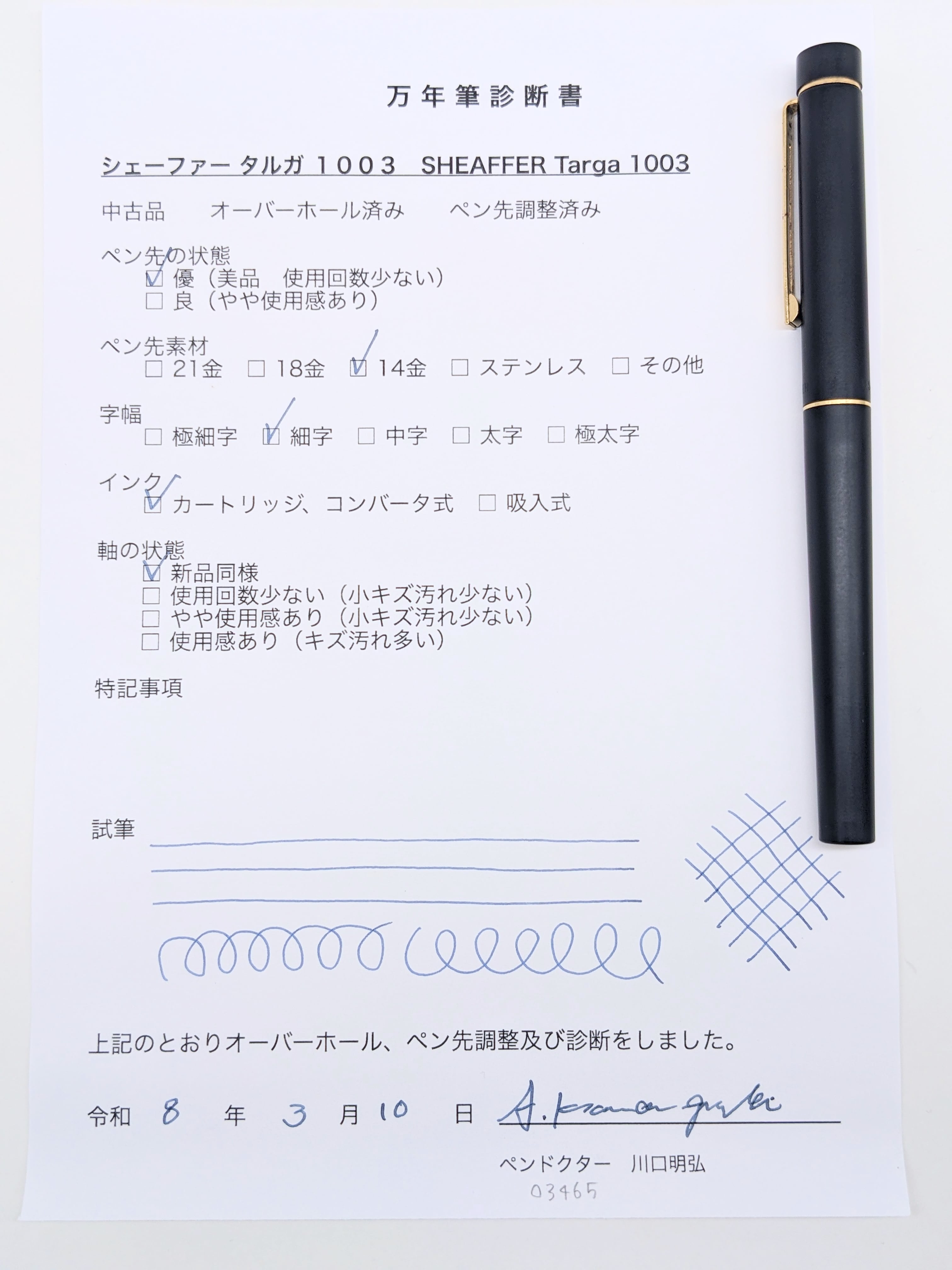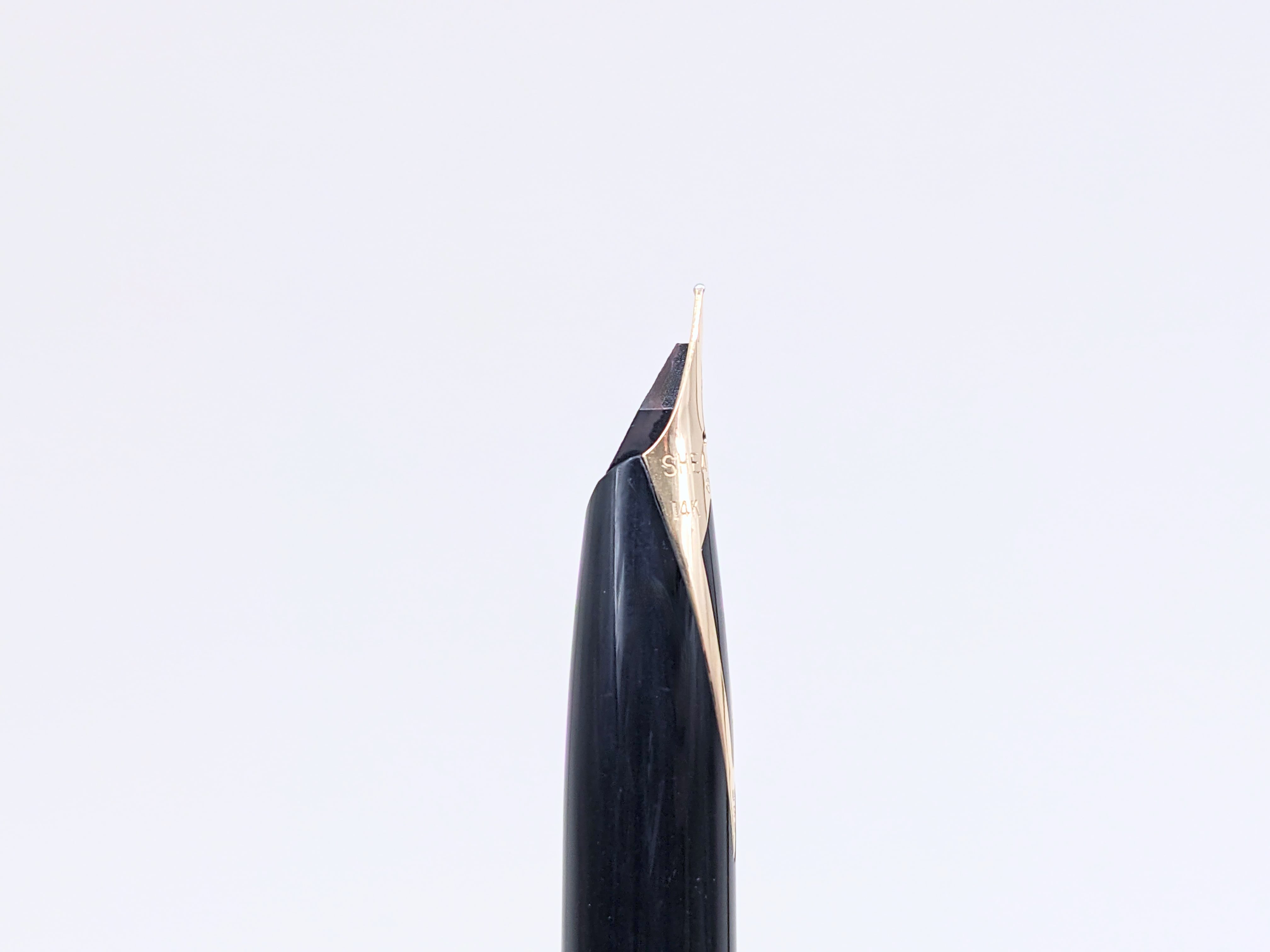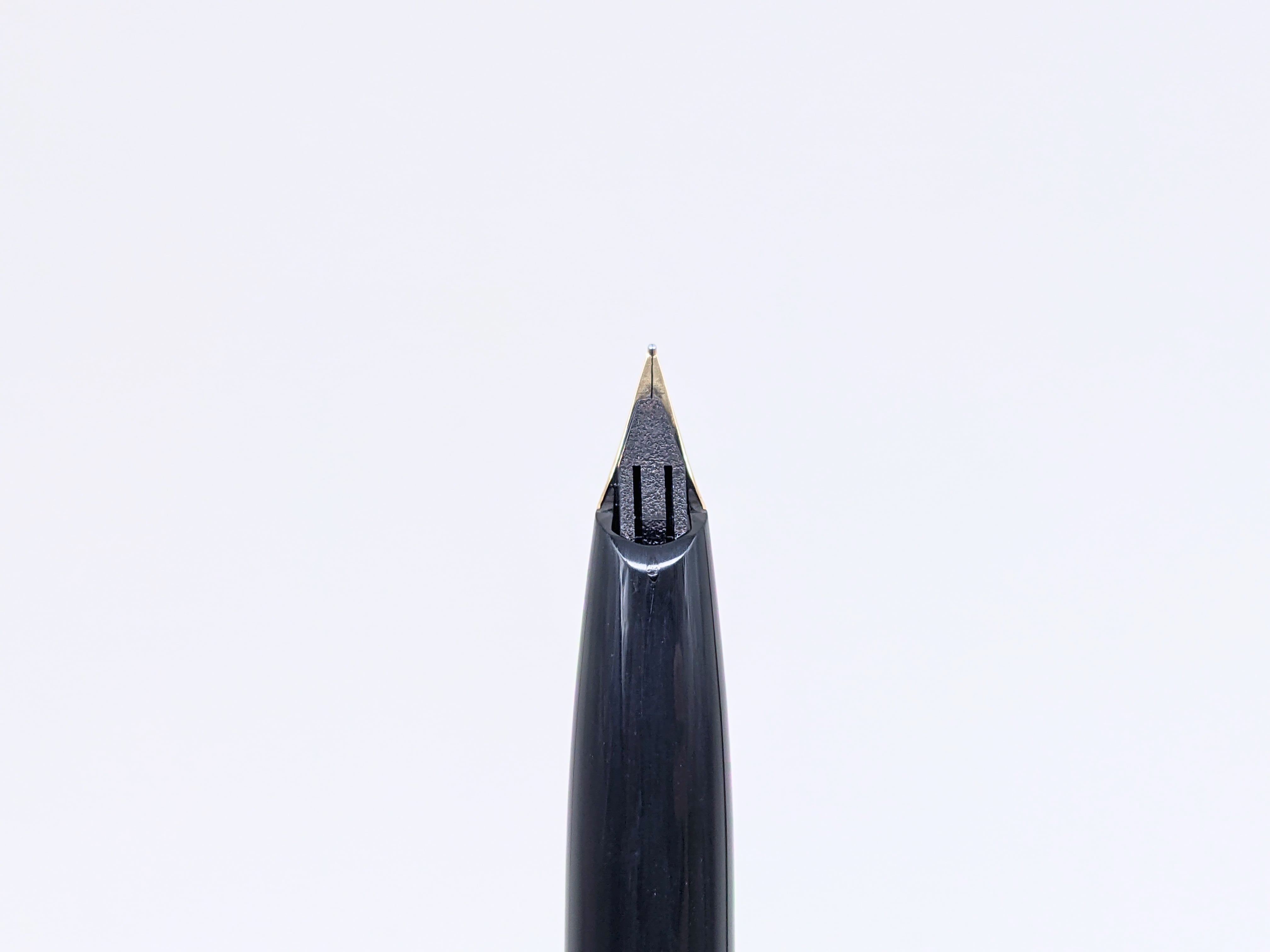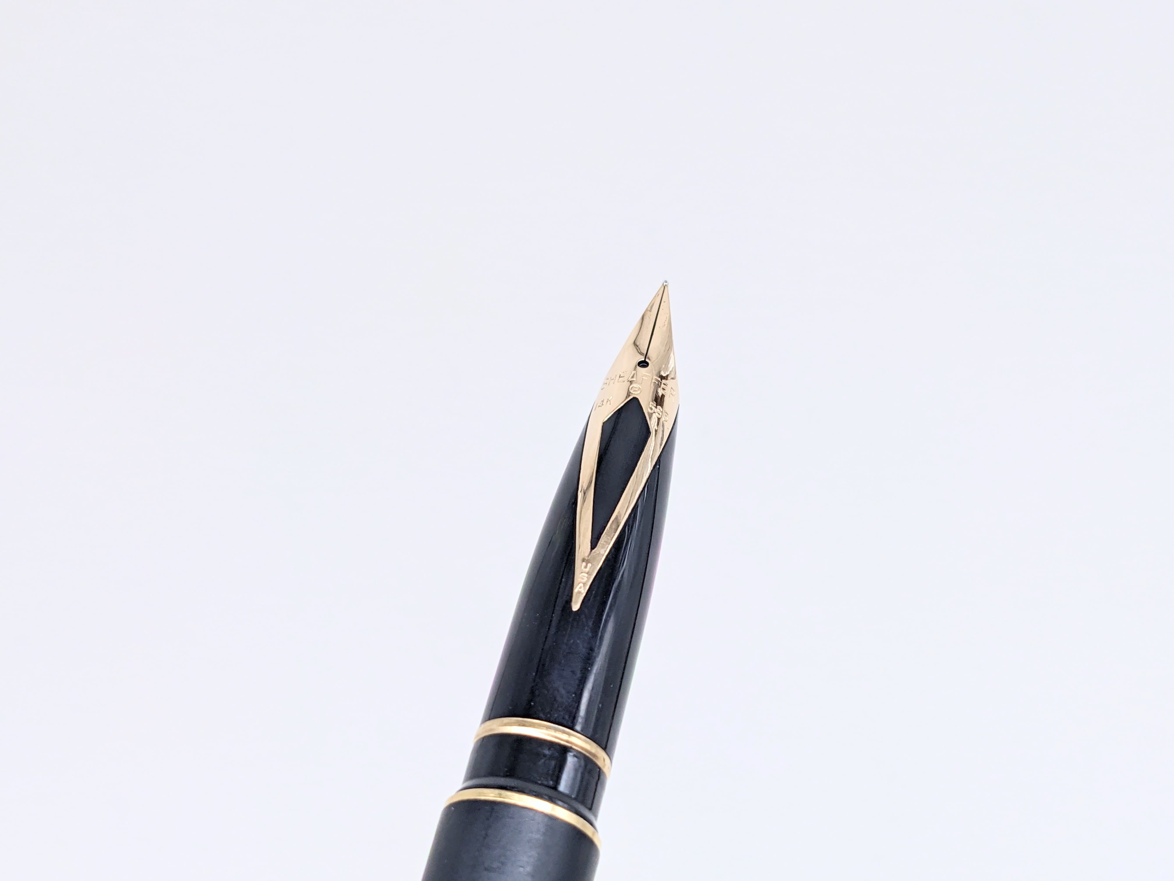 中古品 オーバーホール済み ペン先調整済み 字幅:ペン先表記「F」 細字 インク:カートリッジ式 コンバータ式 軸の使用感:新品同様 付属品:カートリッジ1本(ブラック) 万年筆診断書 ========== 1980年製造 生産終了品 ペン先14金 軸:マットブラック U.S.A.