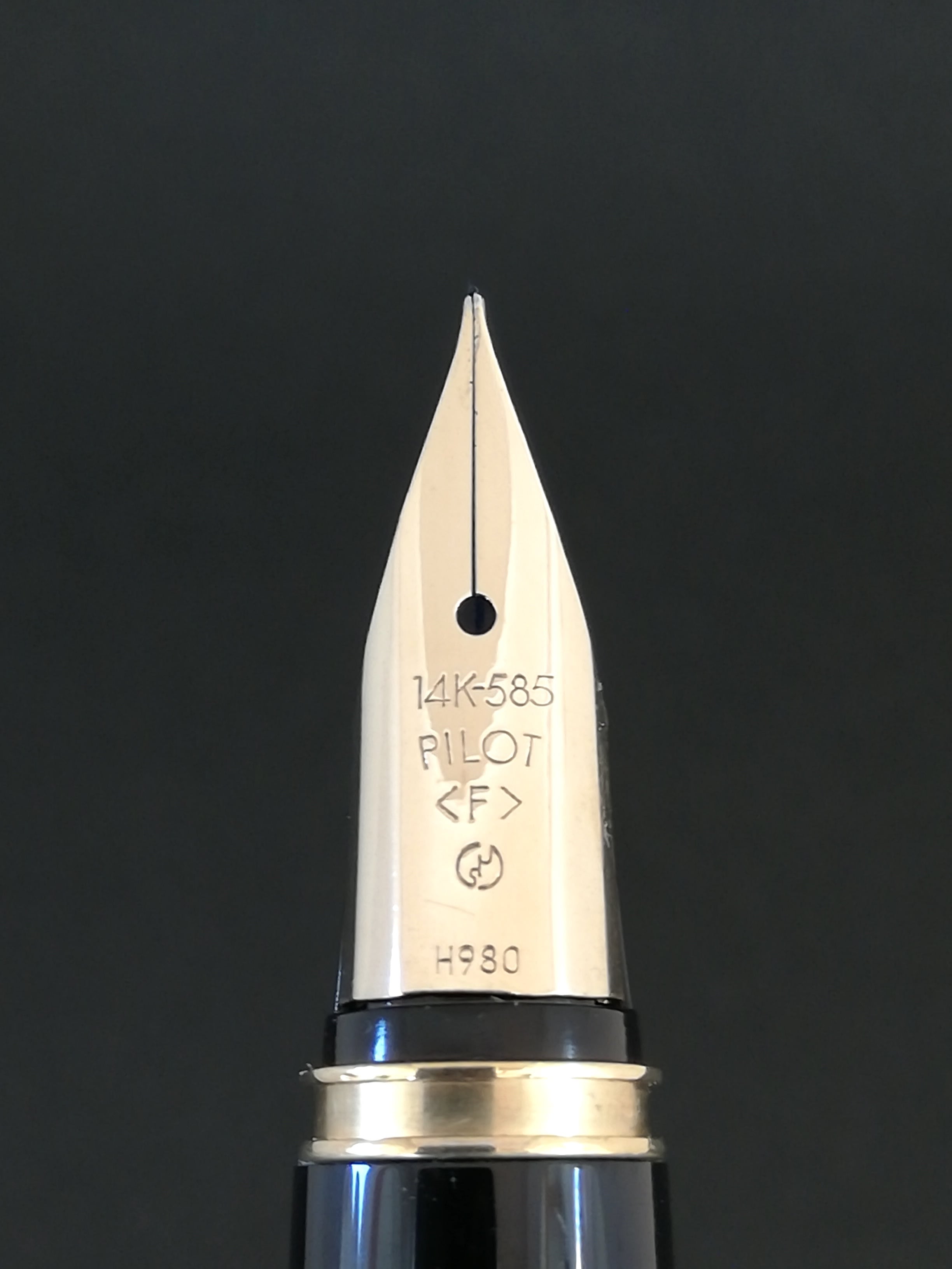 中古品(未使用品) オーバーホール済み ペン先調整済み 字幅:ペン先表記「細字」 インク:カートリッジ式 軸の使用感:新品同様 付属品:カートリッジ1本(ブルーブラック) 万年筆診断書 ========== 1980年9月製造 「H980」 ペン先14金 〄