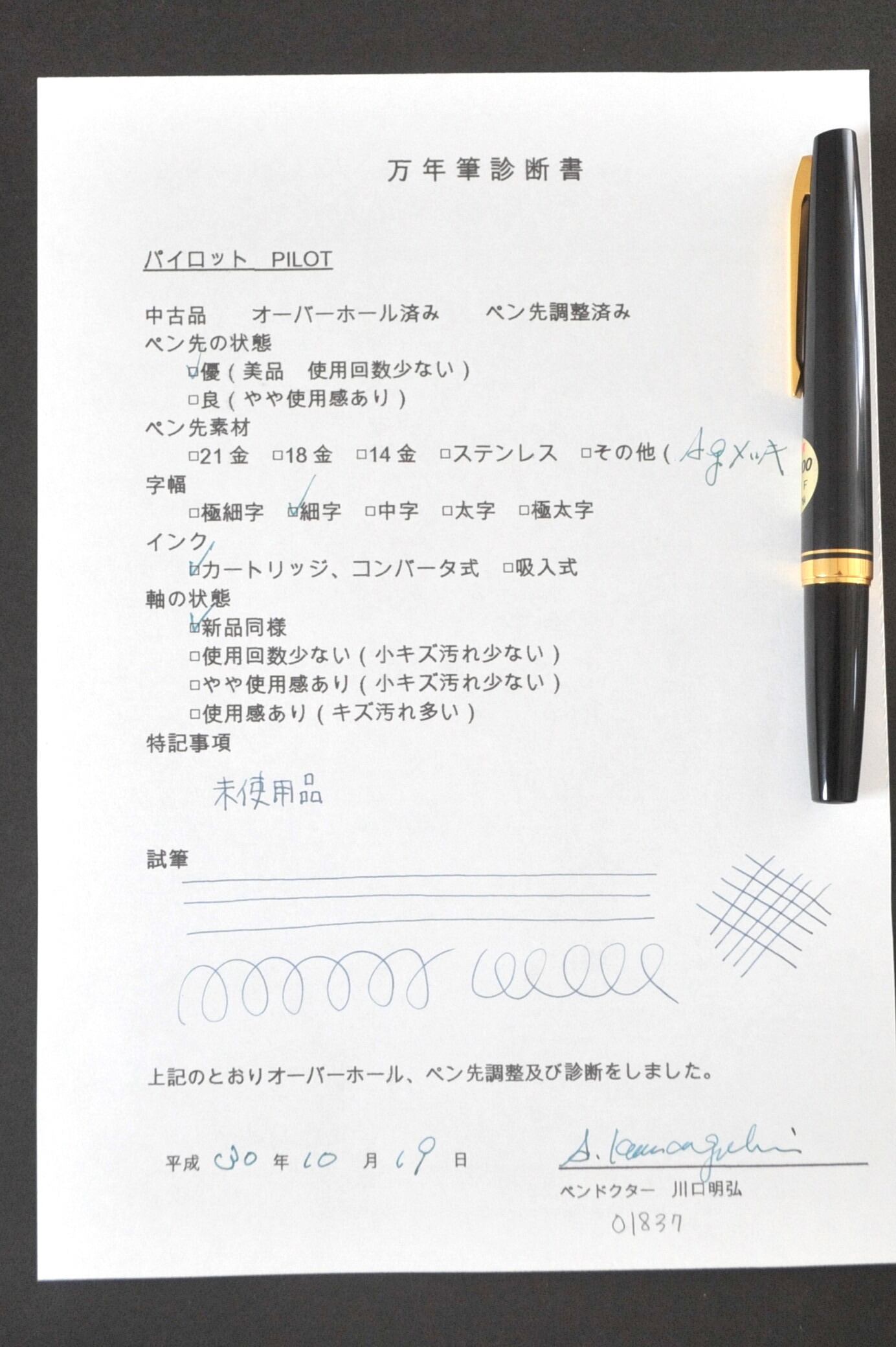 中古品(未使用品) オーバーホール済み ペン先調整済み 字幅:ペン先表記「F」 細字 インク:カートリッジ式 軸の使用感:新品同様 付属品:カートリッジ1本(ブルーブラック) 万年筆診断書 ========== 1981年6月製造 「H681」 〄
