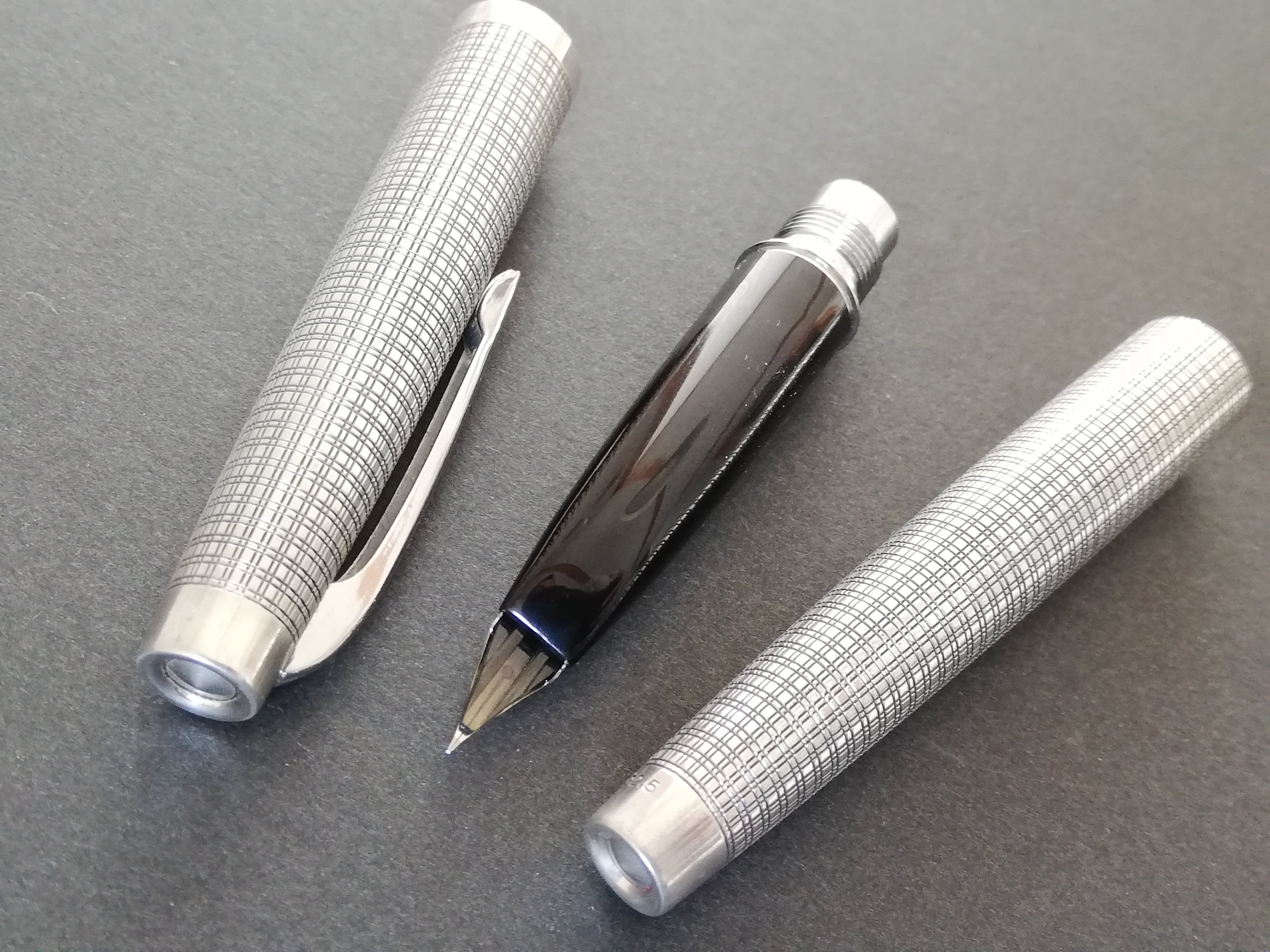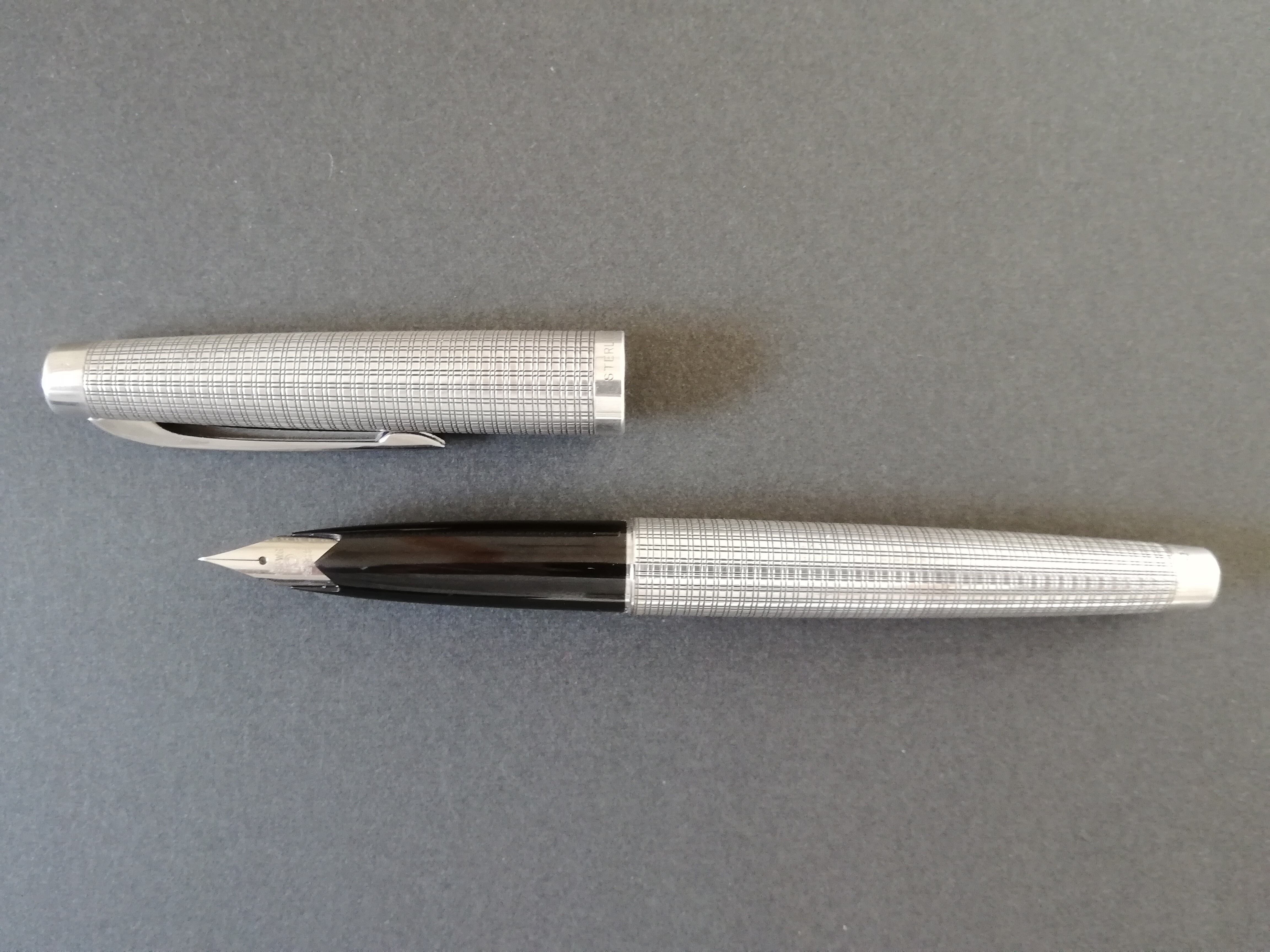 中古品 オーバーホール済み ペン先調整済み 字幅:ペン先表記「超極細」 超極細字 インク:カートリッジ式 コンバータ式 軸の使用感:新品同様 付属品:カートリッジ1本(ブルーブラック) 万年筆診断書 ========== 1970年代製造 生産終了品 ペン先18金ホワイトゴールド(ペン先表記「18KWG」)