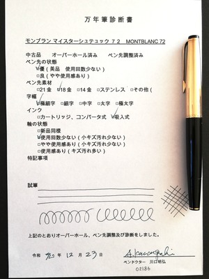 付属品:万年筆診断書