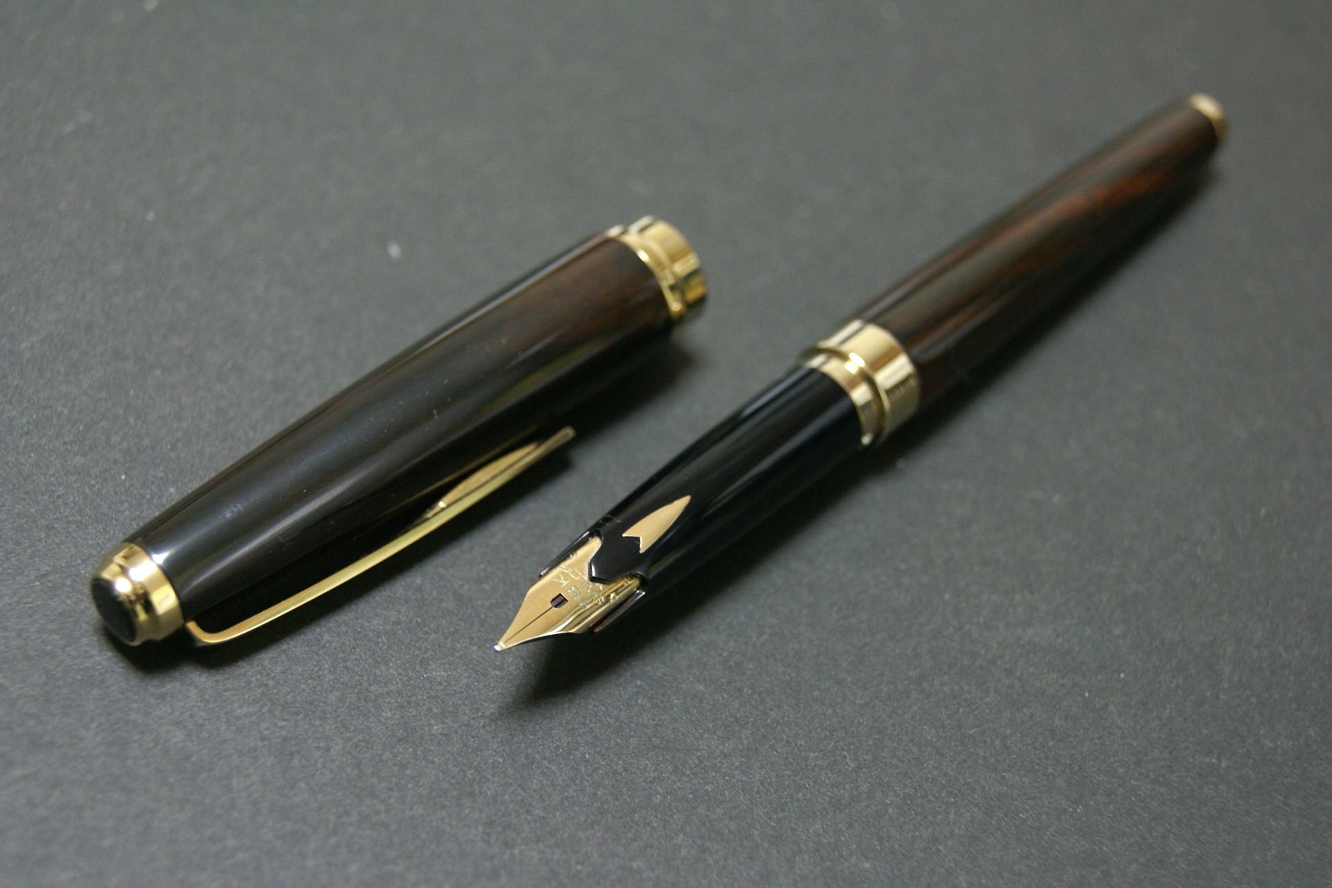 中古品(未使用品) オーバーホール済み ペン先調整済み 字幅:ペン先表記「4」 中字 インク:カートリッジ式 コンバータ式 軸の使用感:新品同様 付属品:カートリッジ1本(ブルーブラック) 万年筆診断書 ========== 生産終了品 ペン先18金 軸:黒檀