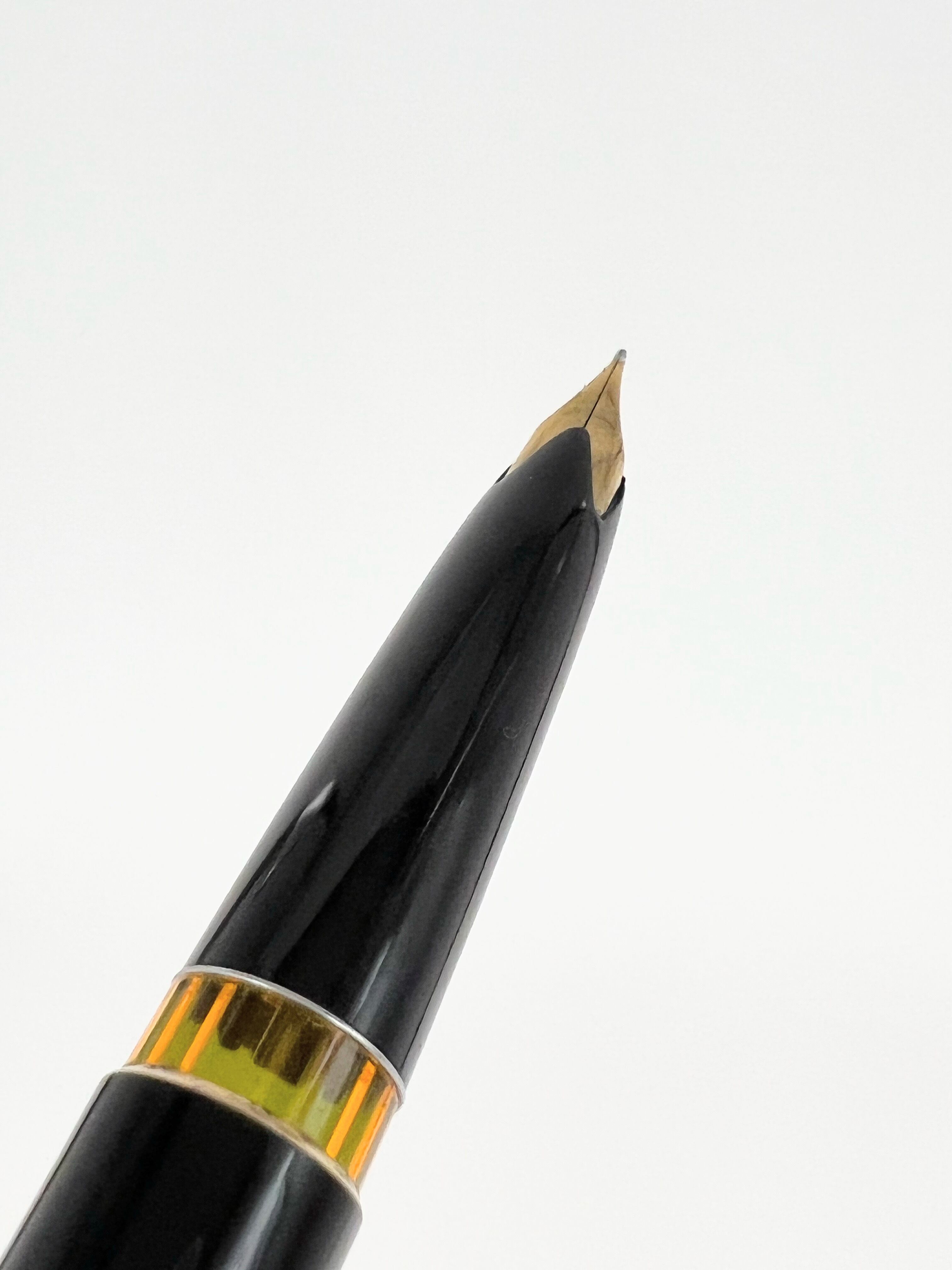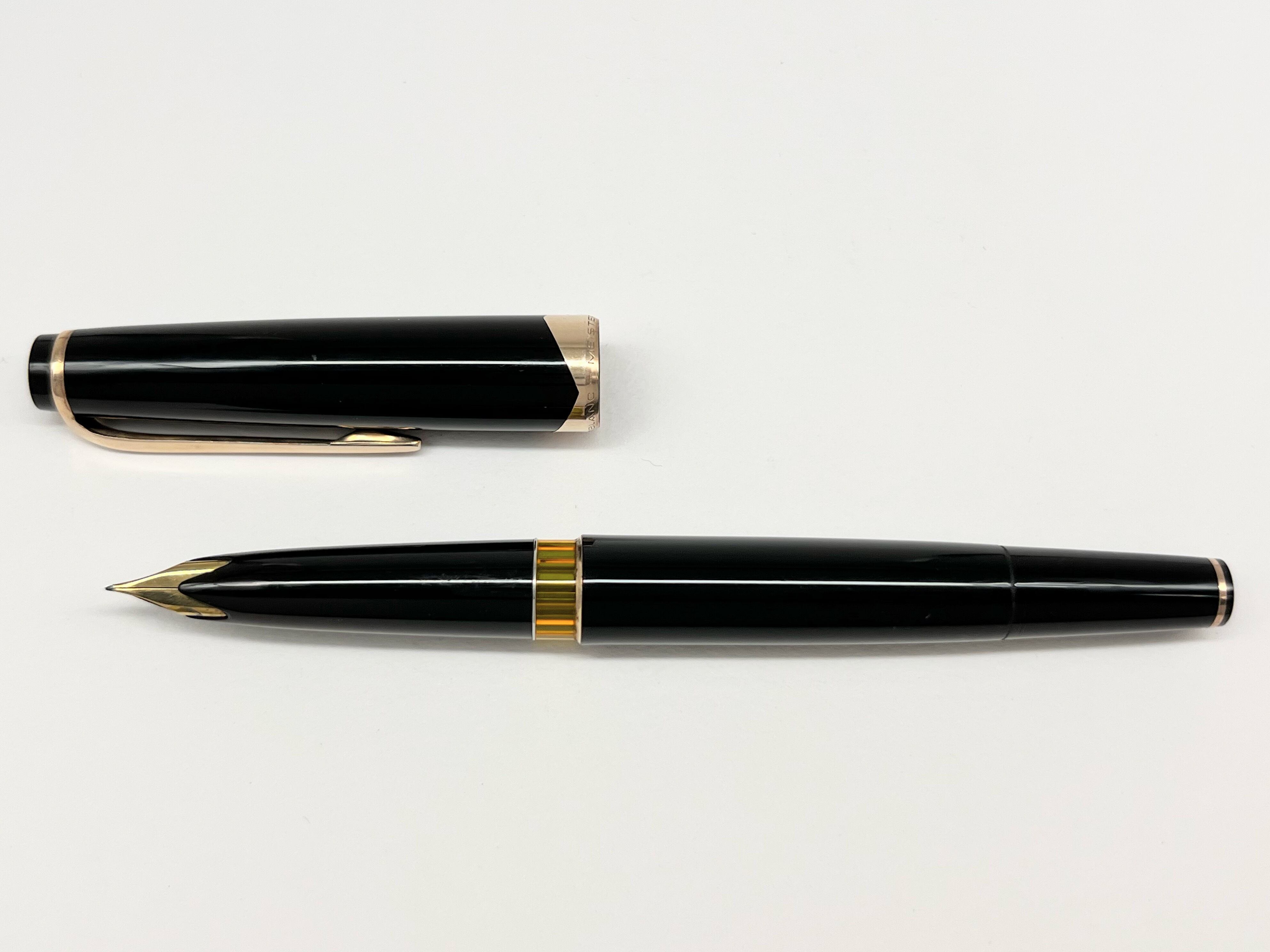 中古品 オーバーホール済み ペン先調整済み 字幅:細字 インク:吸入式 軸の使用感:使用回数少ない 付属品:万年筆診断書 ========== 1960年代製造 生産終了品 「No」表記あり ペン先18金 吸入良好