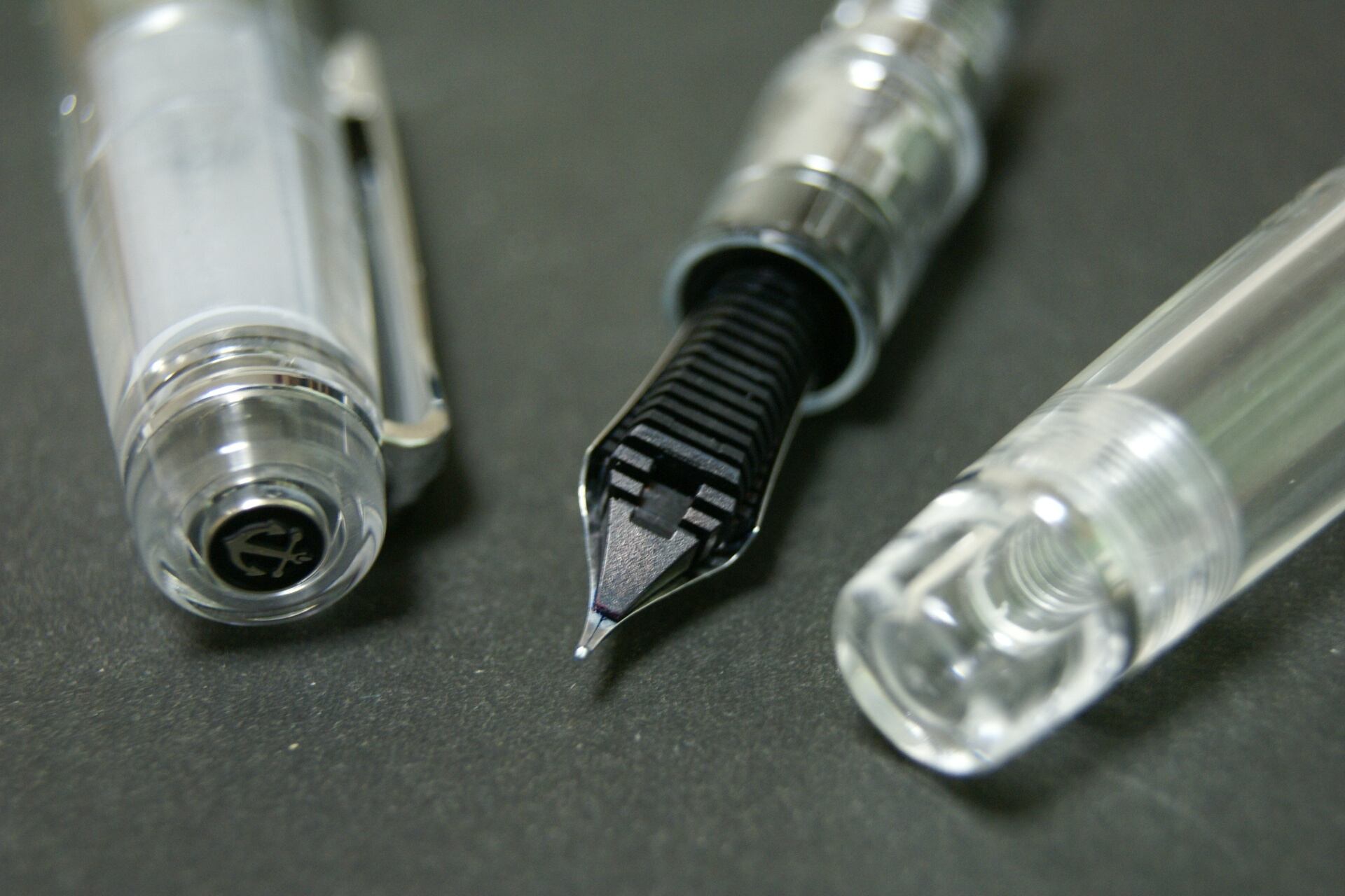 中古品(未使用品) オーバーホール済み ペン先調整済み 字幅:ペン先表記「HーMF」 インク:カートリッジ式 コンバータ式 軸の使用感:新品同様 付属品:カートリッジ1本(ブルーブラック) 万年筆診断書 ========== 2013年販売 ペン先21金 セーラー万年筆透明感シリーズ