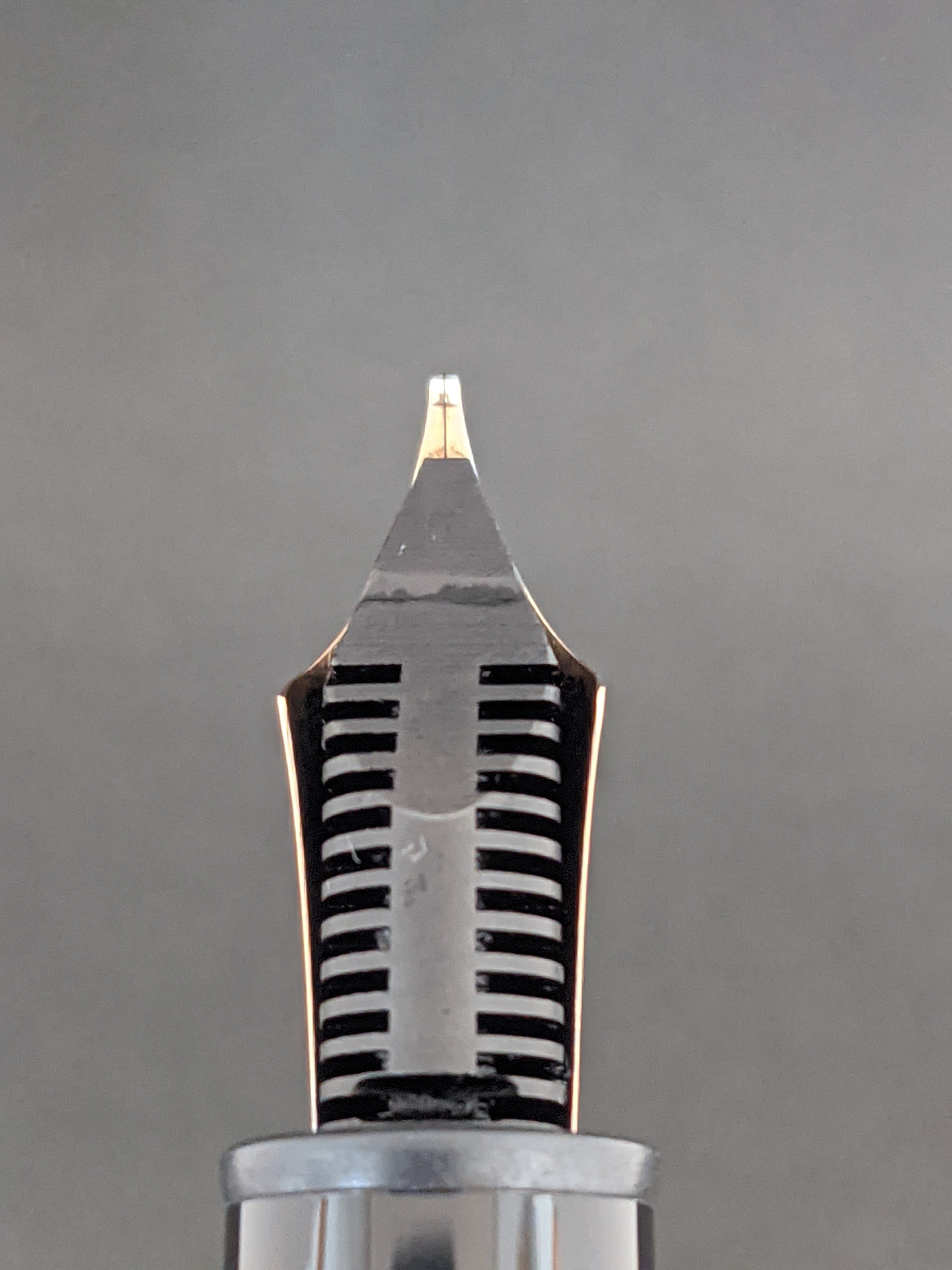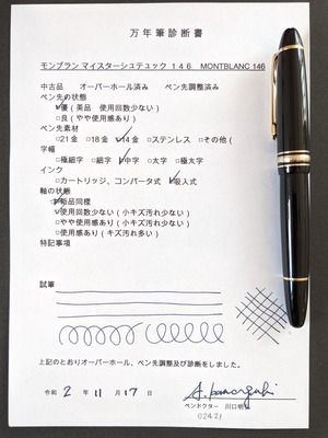 中古品 オーバーホール済み ペン先調整済み 字幅:中字 インク:吸入式 軸の使用感:使用回数少ない 付属品:万年筆診断書 ========== 1990年代製造 生産終了品 ペン芯エボナイト 段差あり 吸入良好