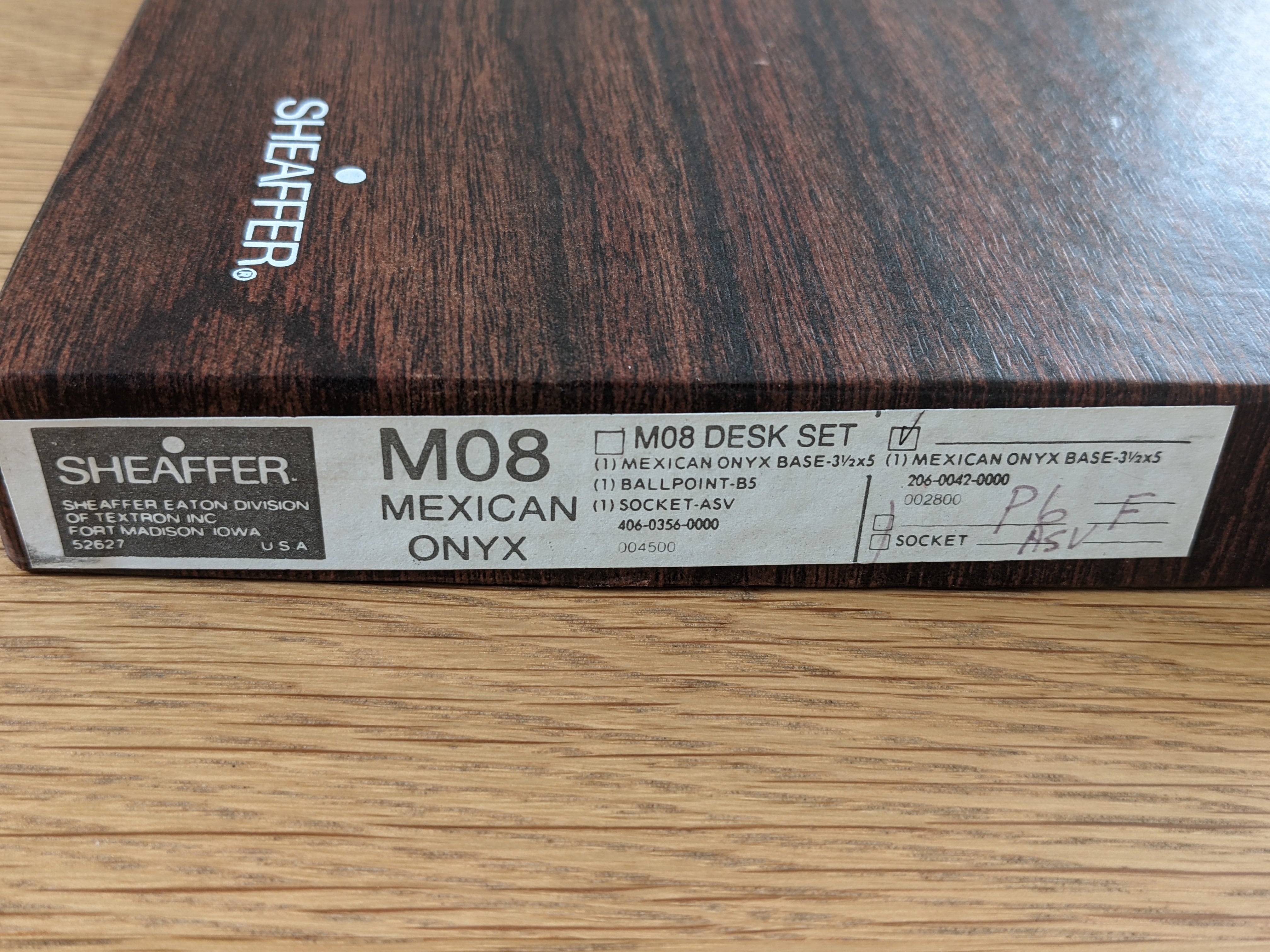 メキシコ産大理石(メキシカン オニキス)を使用した台座付きのデスクペンセットです。