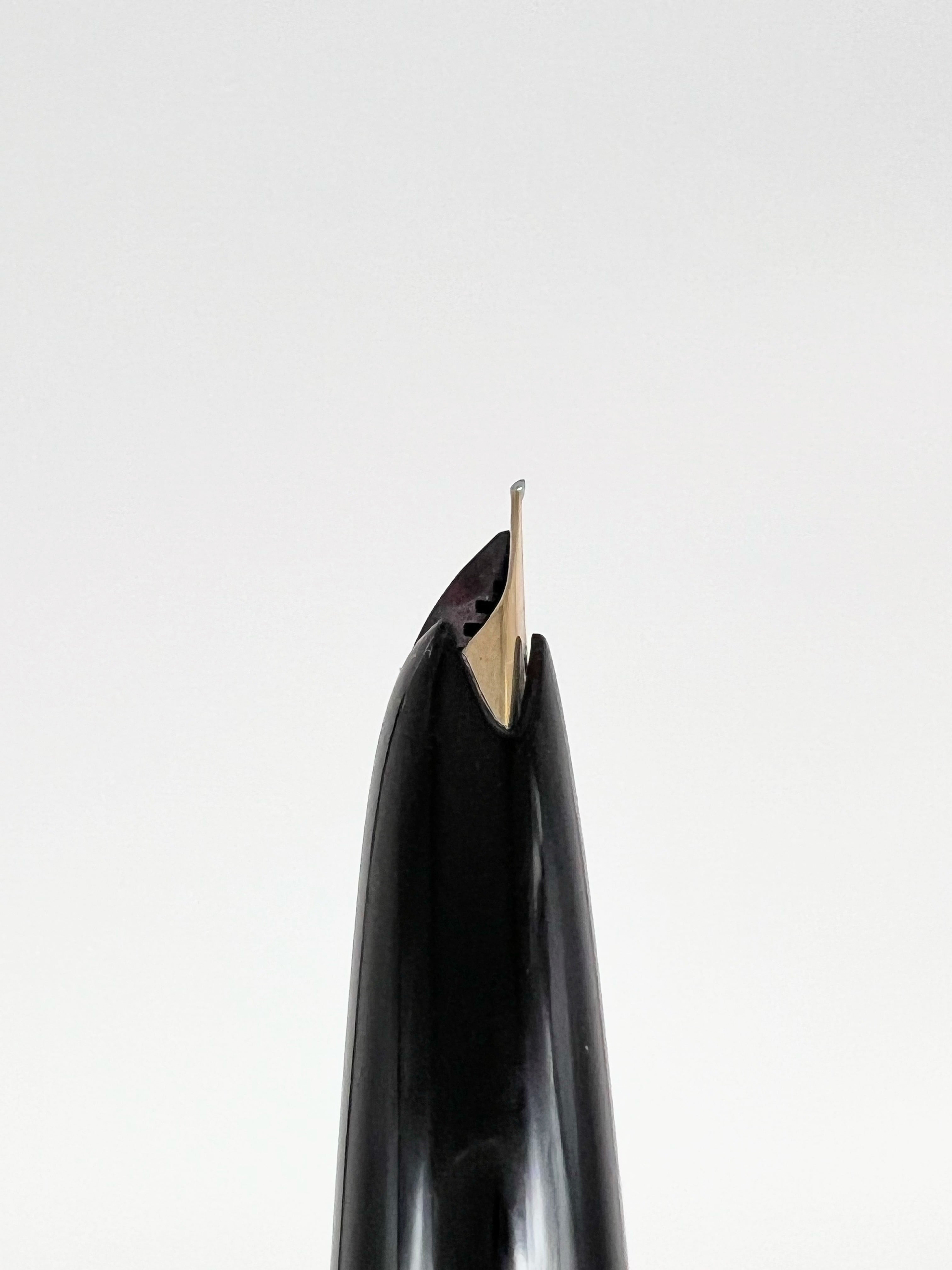中古品 オーバーホール済み ペン先調整済み 字幅:細字 インク:吸入式 軸の使用感:使用回数少ない 付属品:万年筆診断書 ========== 1960年代製造 生産終了品 ペン先14金 吸入良好 軸色:黒