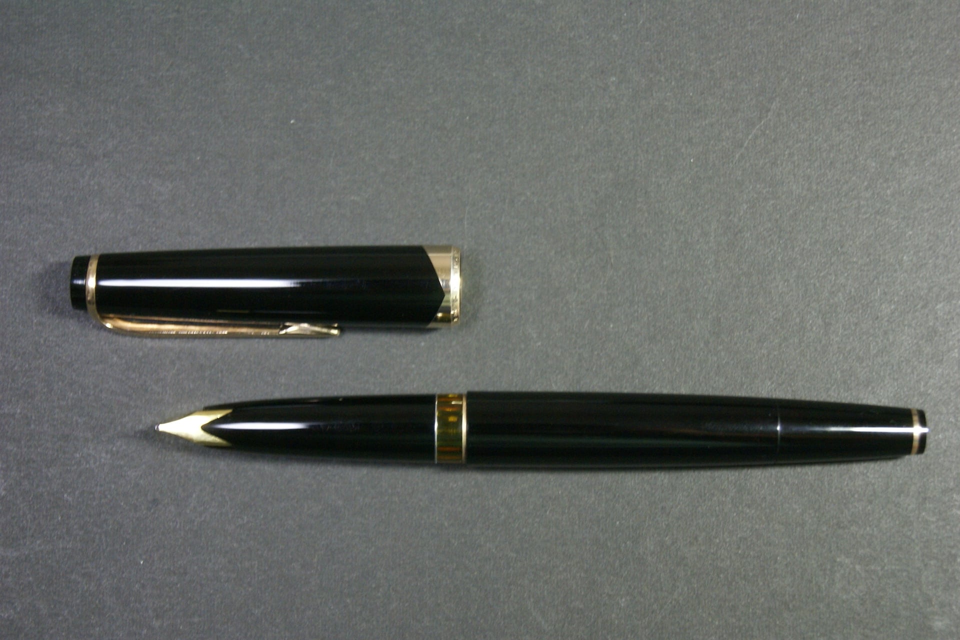 中古品 オーバーホール済み ペン先調整済み 字幅:OB細字 オーブリーク インク:吸入式 軸の使用感:新品同様 付属品:万年筆診断書 ========== 1960年代製造 生産終了品 ペン先18金 吸入良好