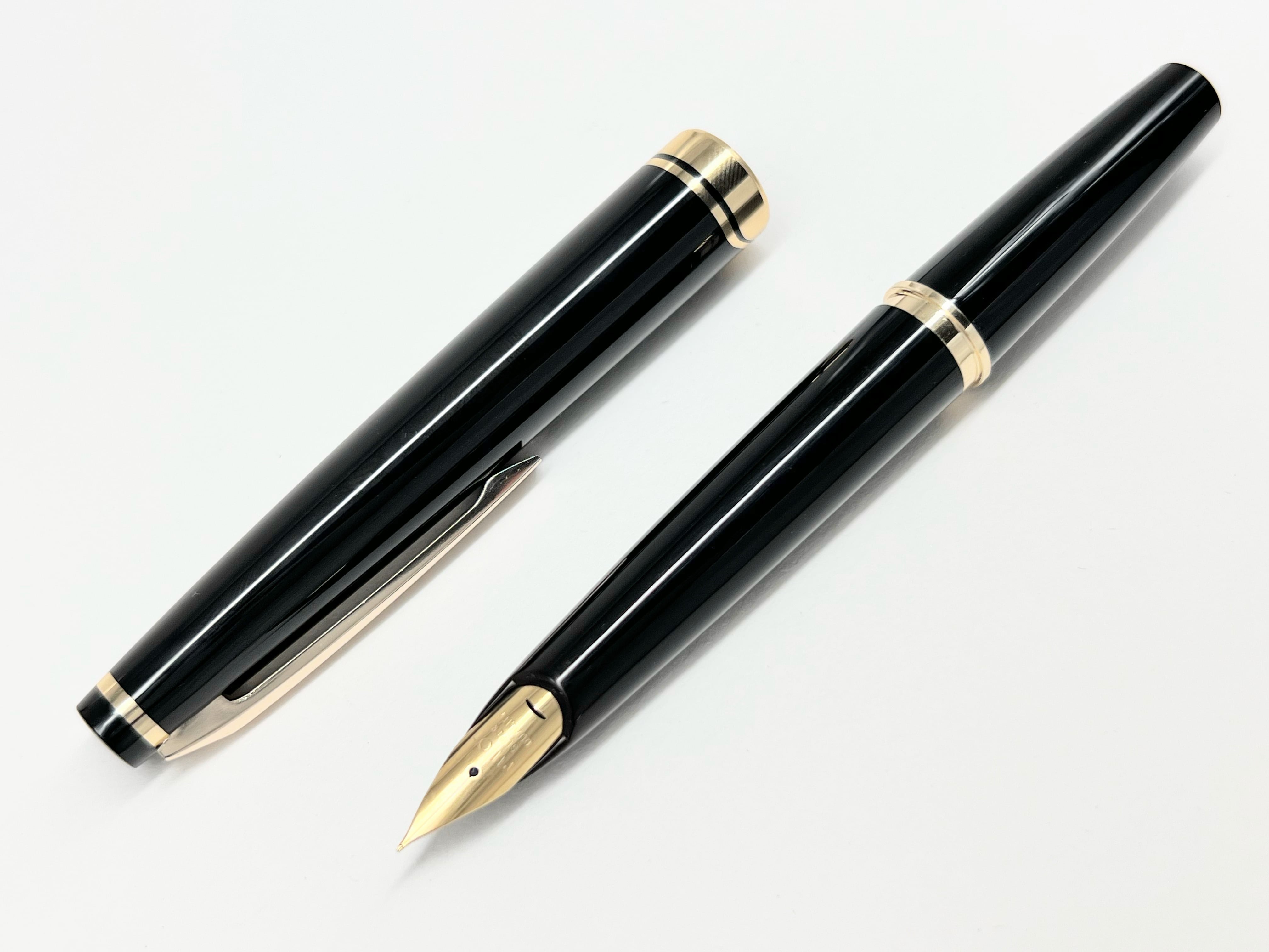 中古品 オーバーホール済み ペン先調整済み 字幅:細字 インク:カートリッジ式 軸の使用感:使用回数少ない 付属品:カートリッジ1本(ブルーブラック) 万年筆診断書 ========== 1960年代製造 生産終了品 「PILOT SUPER QUALITY」 ペン先:メッキ