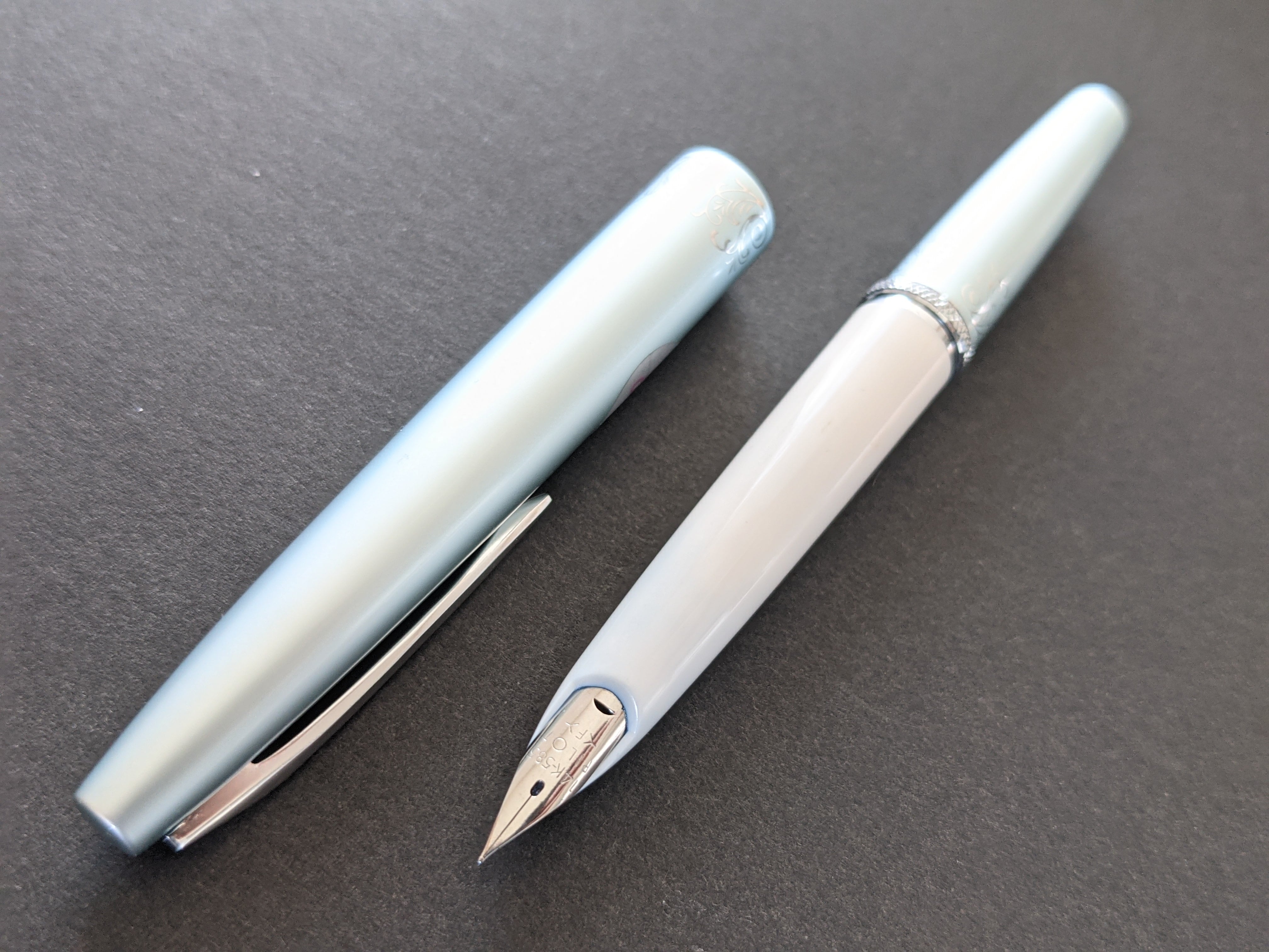 中古品(未使用品) オーバーホール済み ペン先調整済み 字幅:ペン先表記「細字 F」 インク:カートリッジ式 軸の使用感:新品同様 付属品:カートリッジ1本(ブルーブラック) 万年筆診断書 ========== 1960年代製造 生産終了品 ペン先14金 キャップ、尻軸:アルミ製