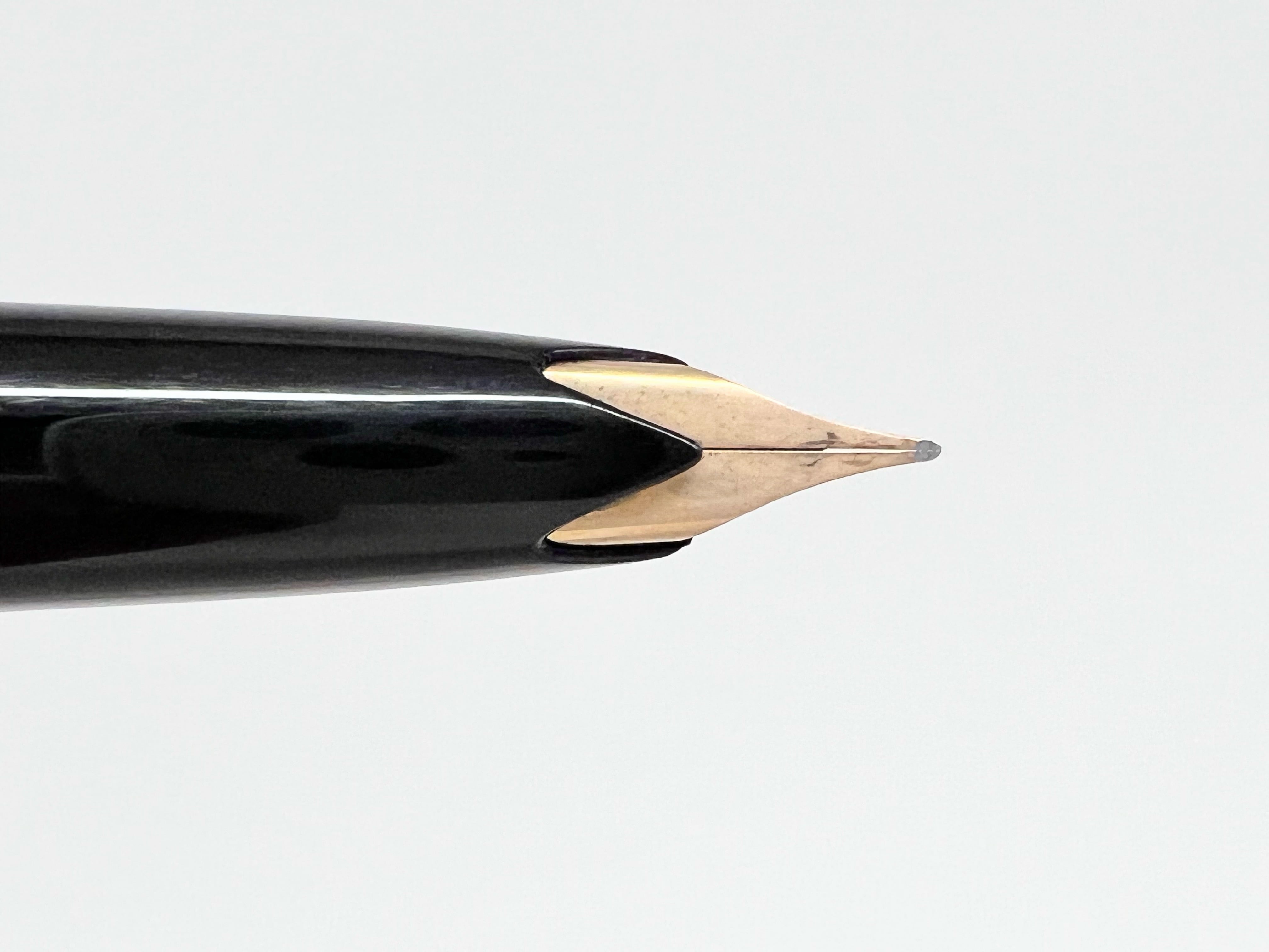 中古品 オーバーホール済み ペン先調整済み 字幅:細字 インク:吸入式 軸の使用感:使用回数少ない 付属品:ケース 万年筆診断書 ========== 1960年代製造 生産終了品 ペン先14金 吸入良好 軸色:黒 【川口、スタッフのコメント】 ケースには劣化、汚れが見られます。