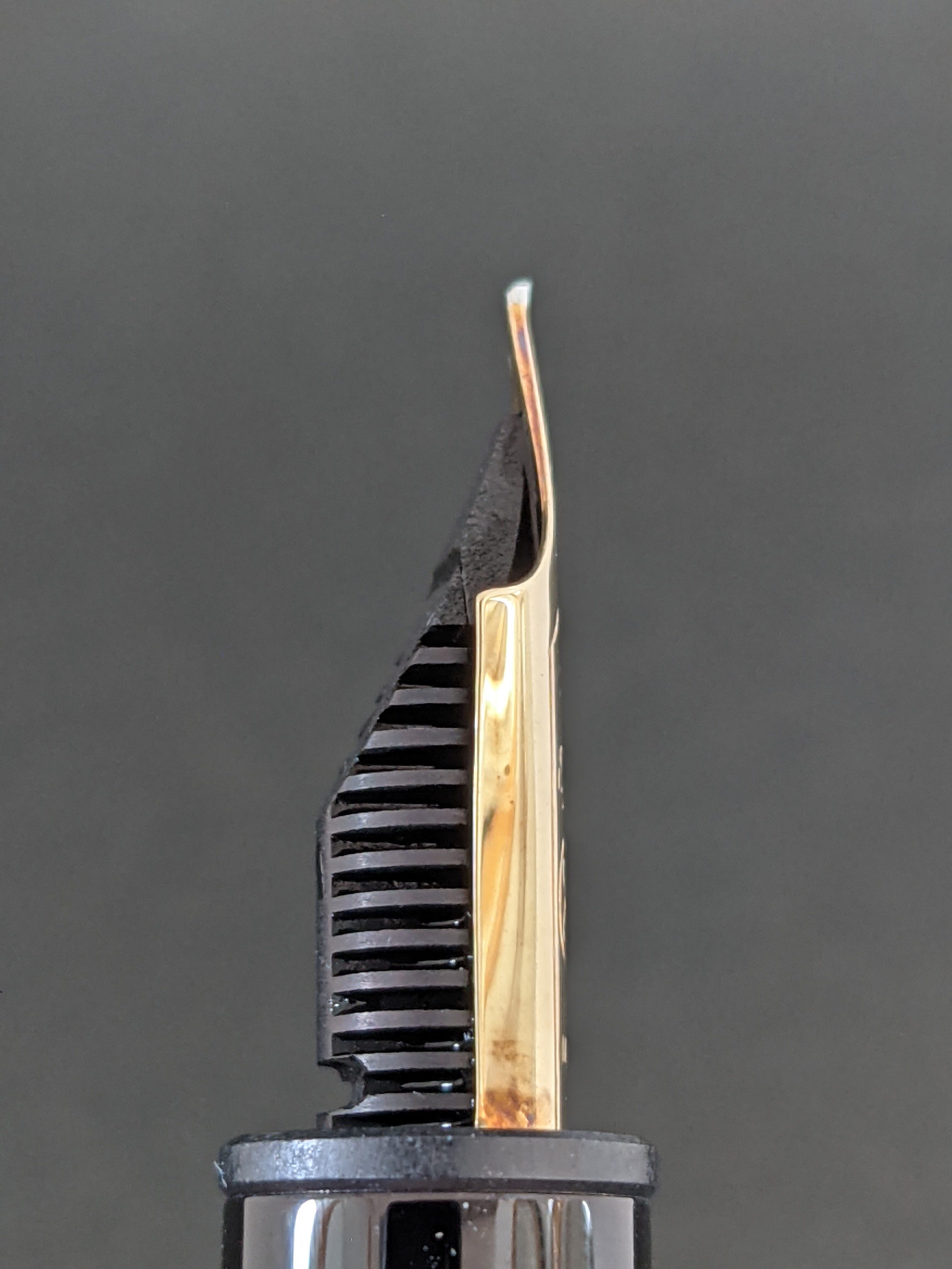 中古品 オーバーホール済み ペン先調整済み 字幅:ペン先表記「M」 中字 インク:吸入式 軸の使用感:新品同様 付属品:ケース 使用説明書 万年筆診断書 ========== 1970年代製造 ペン先14金(ペン先表記「14C」) ペン芯エボナイト 段差あり 吸入良好