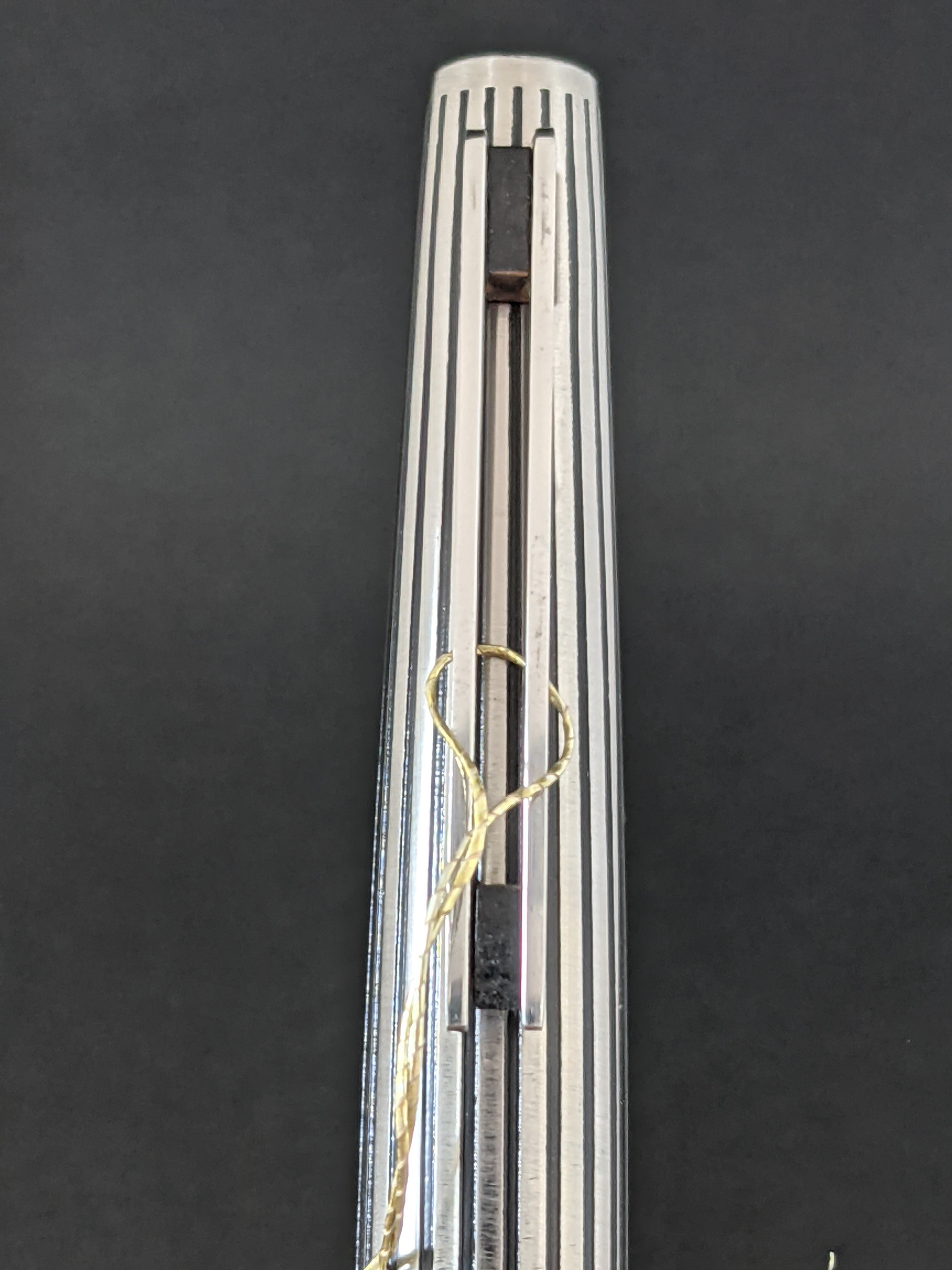 中古品 オーバーホール済み ペン先調整済み 字幅:ペン先表記「細軟」 細字 インク:カートリッジ式 軸の使用感:使用回数少ない 付属品:カートリッジ1本(ブルーブラック) 万年筆診断書 ========== 1970年代製造 生産終了品 当時定価:5,000円 ペン先18金ホワイトゴールド(ペン先表記「18KWG」)