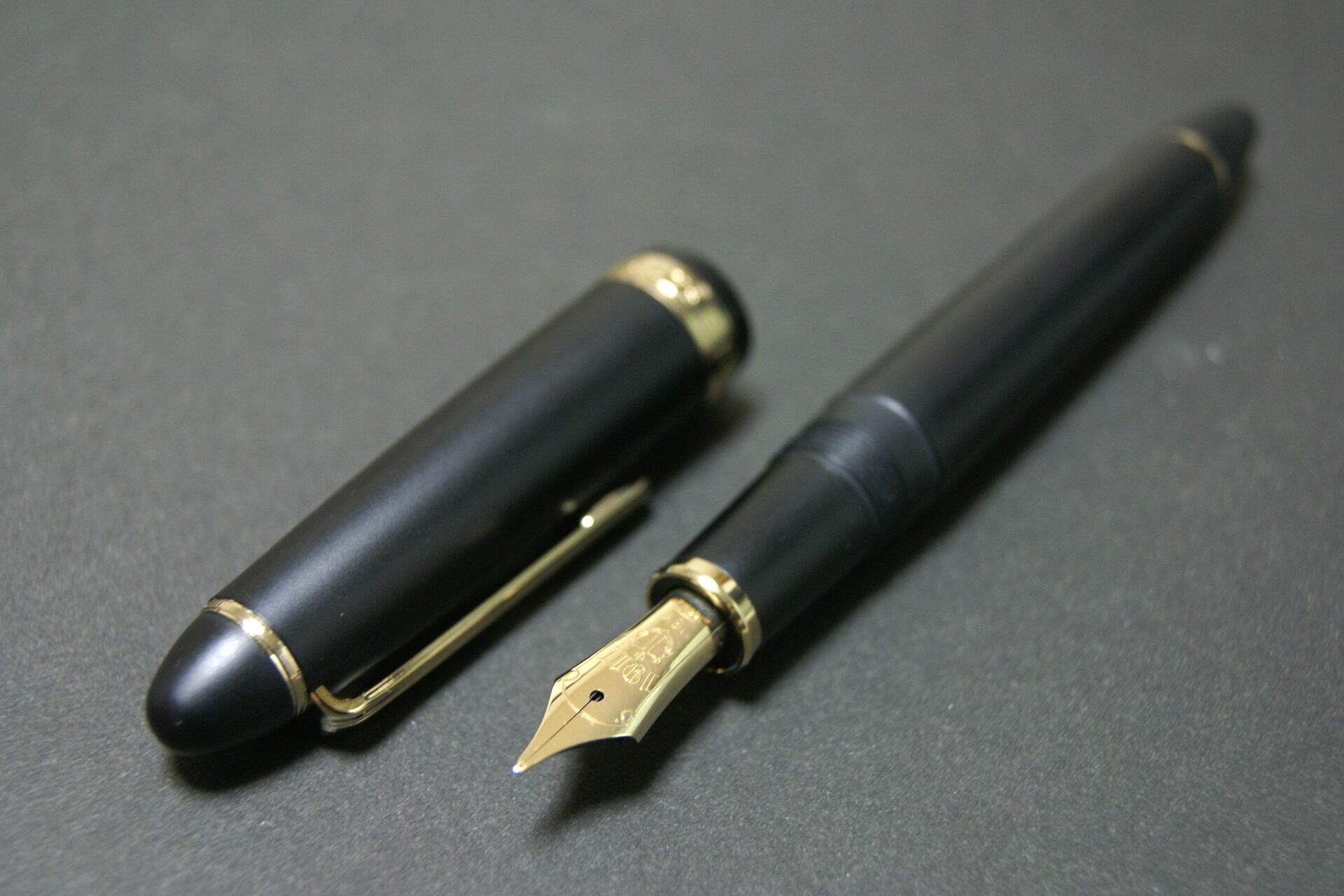 中古品(未使用品) オーバーホール済み ペン先調整済み 字幅:ペン先表記「H-B」 太字 インク:カートリッジ式 コンバータ式 軸の使用感:新品同様 付属品:カートリッジ1本(ブルーブラック) 万年筆診断書 ========== 旧軸デザイン ペン先18金