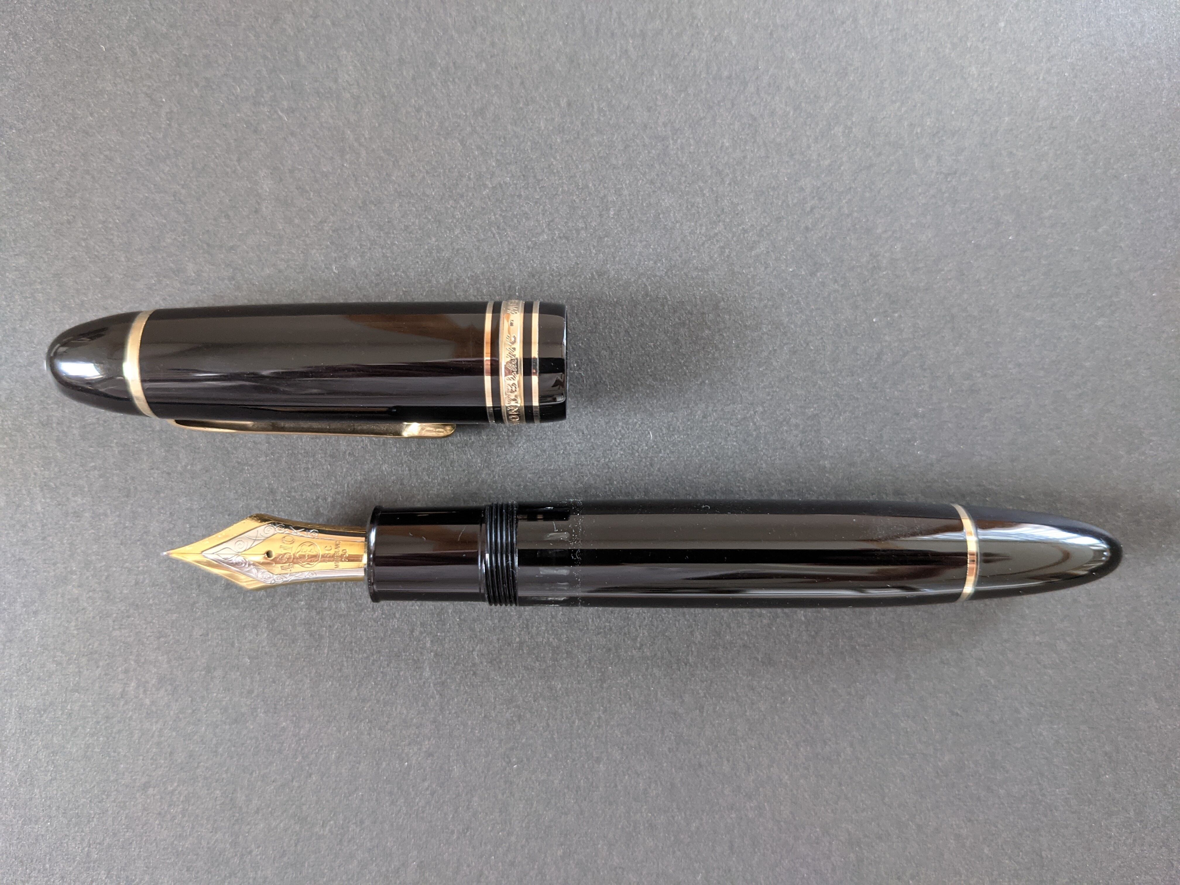 中古品 オーバーホール済み ペン先調整済み 字幅:極細字 インク:吸入式 軸の使用感:使用回数少ない 付属品:万年筆診断書 ========== 1970年代製造 ペン先18金(ペン先表記「18C」) ペン芯エボナイト 溝、段差なし 吸入良好