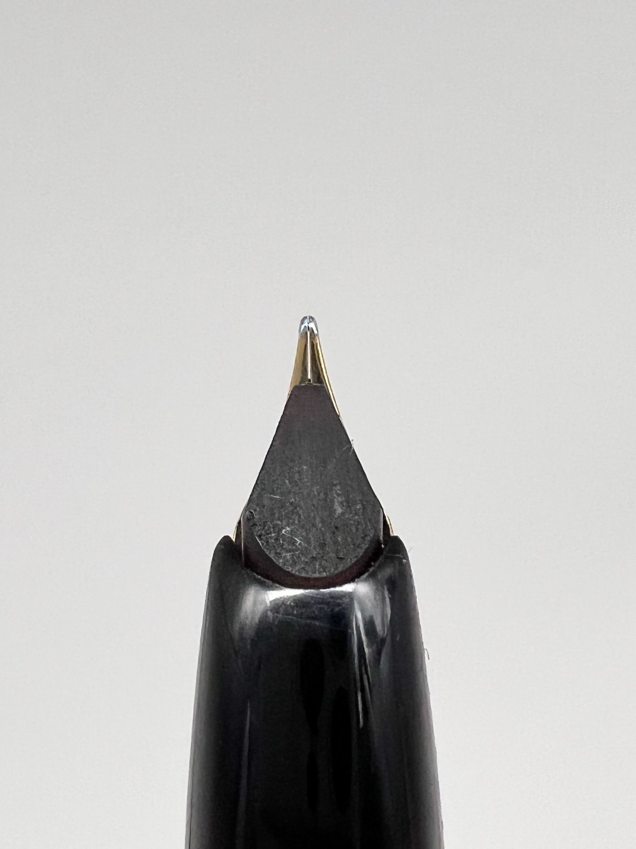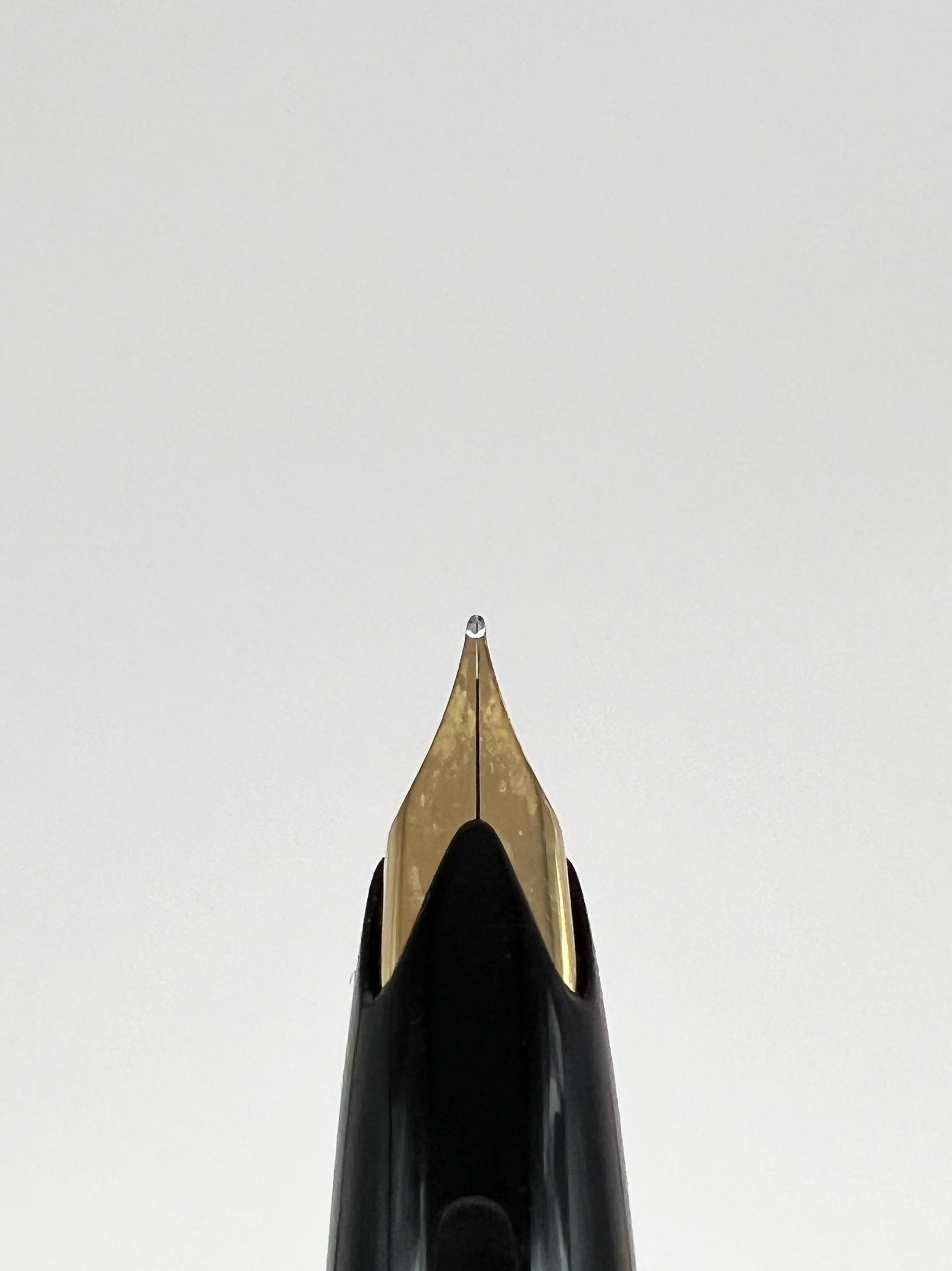 中古品 オーバーホール済み ペン先調整済み 字幅:細字 インク:吸入式 軸の使用感:新品同様 付属品:万年筆診断書 ========== 1960年代製造 生産終了品 ペン先18金 吸入良好 軸色:黒