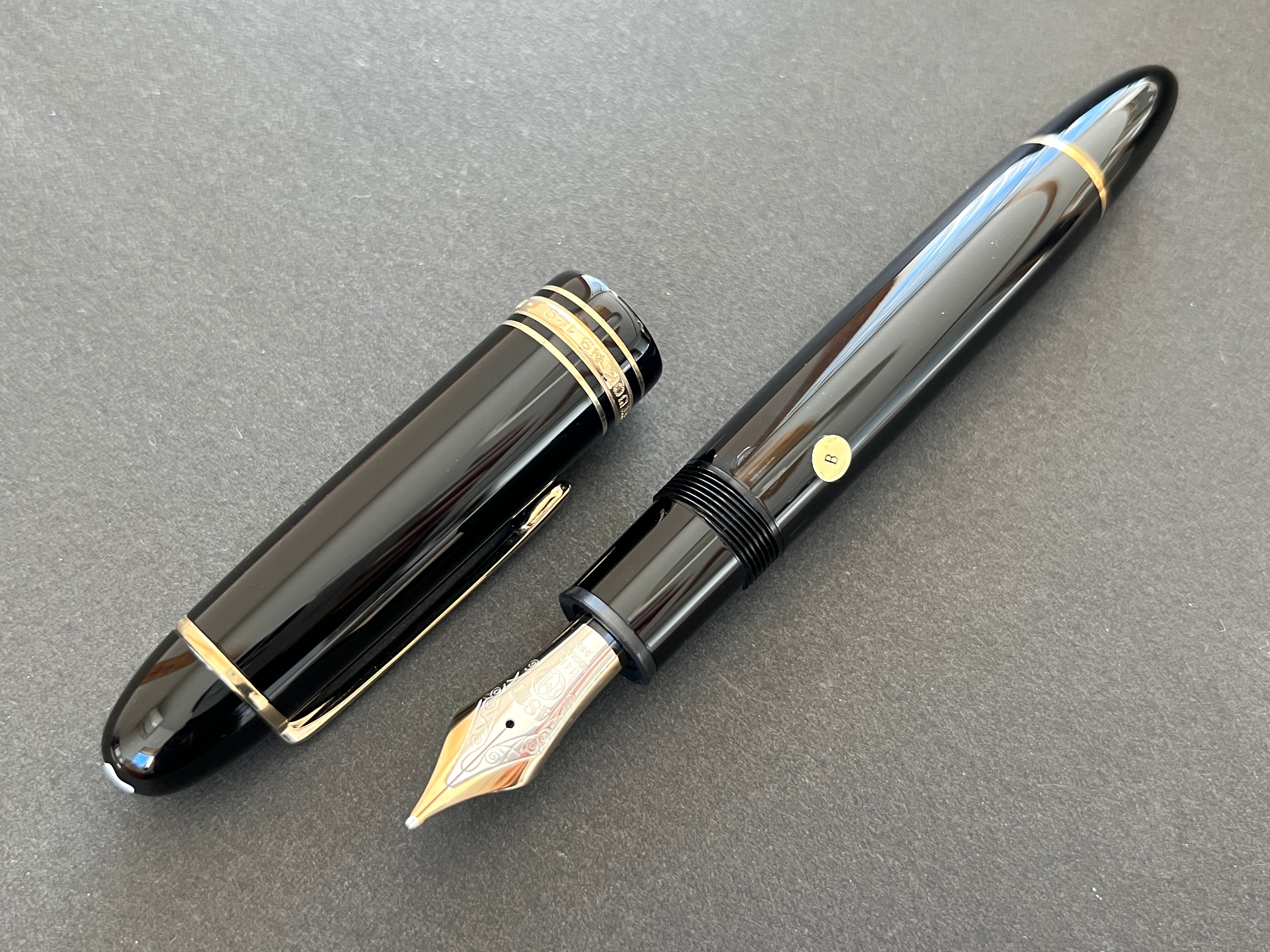 中古品 オーバーホール済み ペン先調整済み 字幅:ペン先表記「B」 太字 インク:吸入式 軸の使用感:新品同様 付属品:ケース 説明書 万年筆診断書 ========== 1980年代製造 ペン先14金(ペン先表記「14K」) ペン芯エボナイト 溝なし、段差あり 吸入良好
