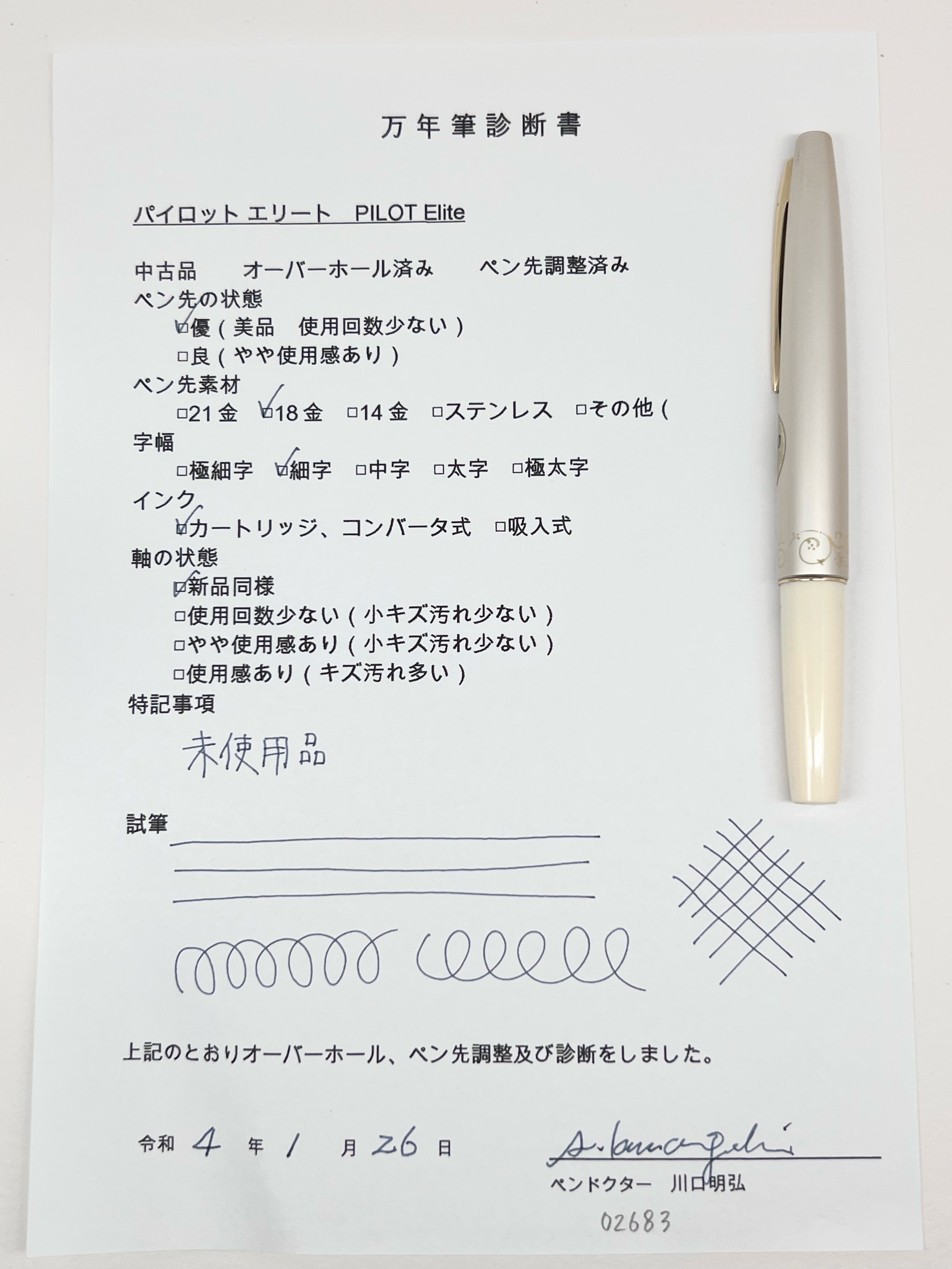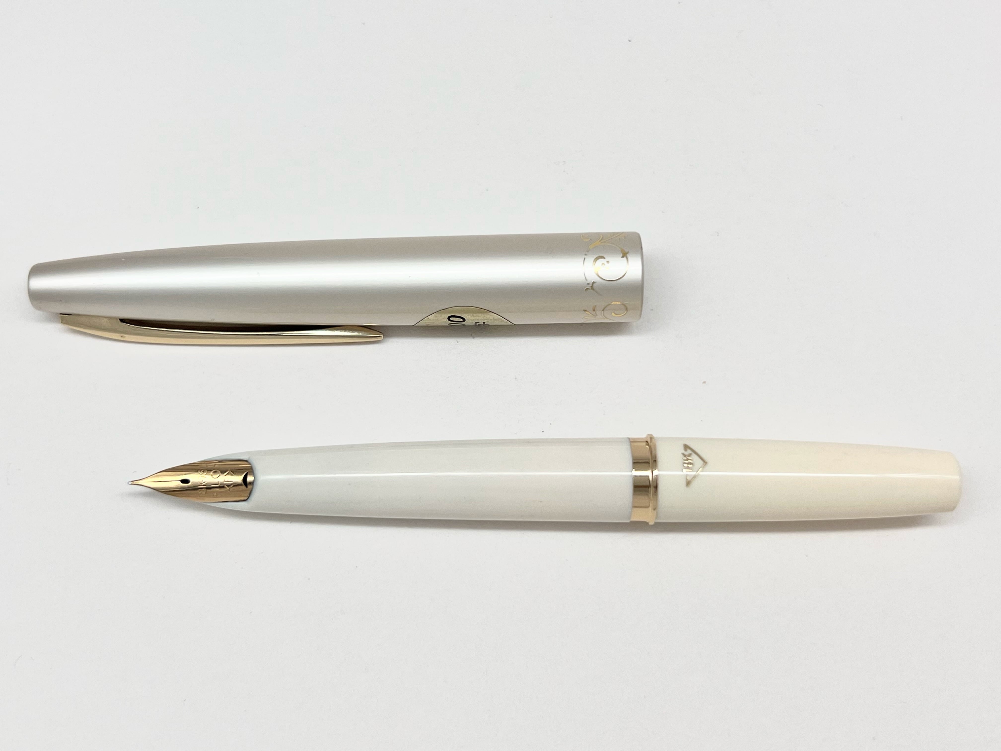 中古品(未使用品) オーバーホール済み ペン先調整済み 字幅:ペン先表記「細字」 インク:カートリッジ式 軸の使用感:新品同様 付属品:カートリッジ1本(ブルーブラック) 万年筆診断書 ========== 1970年代製造 生産終了品 当時定価:2,500円 ペン先18金