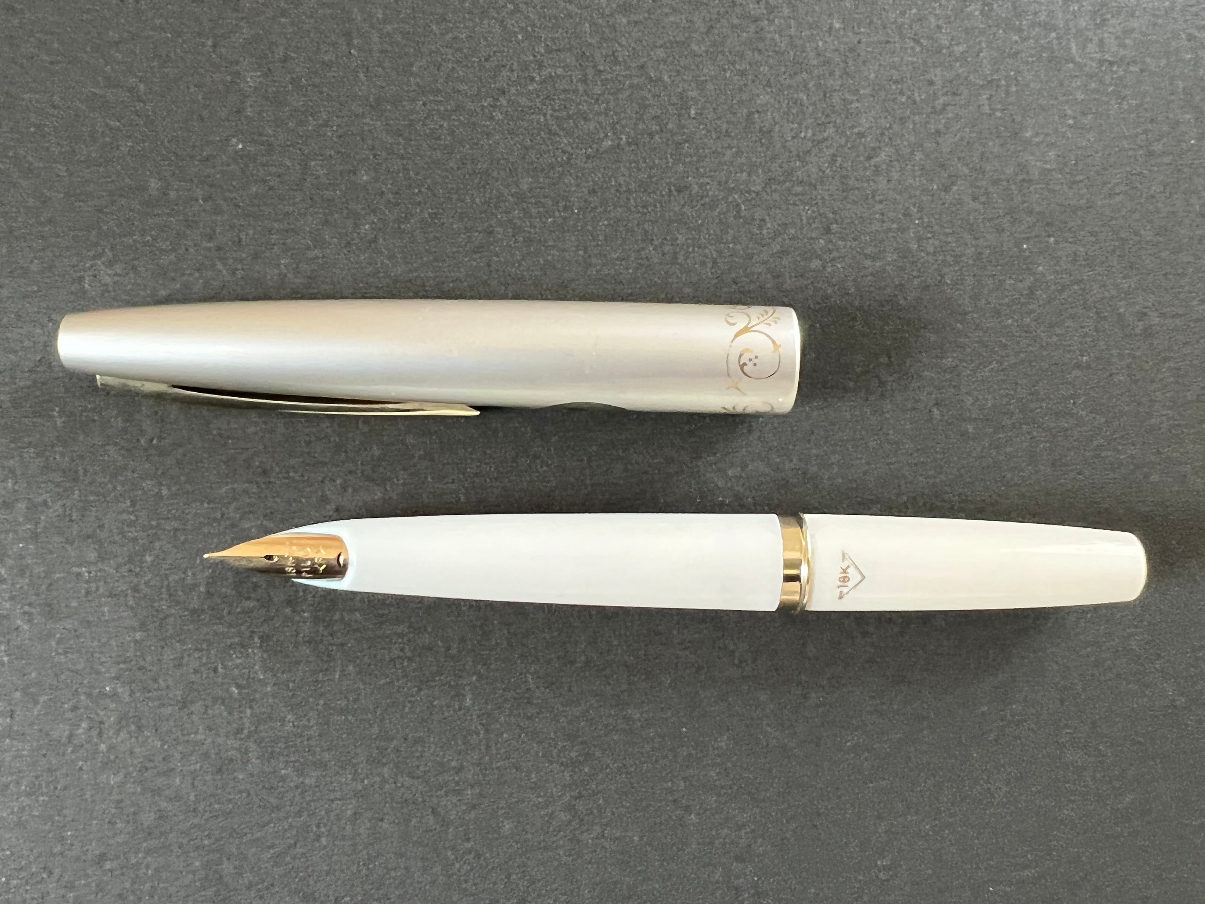中古品(未使用品) オーバーホール済み ペン先調整済み 字幅:ペン先表記「細字」 インク:カートリッジ式 軸の使用感:新品同様 付属品:カートリッジ1本(ブルーブラック) 万年筆診断書 ========== 1970年代製造 生産終了品 当時定価:2,500円 ペン先18金