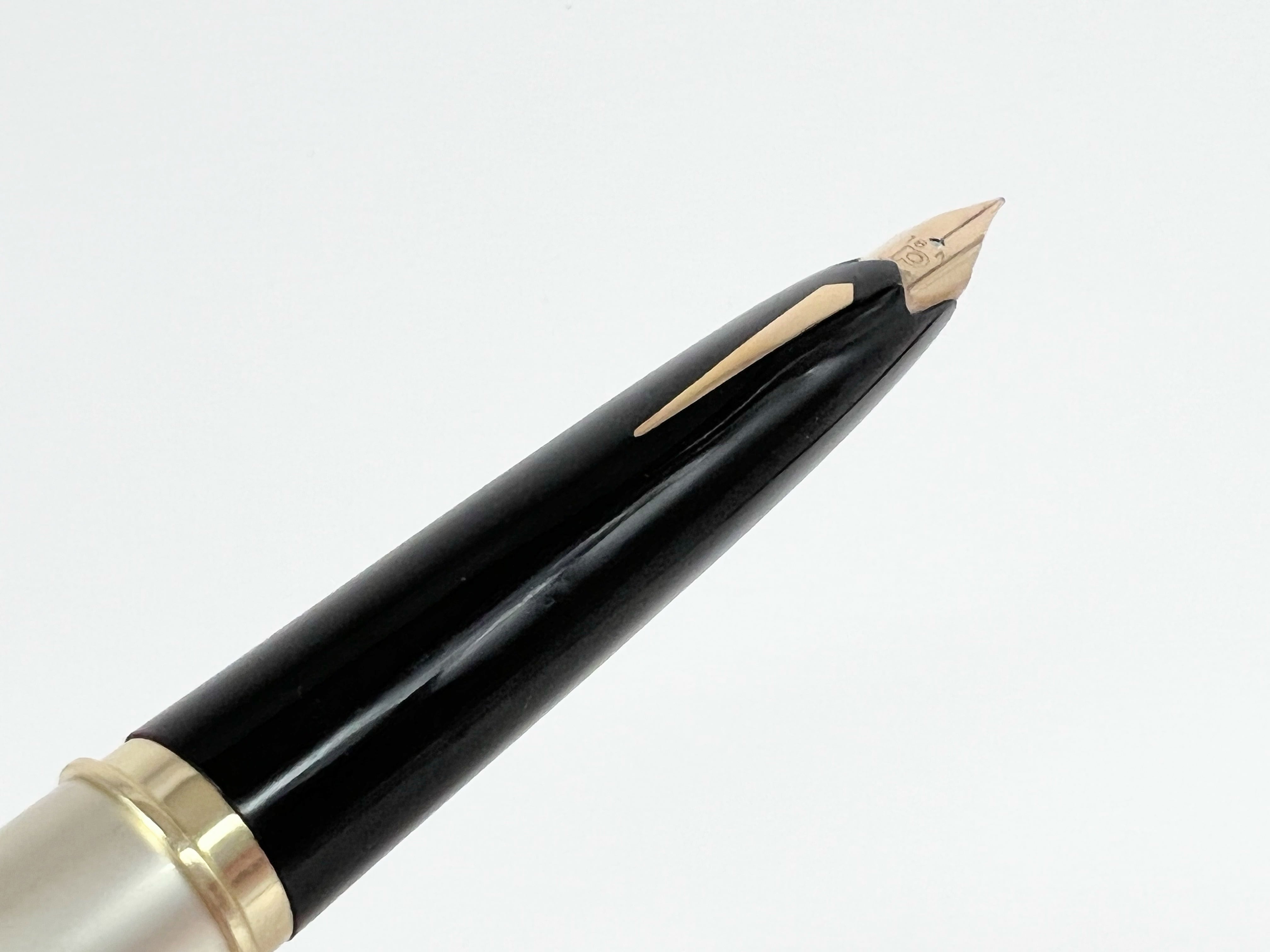 中古品(未使用品) オーバーホール済み ペン先調整済み 字幅:ペン先表記「細軟」 細字 インク:カートリッジ式 軸の使用感:新品同様 付属品:カートリッジ1本(ブルーブラック) 万年筆診断書 ========== 1960年代製造 生産終了品 当時定価:4,000円 ペン先18金