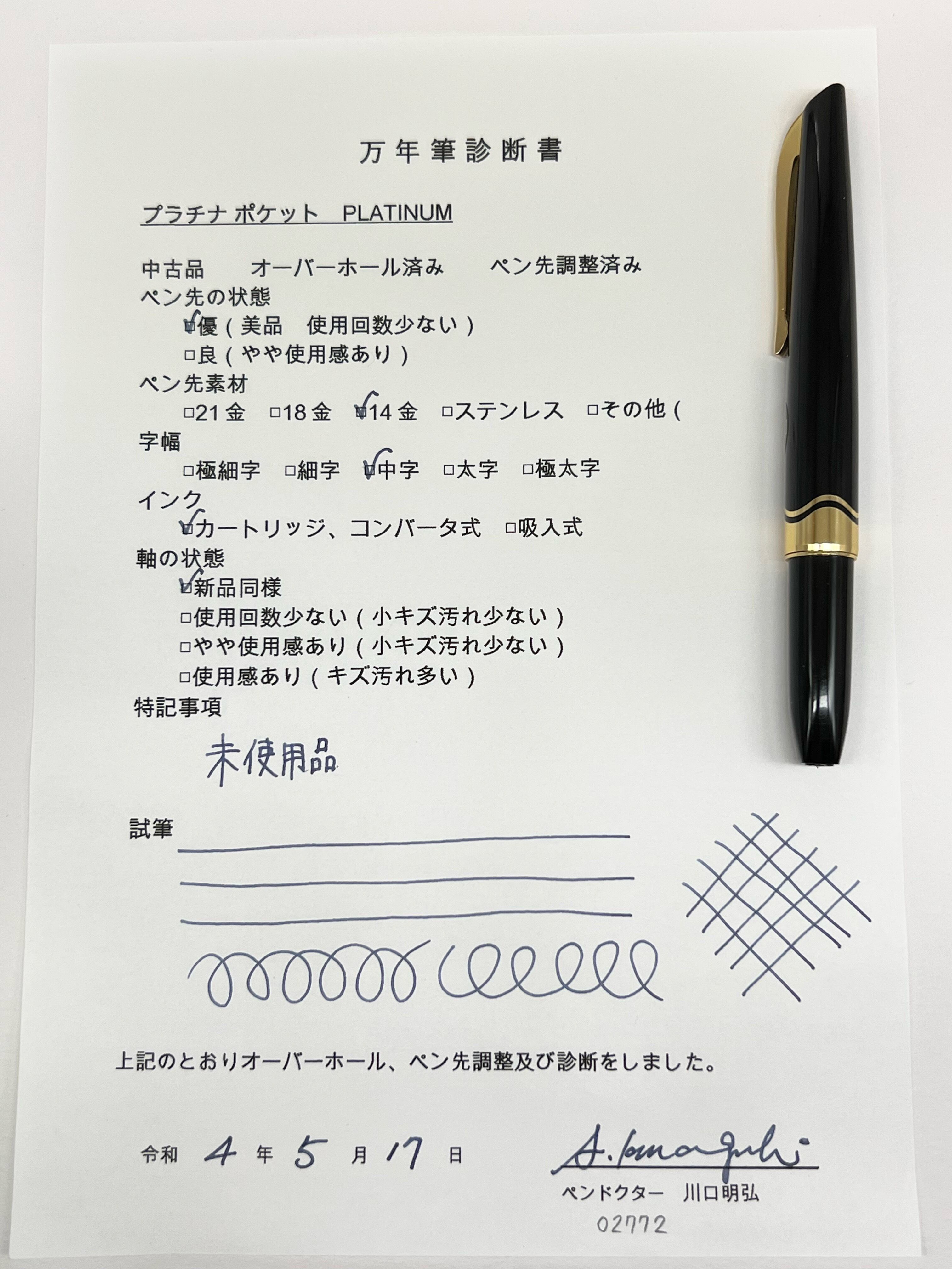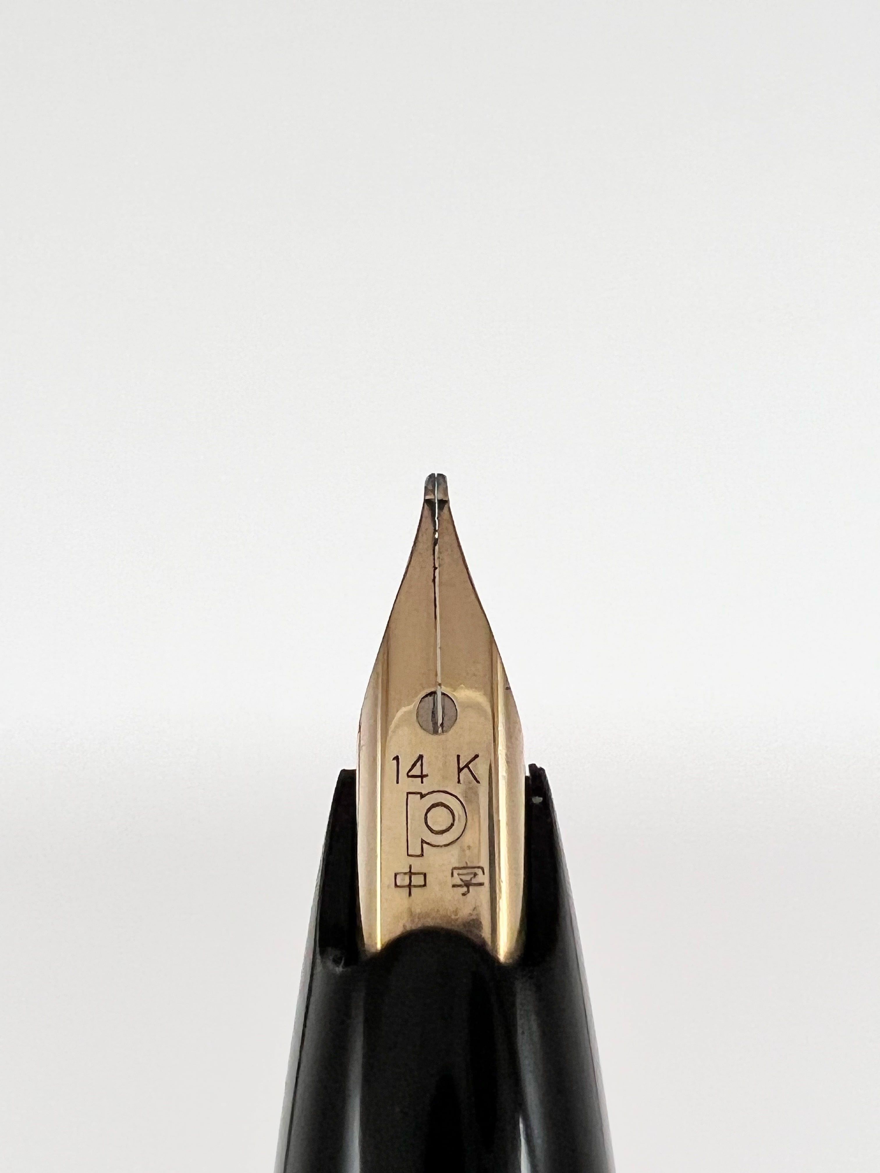 中古品(未使用品) オーバーホール済み ペン先調整済み 字幅:ペン先表記「中字」 インク:カートリッジ式 軸の使用感:新品同様 付属品:カートリッジ1本(ブルーブラック) 万年筆診断書 ========== 1960年代製造 生産終了品 当時定価:2,000円 ペン先14金
