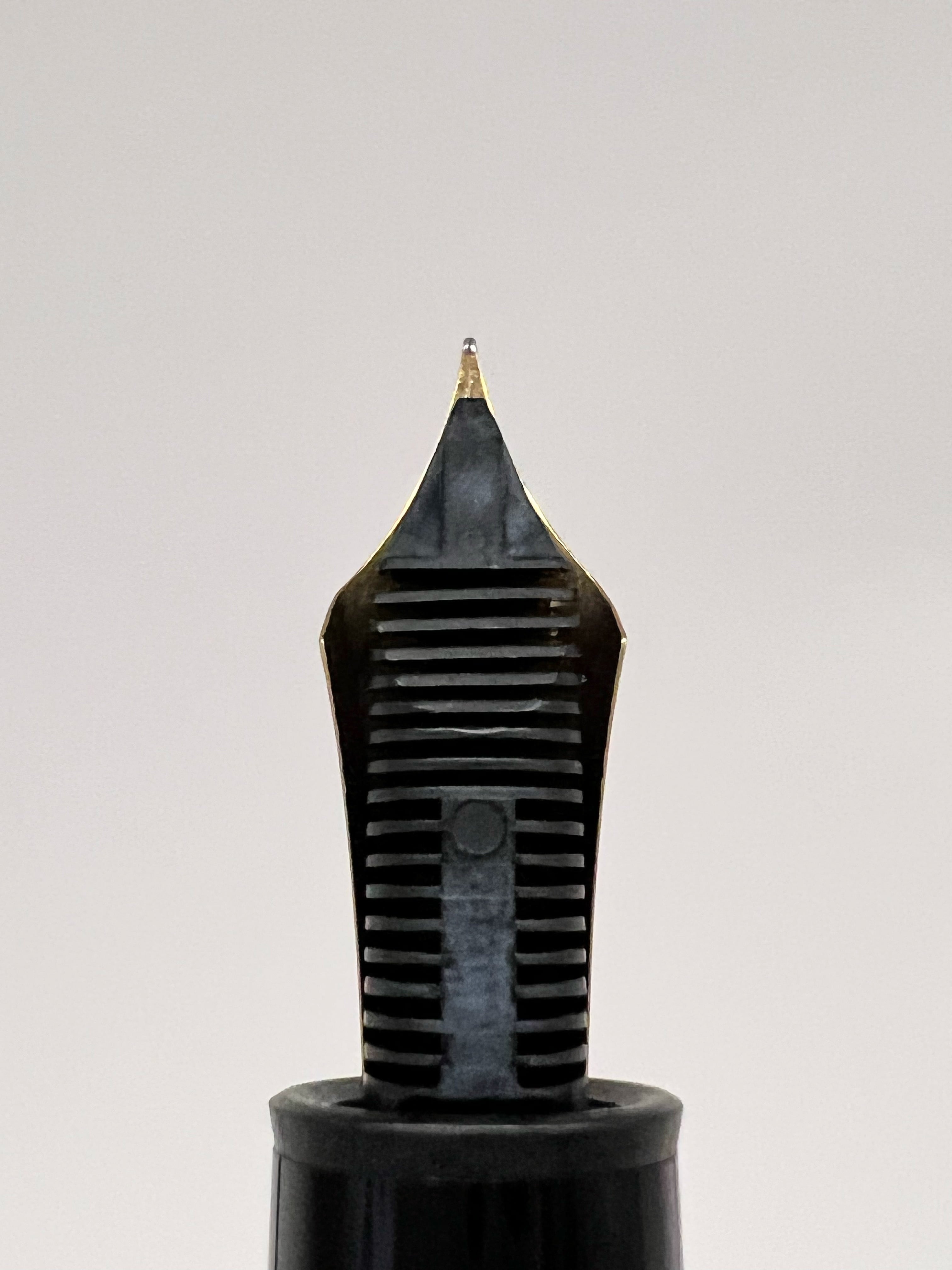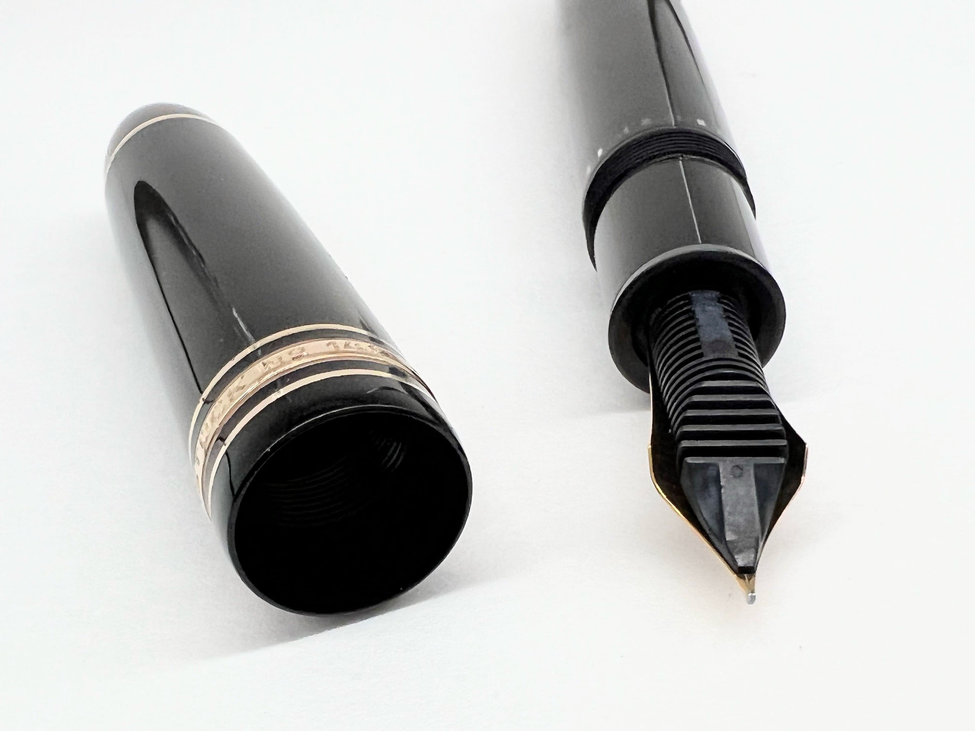 中古品 オーバーホール済み ペン先調整済み 字幅:細字 インク:吸入式 軸の使用感:使用回数少ない 付属品:万年筆診断書 ========== 1990年代製造 ペン先18金(ペン先表記「18K」) ペン芯プラスチック 吸入良好