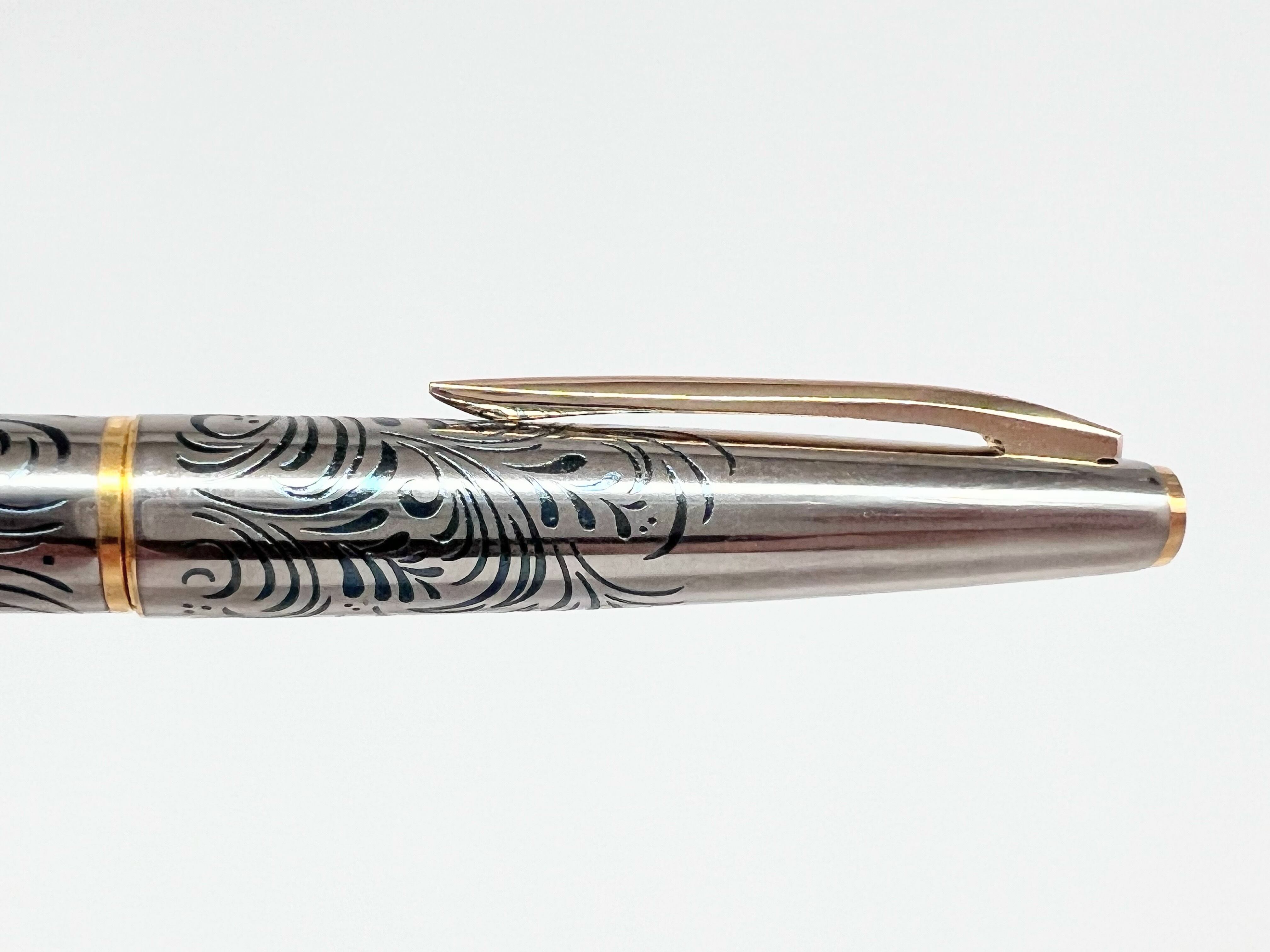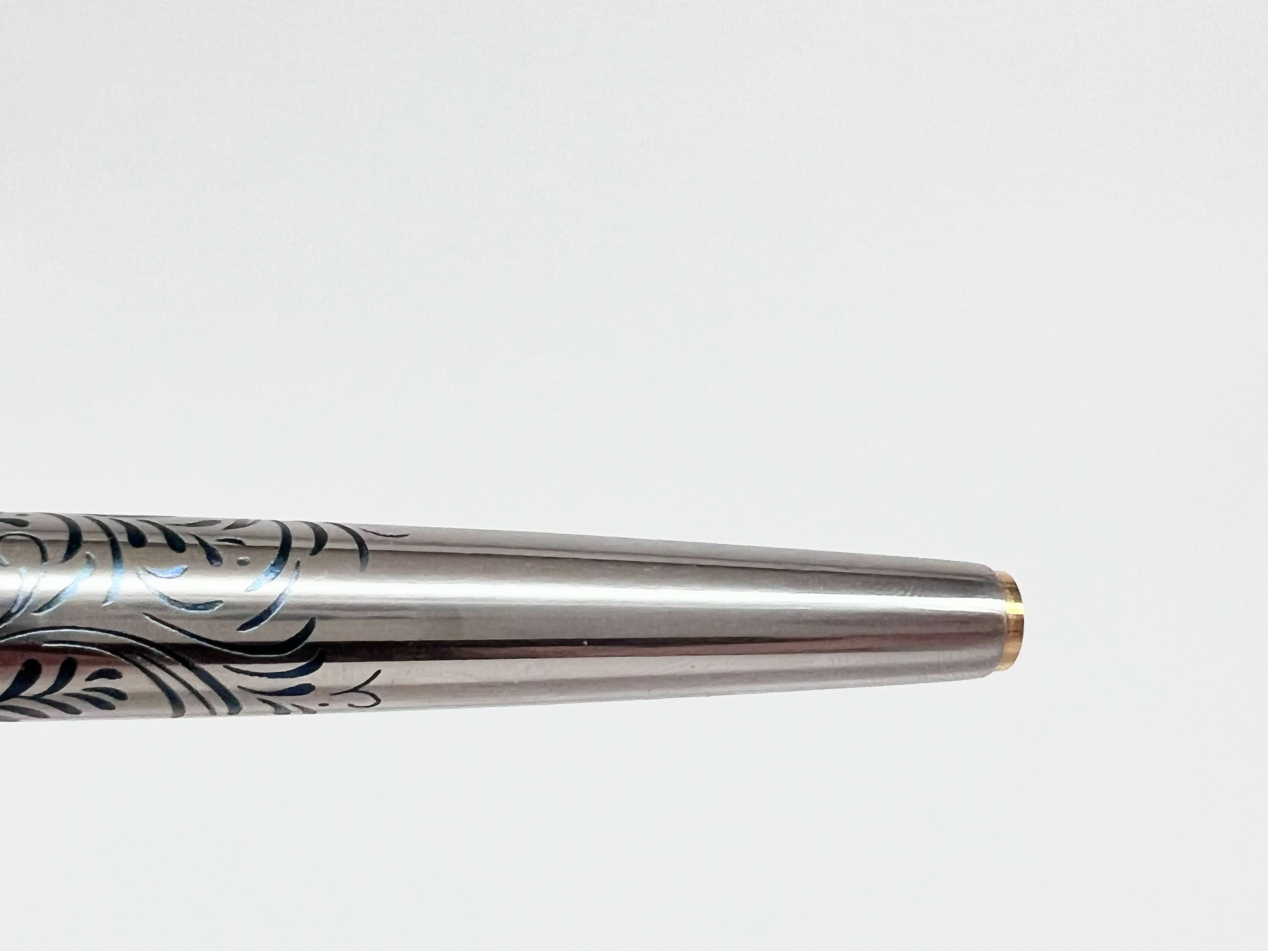 中古品(未使用品) オーバーホール済み ペン先調整済み 字幅:ペン先表記「F」 細字 インク:カートリッジ式 コンバータ式 軸の使用感:新品同様 付属品:カートリッジ1本(ブルーブラック) 万年筆診断書 ========== 1970年代製造 生産終了品 当時定価:8,000円 ペン先18金 軸:ステンレス軸(彫刻、着色)