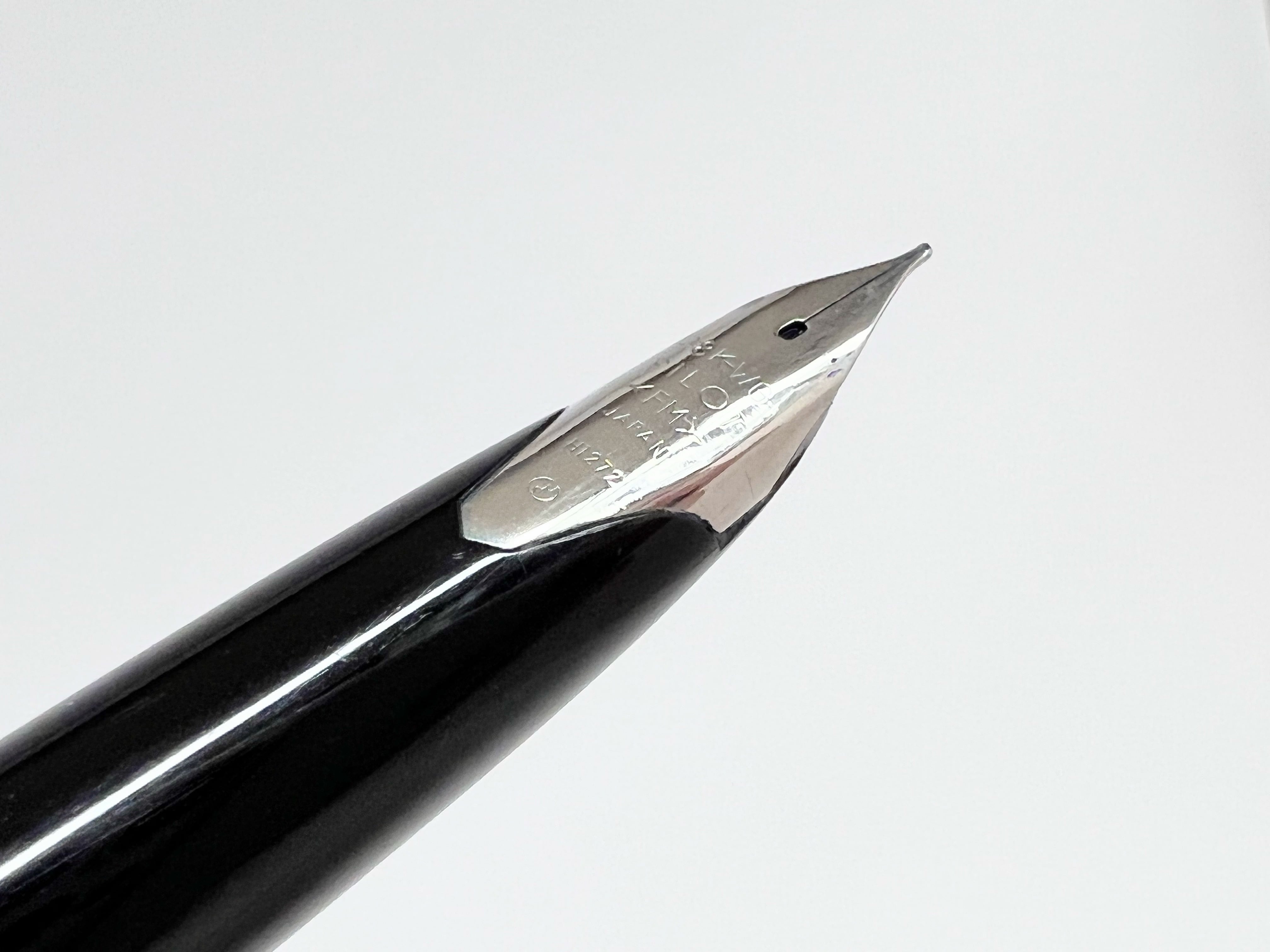 中古品 オーバーホール済み ペン先調整済み 字幅:ペン先表記「FM」 中細字 インク:カートリッジ式 軸の使用感:使用回数少ない 付属品:カートリッジ1本(ブルーブラック) 万年筆診断書 ========== 1972年12月製造 「H1272」 ペン先18金ホワイトゴールド「18K-WG」 キャップ:スターリングシルバー 〄