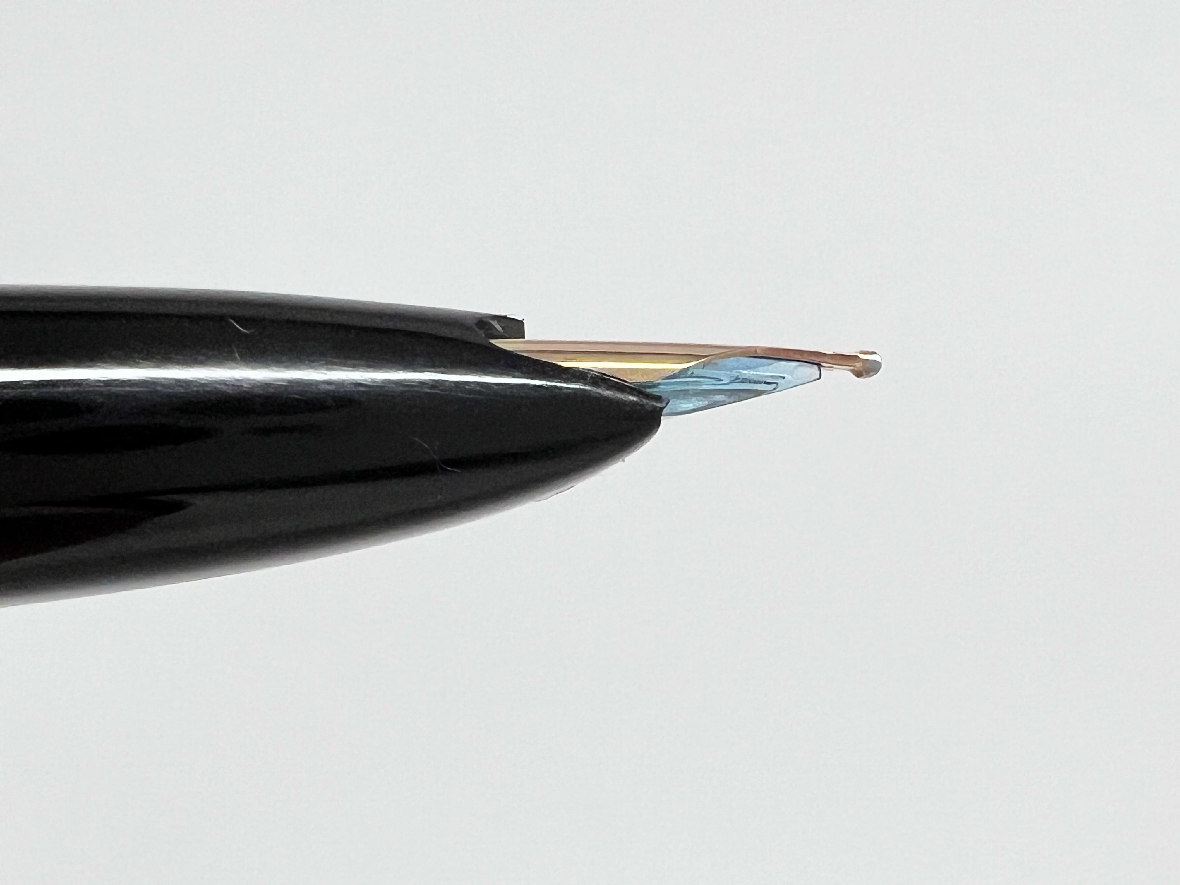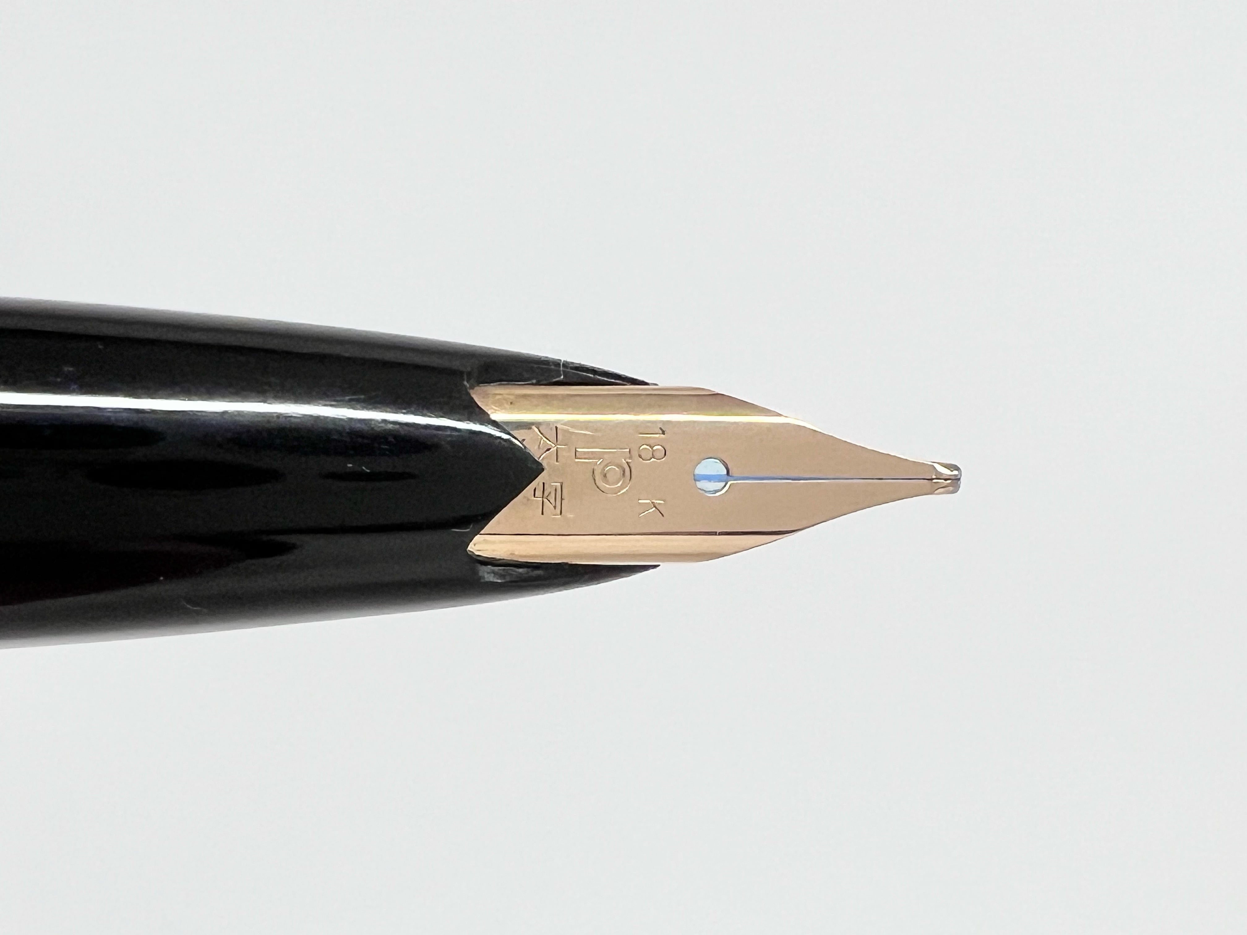 中古品(未使用品) オーバーホール済み ペン先調整済み 字幅:ペン先表記「太字」 インク:カートリッジ式 軸の使用感:新品同様 付属品:カートリッジ1本(ブルーブラック) 万年筆診断書 ========== 1960年代製造 生産終了品 当時定価:2,000円 ペン先18金
