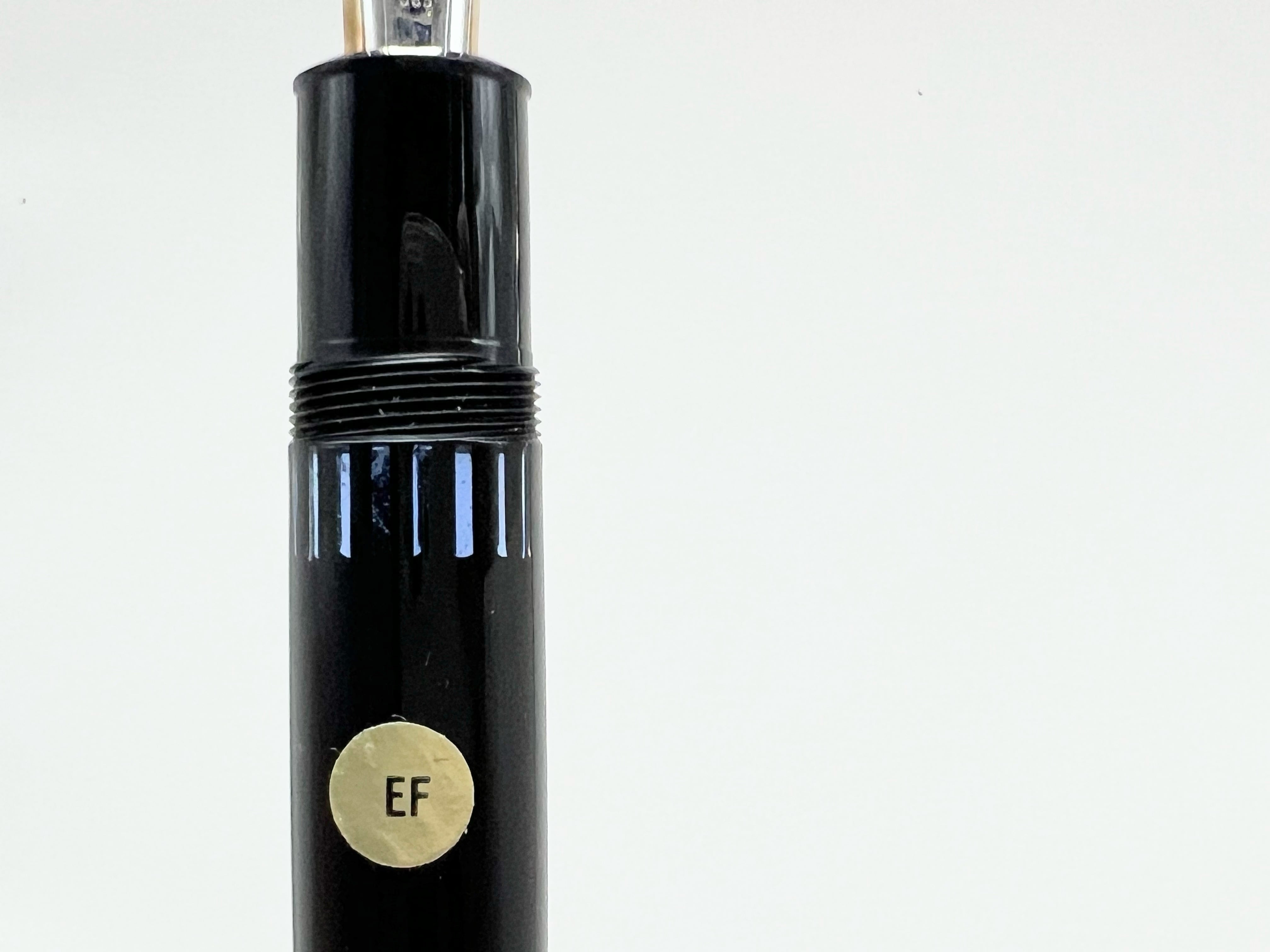 中古品 オーバーホール済み ペン先調整済み 字幅:ペン先表記「EF」 極細字 インク:吸入式 軸の使用感:使用回数少ない 付属品:ケース 万年筆診断書 ========== 1970年代製造 生産終了品 ペン先14金(ペン先表記「14C」) ペン芯エボナイト 溝なし、段差なし 吸入良好