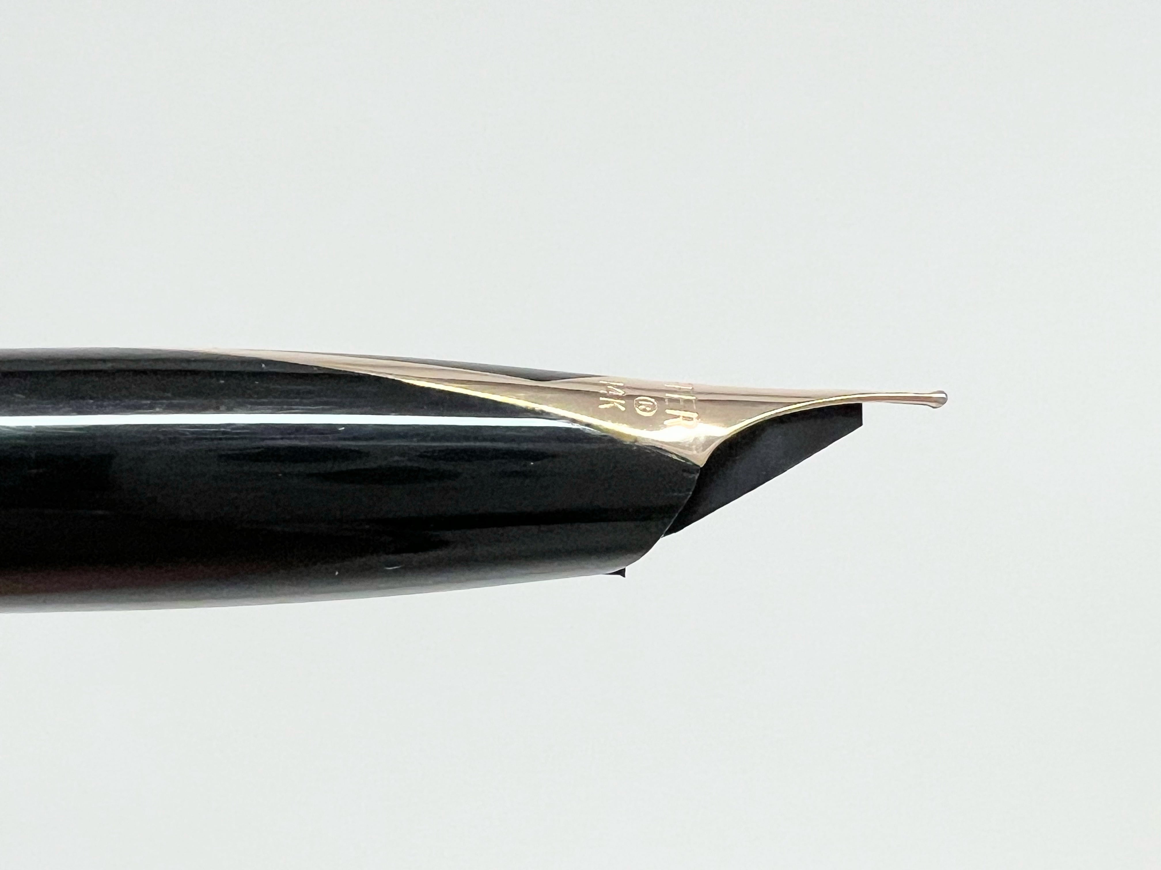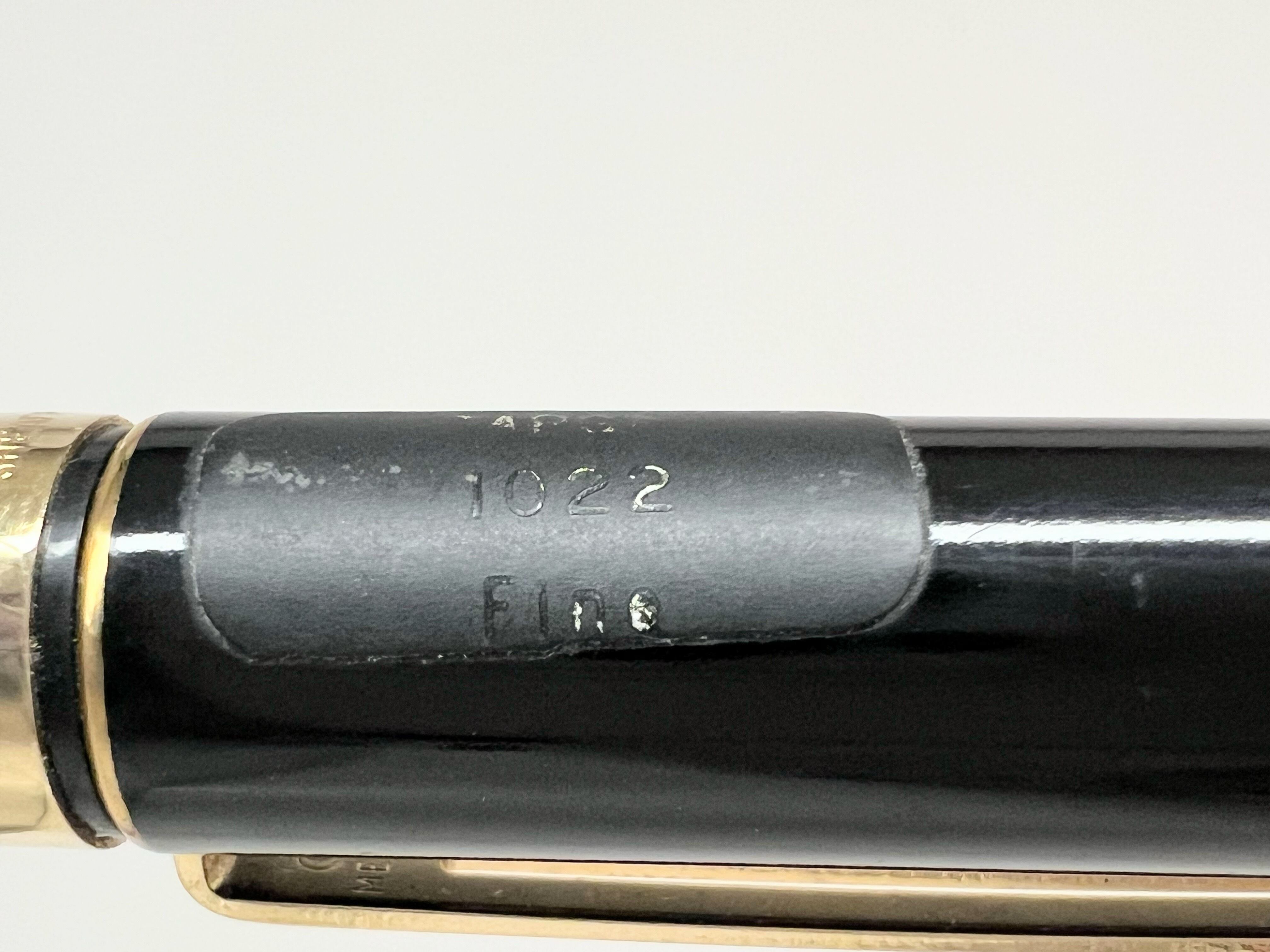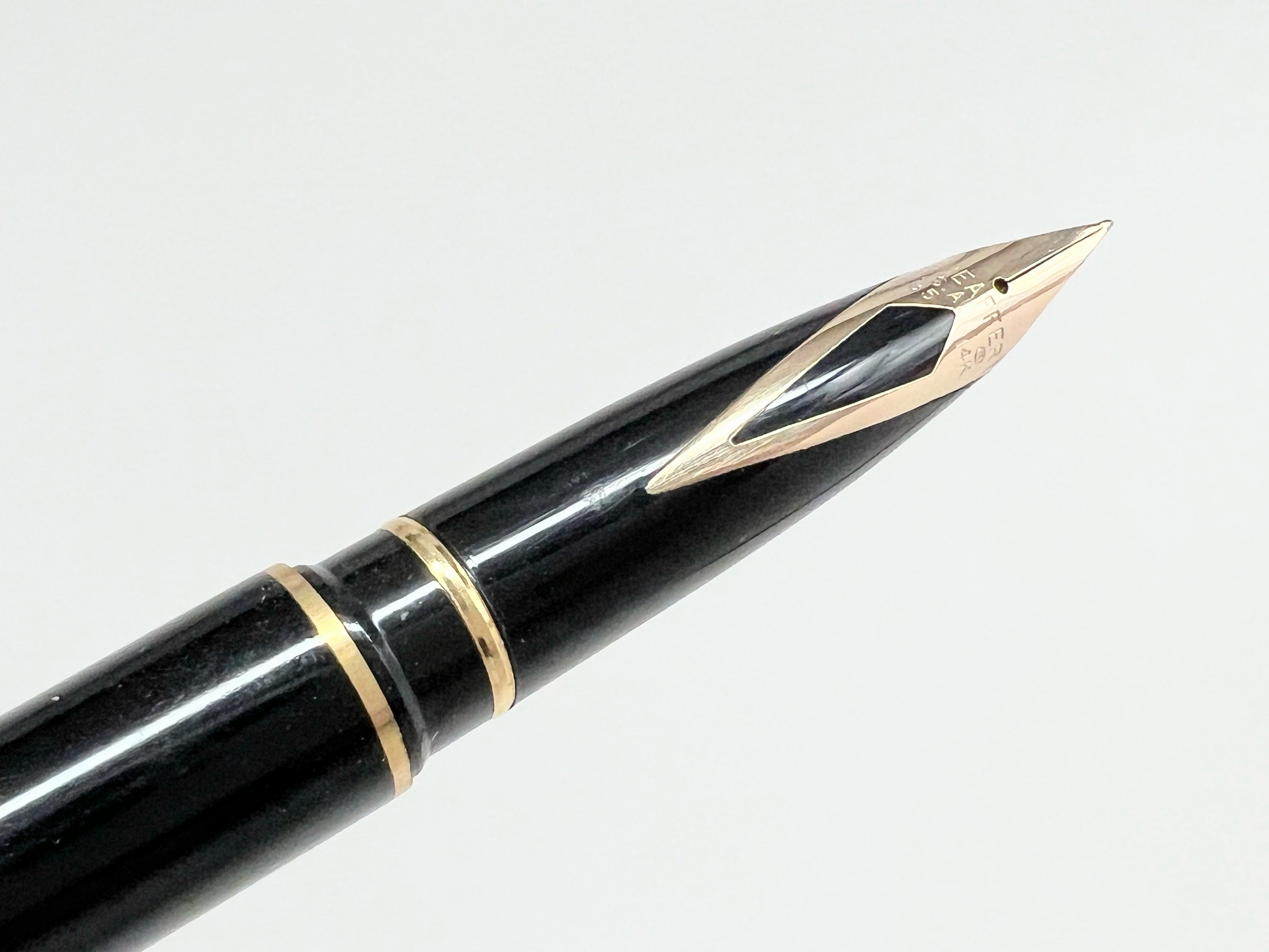 中古品 オーバーホール済み ペン先調整済み 字幅:ペン先表記「F」 細字 インク:カートリッジ式 コンバータ式 軸の使用感:使用回数少ない 付属品:カートリッジ1本(ブルー) 万年筆診断書 ========== 1980年製造 生産終了品 ペン先14金(ペン先表記「14K」) U.S.A. 「TARGA 1022 FINE」 軸色:黒
