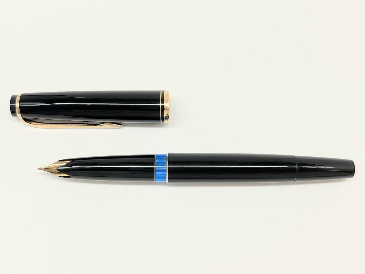 中古品 オーバーホール済み ペン先調整済み 字幅:細字 インク:吸入式 軸の使用感:使用回数少ない 付属品:プラスチックケース 使用説明書 万年筆診断書 ========== 1960年代製造 生産終了品 「No」表記あり ペン先14金 吸入良好 軸色:黒