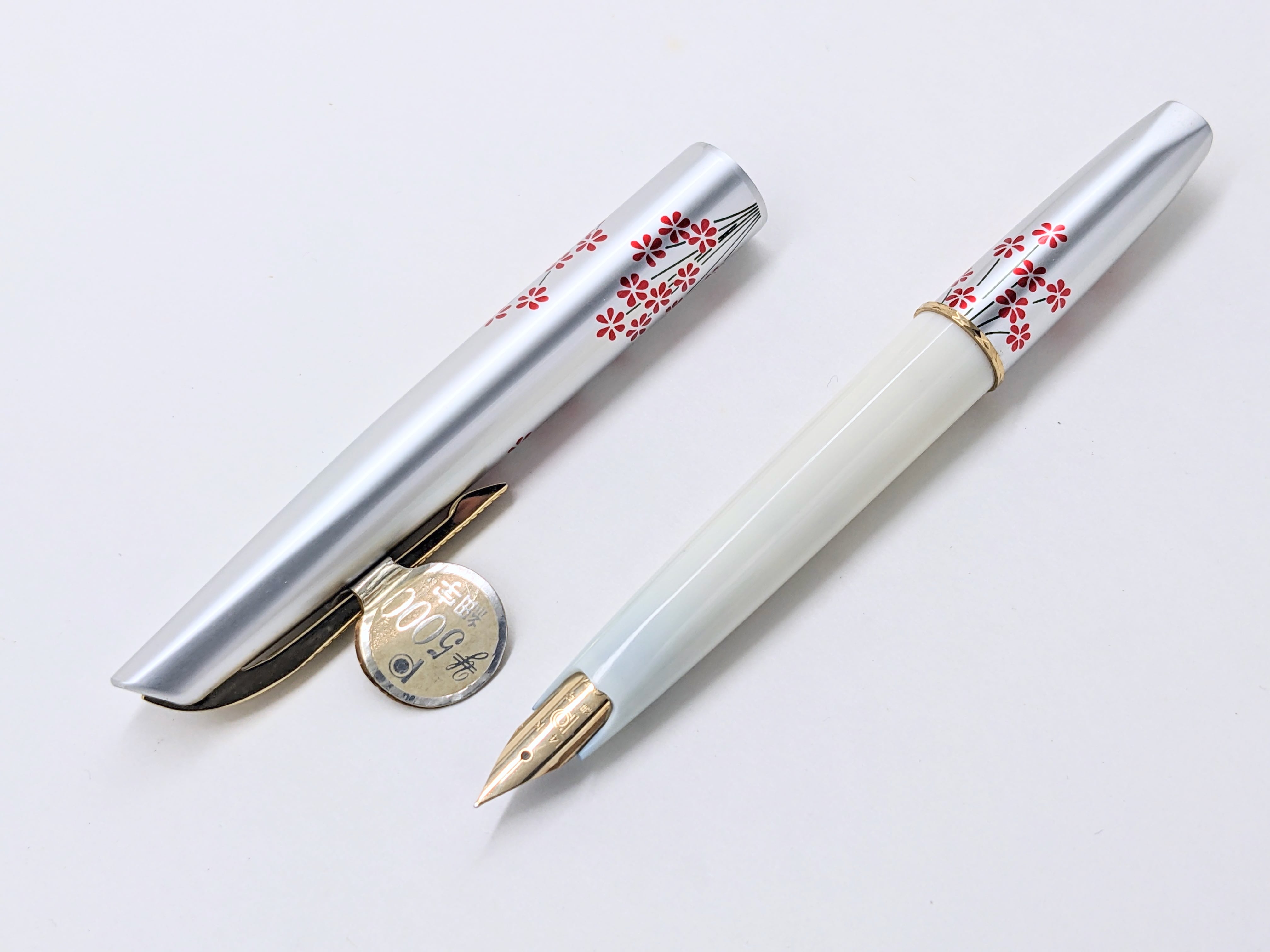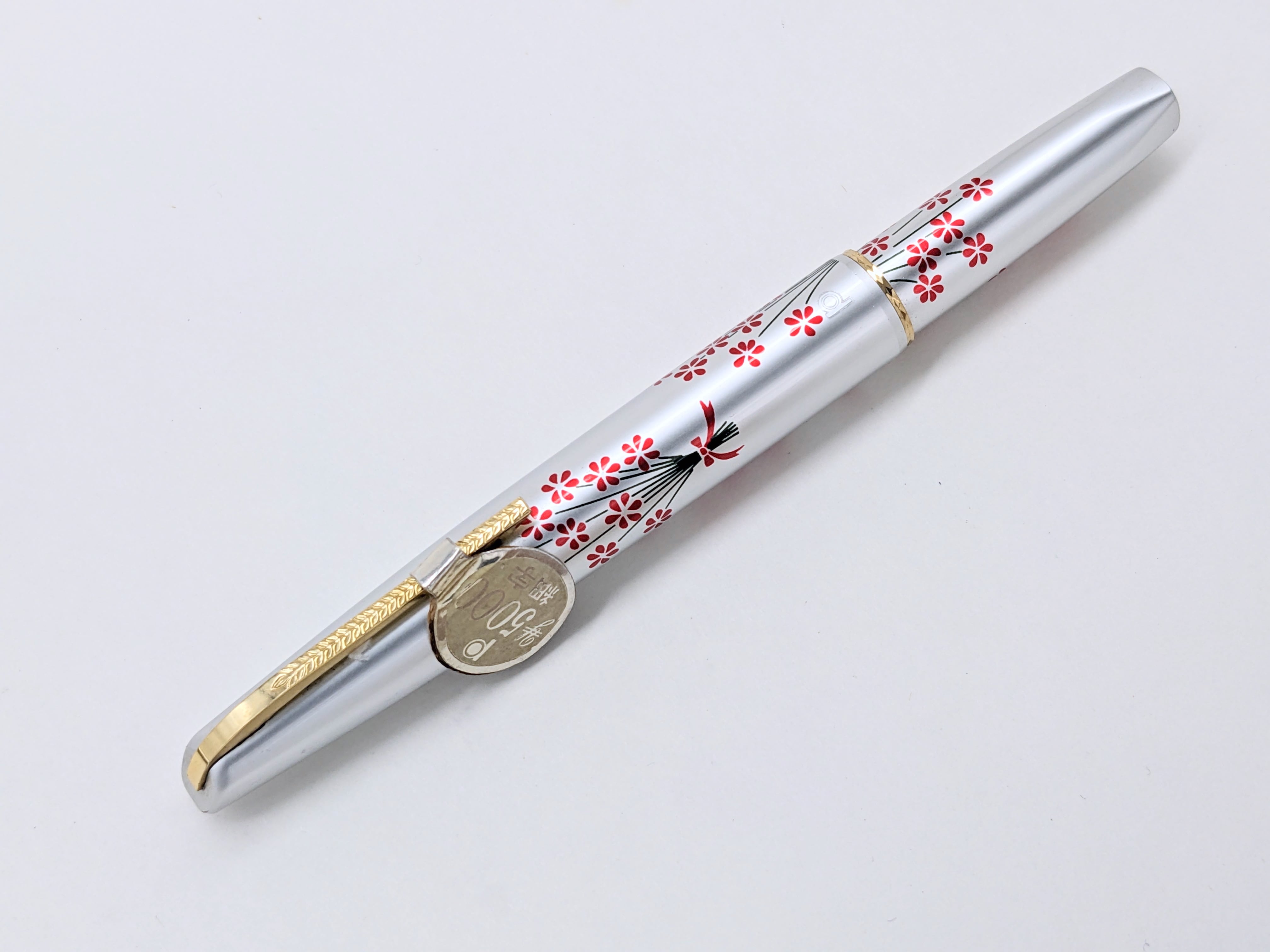中古品 オーバーホール済み ペン先調整済み 字幅:ペン先表記「細字」 インク:カートリッジ式 軸の使用感:使用回数少ない 付属品:カートリッジ1本(ブルーブラック) 万年筆診断書 ========== 1960年代製造 生産終了品 当時定価:5,000円 ペン先14金 軸、キャップ:アルミ