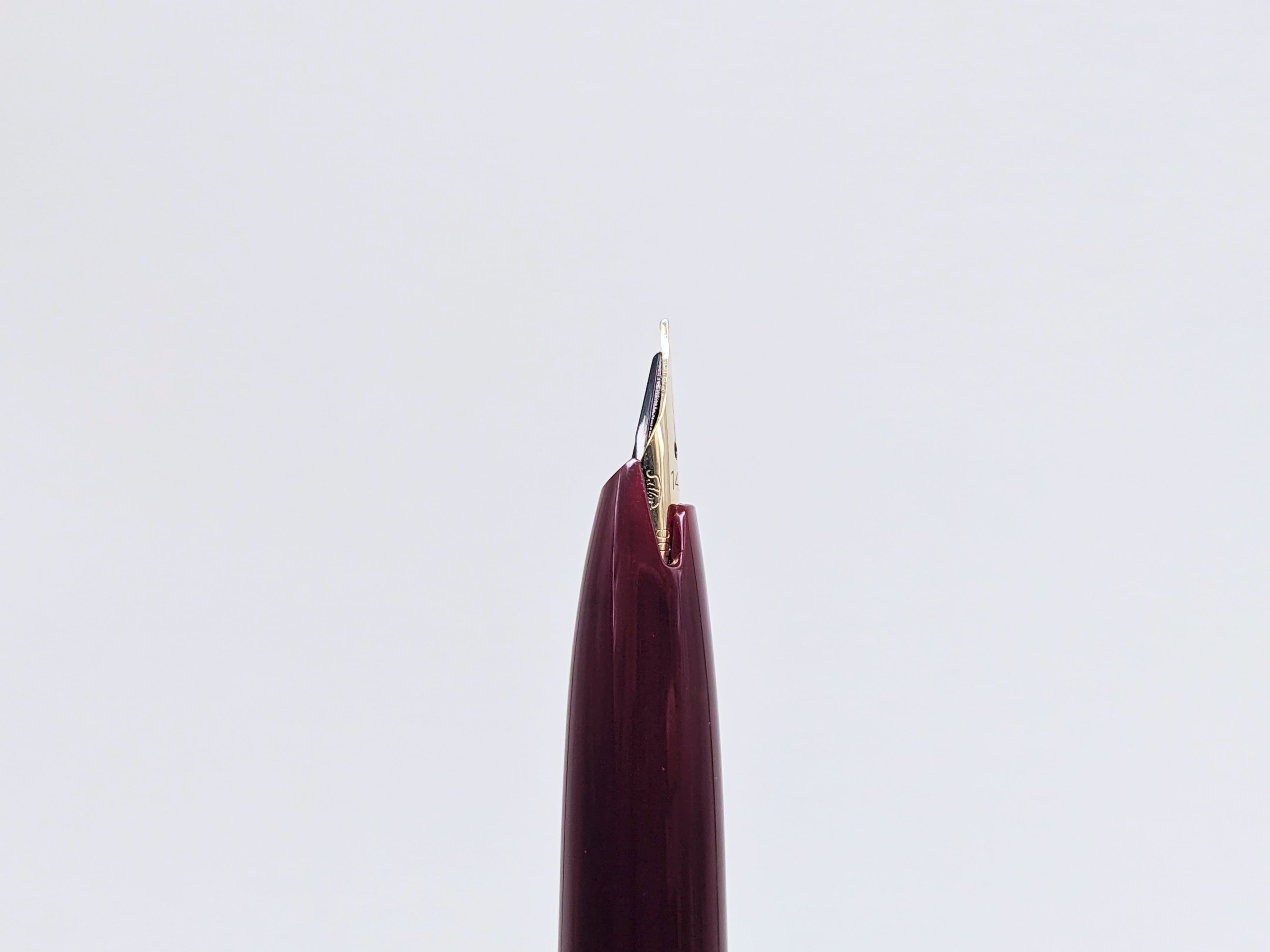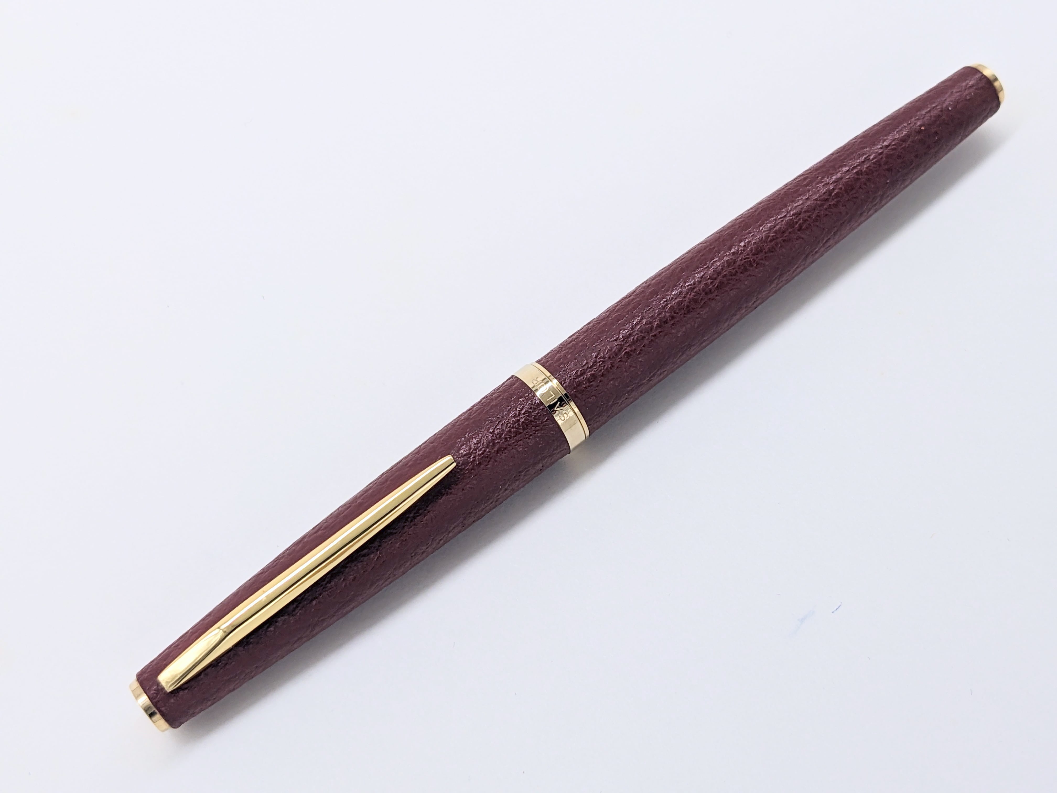 中古品 オーバーホール済み ペン先調整済み 字幅:ペン先表記「2」 細字 インク:カートリッジ式 コンバータ式 軸の使用感:使用回数少ない 付属品:オリジナル紙箱 *劣化しています。 カートリッジ1本(ブルーブラック) 万年筆診断書 ========== 1960年代製造 生産終了品 ペン先14金 軸:レザー巻き