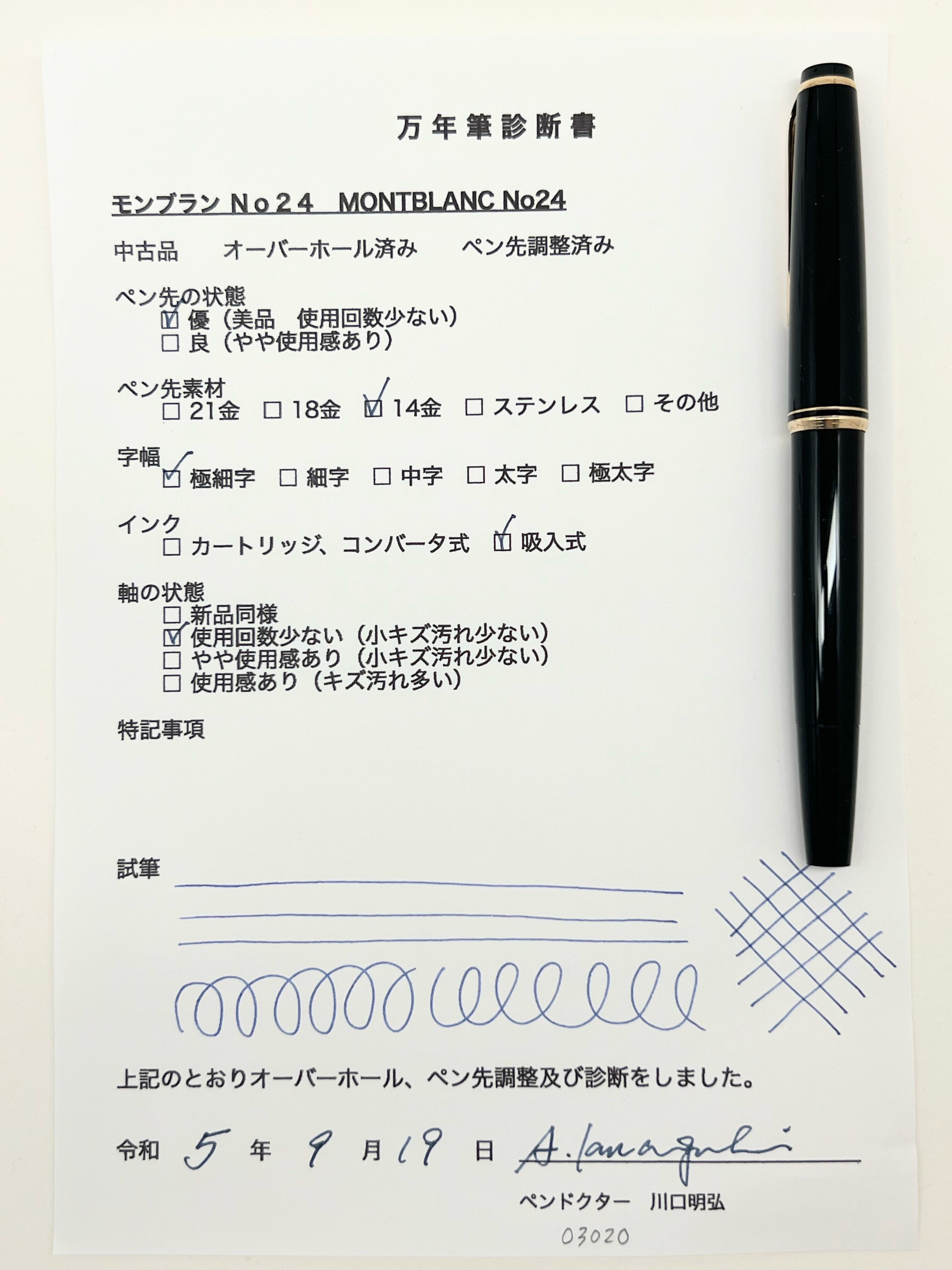 中古品 オーバーホール済み ペン先調整済み 字幅:極細字 *やや太めの極細字です。 インク:吸入式 軸の使用感:使用回数少ない 付属品:ケース オリジナル使用説明書 万年筆診断書 ========== 1960年代製造 生産終了品 「No」表記あり ペン先14金 吸入良好 軸色:黒