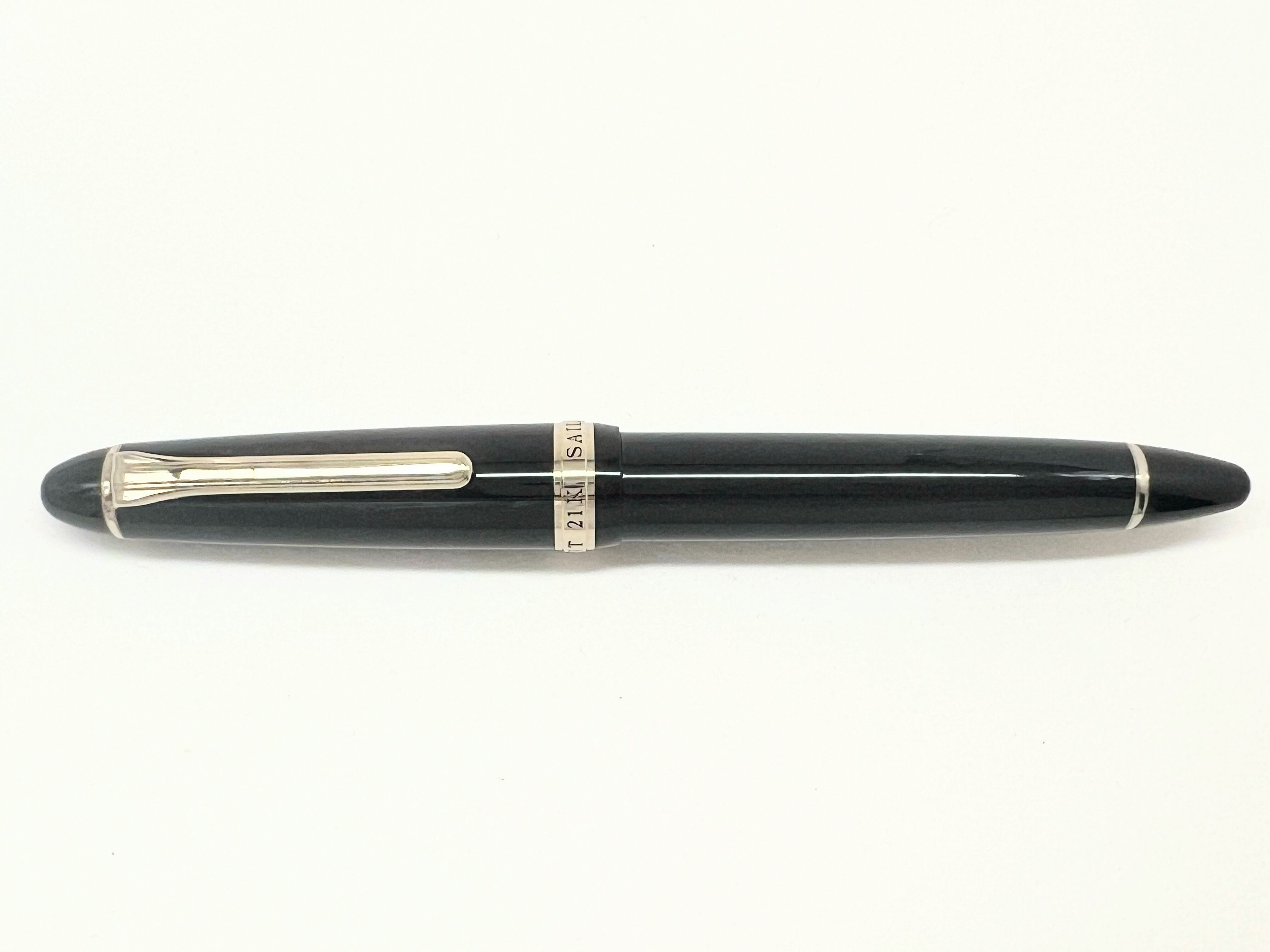 中古品 オーバーホール済み ペン先調整済み 字幅:ペン先表記「H-F」 細字 インク:カートリッジ式 コンバータ式 軸の使用感:使用回数少ない 付属品:カートリッジ1本(ブルーブラック) 万年筆診断書 ========== 1990年代製造 生産終了品 ペン先21金(ペン先表記「21K」) 本体サイズ:φ17×135mm 旧軸デザイン