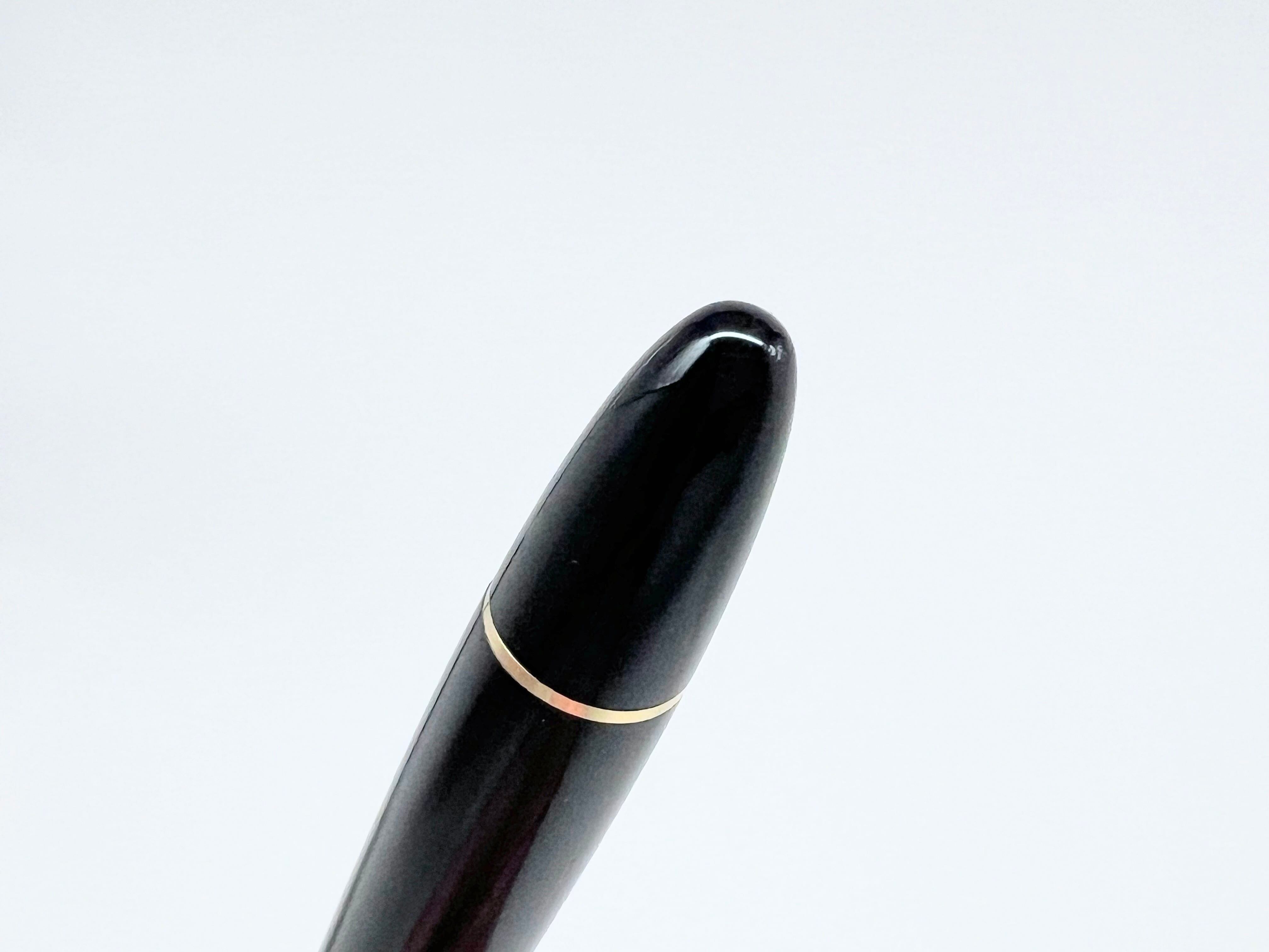 中古品 オーバーホール済み ペン先調整済み 字幅:細字 インク:吸入式 軸の使用感:使用回数少ない 付属品:万年筆診断書 ========== 1990年代製造 ペン先18金(ペン先表記「18K」) ペン芯プラスチック 吸入良好